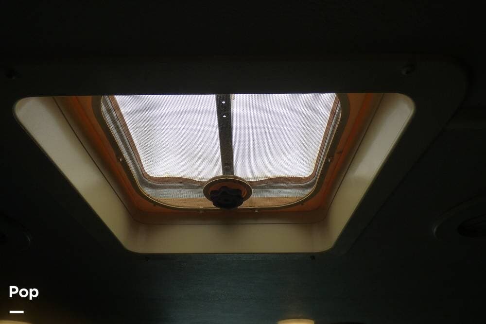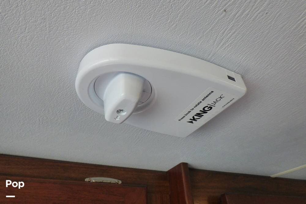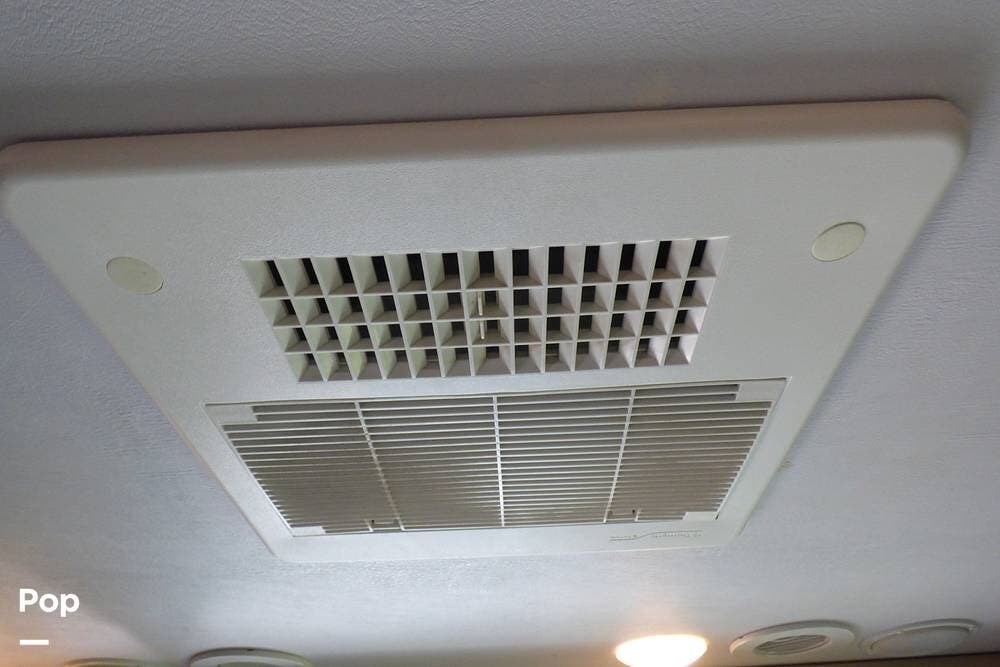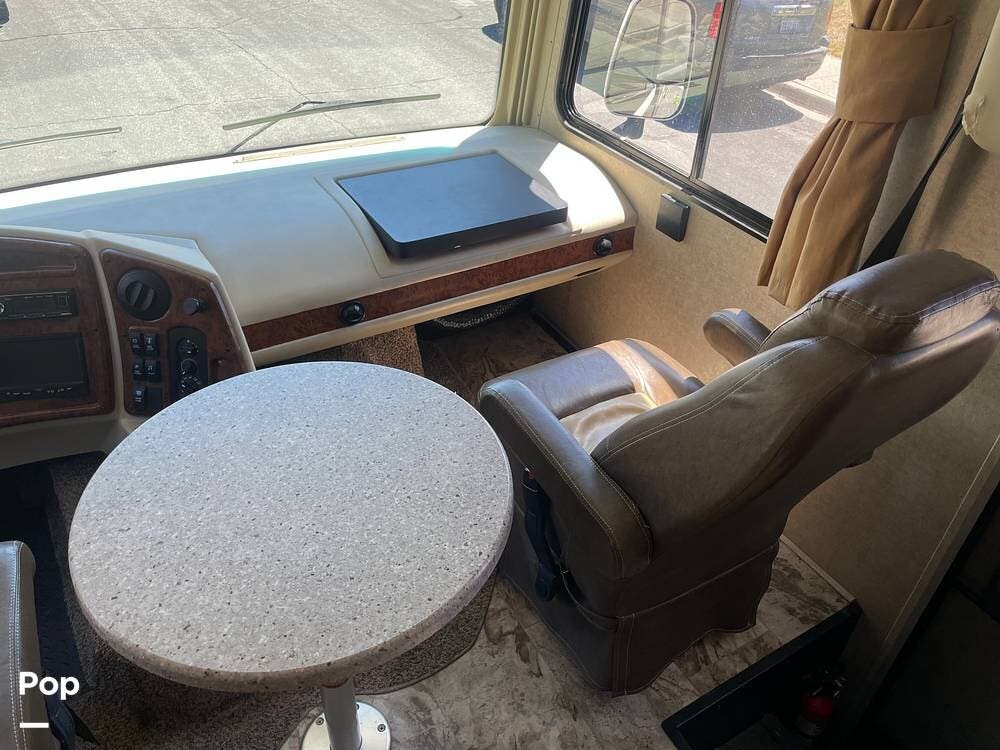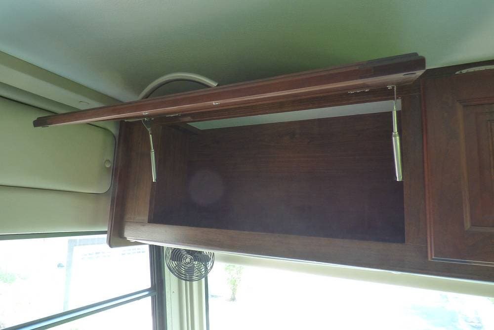It comfortably sleeps up to seven with a queen-size bed, convertible sofa, dinette, and drop-down bunk over the cab.
