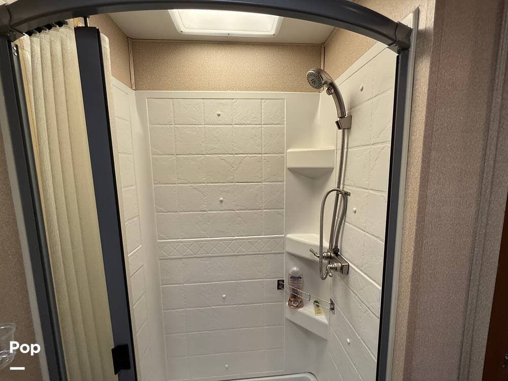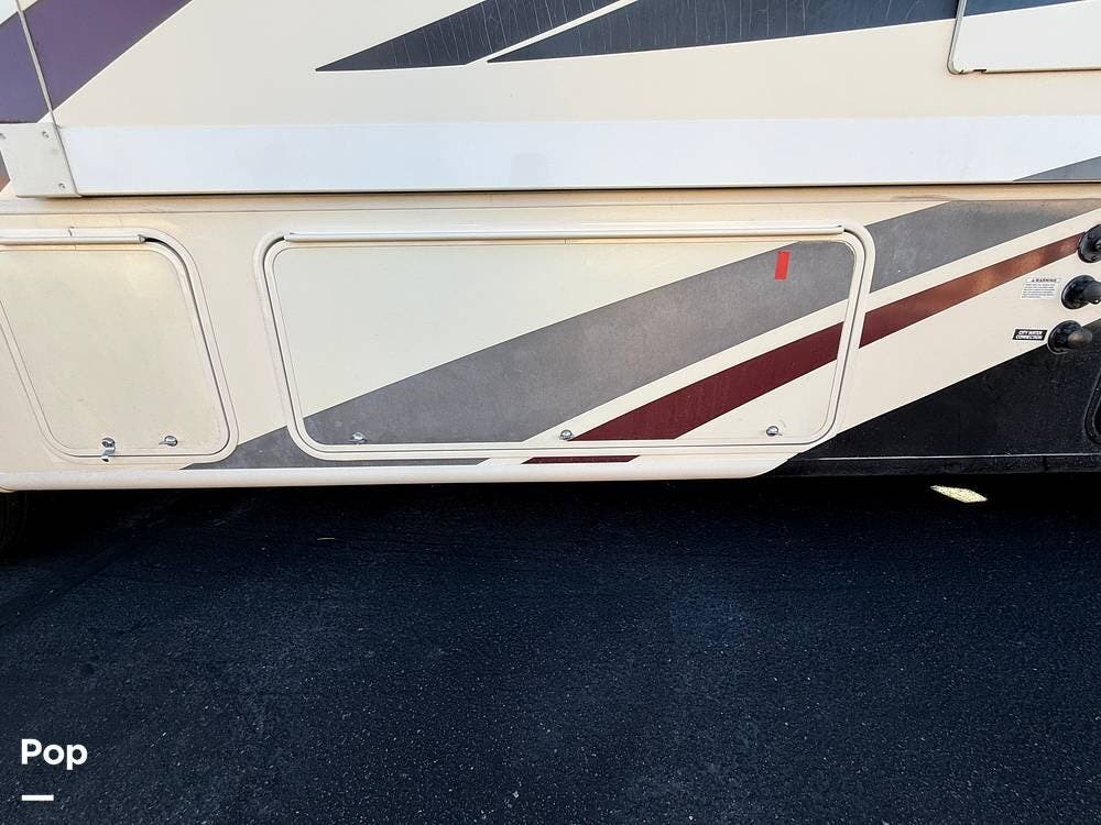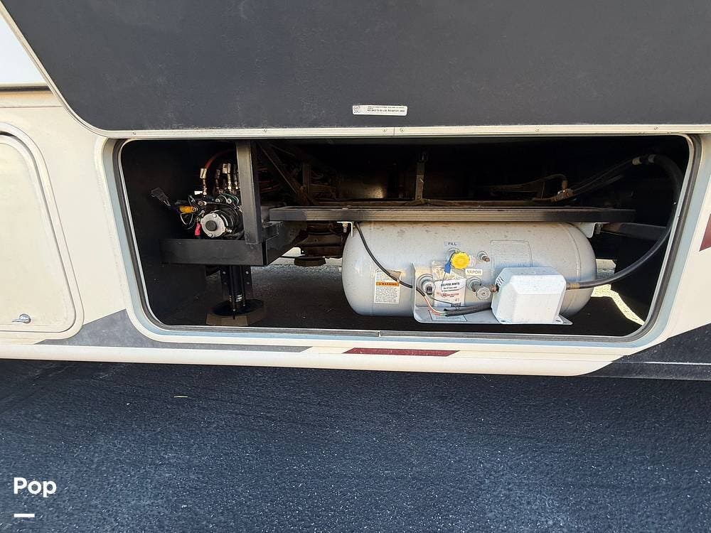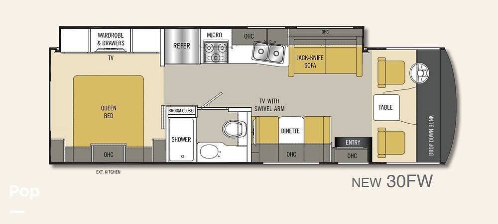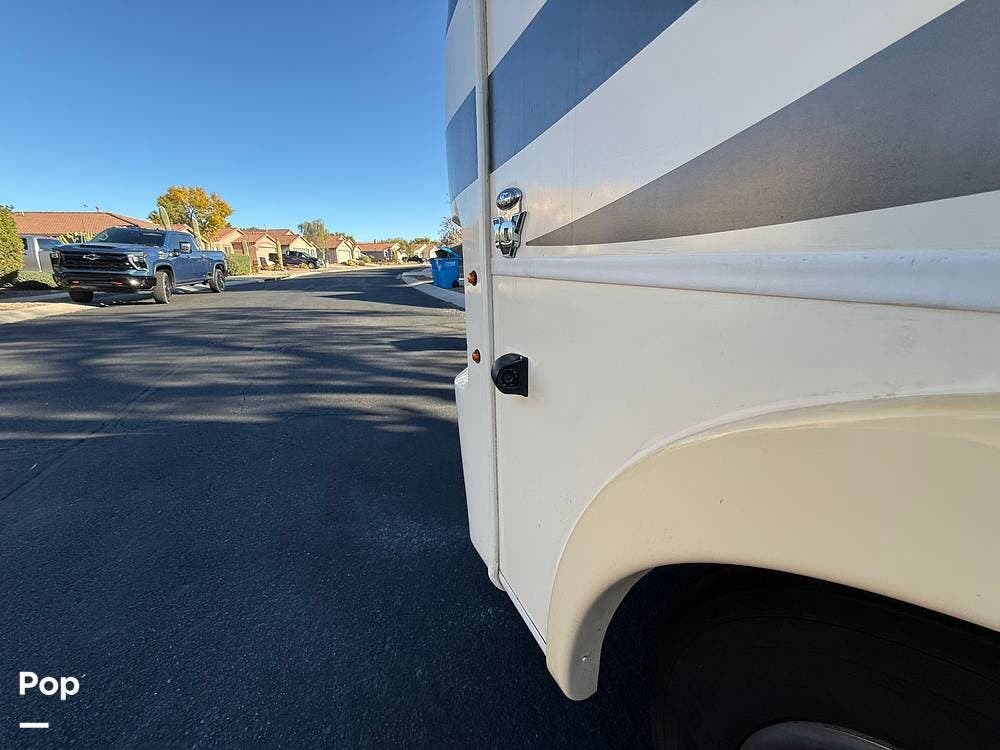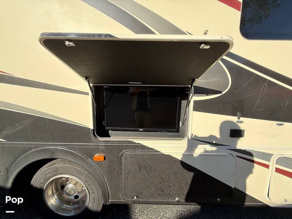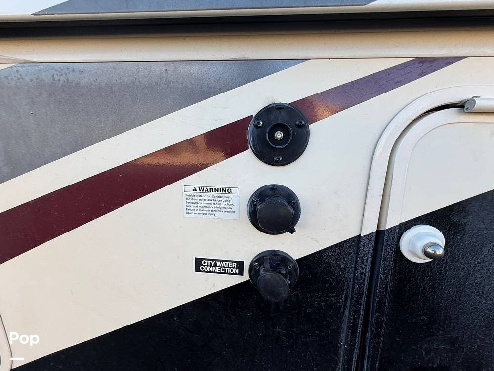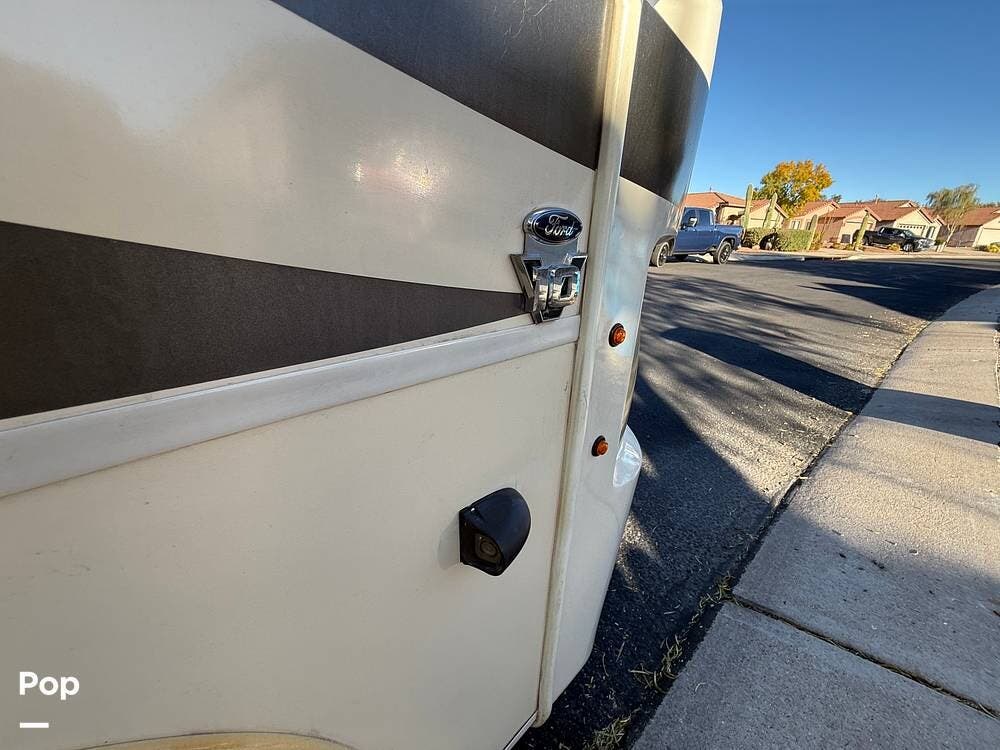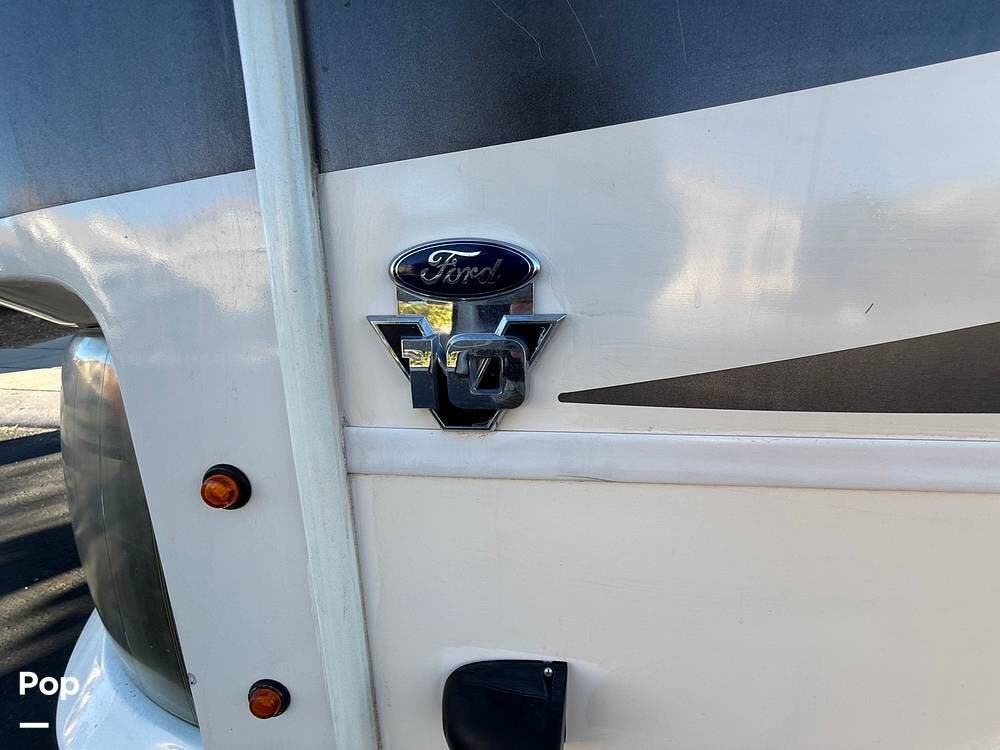 This RV is powered by a Ford Triton V10 engine with 320 HP and has a Gross Vehicle Weight Rating (GVWR) of 18,000 lbs. It holds 50 gallons of fresh water and has 35-gallon tanks for both gray and black water. Enjoy entertainment on three TVs: one exterior and two interior. The RV also includes a keyless entry lock and an 20-gallon propane tank.
