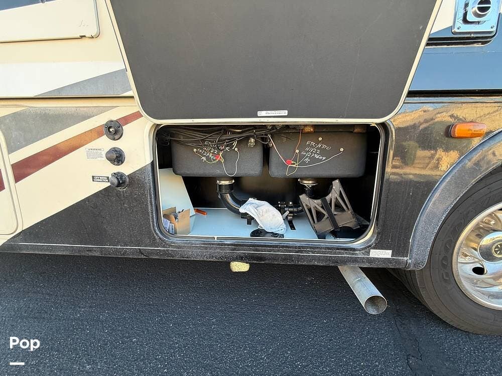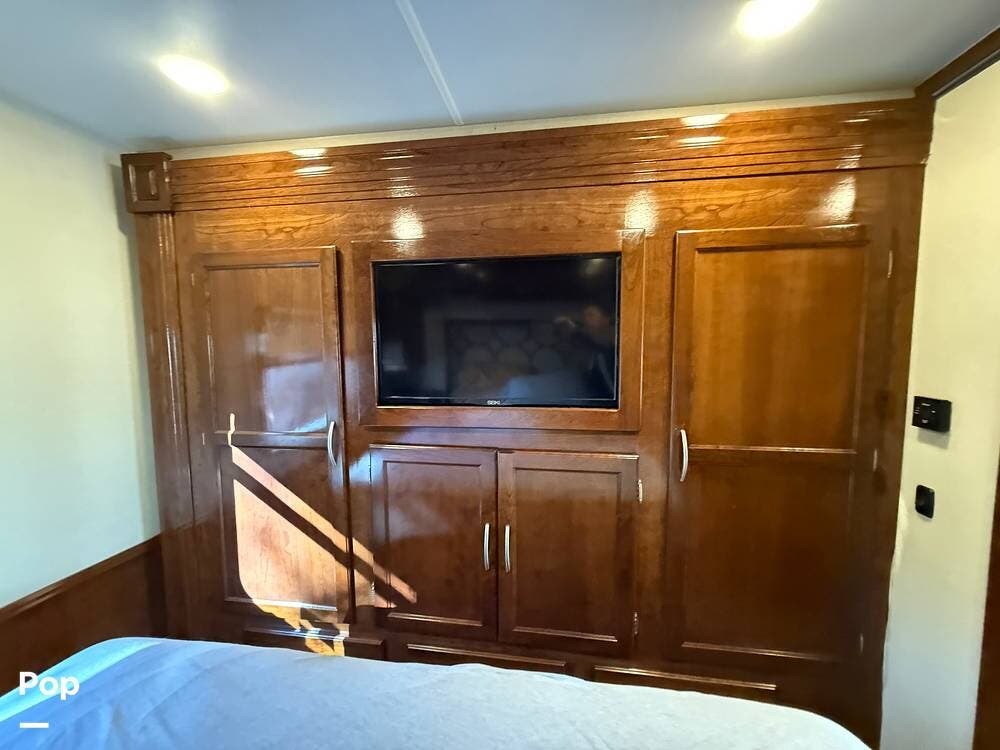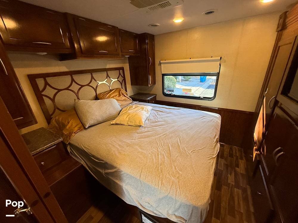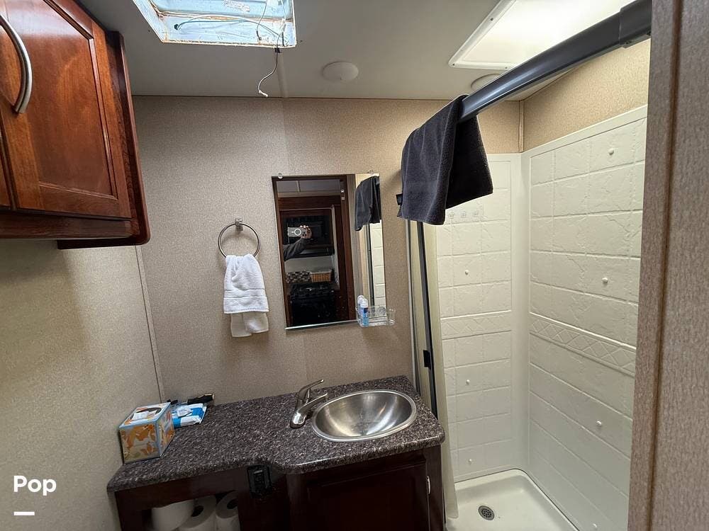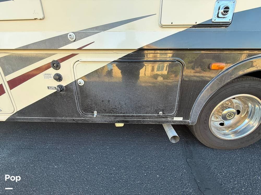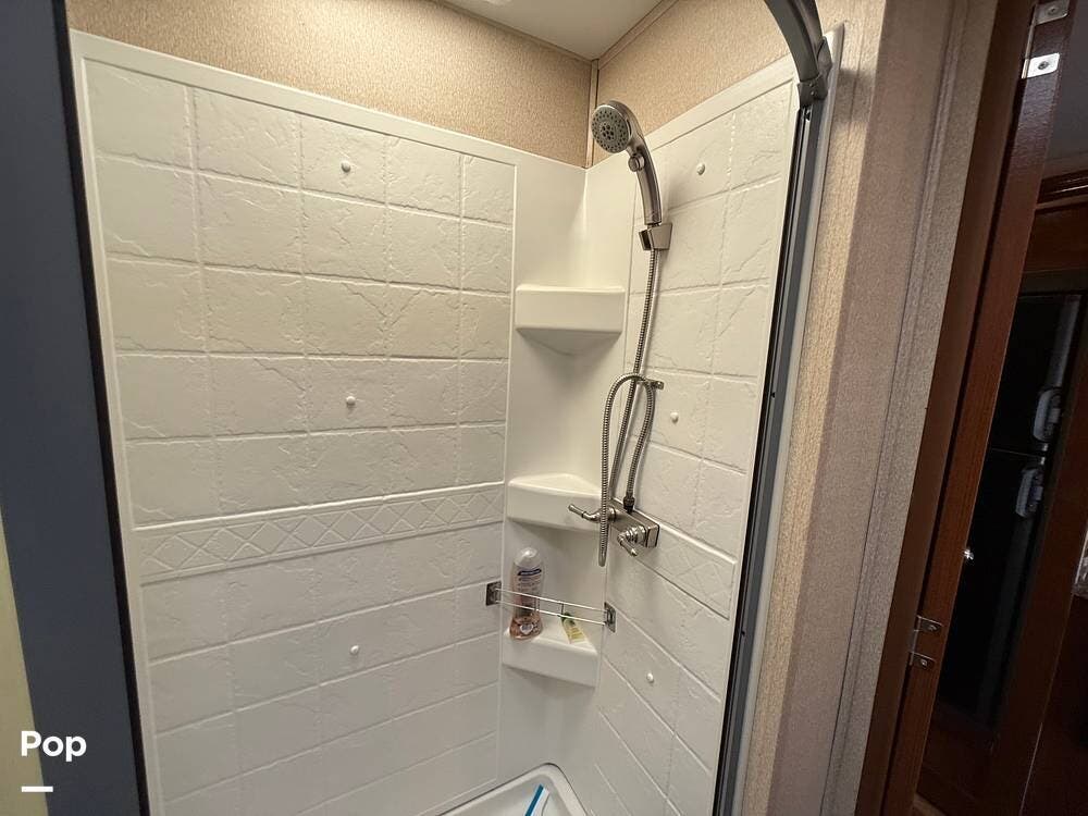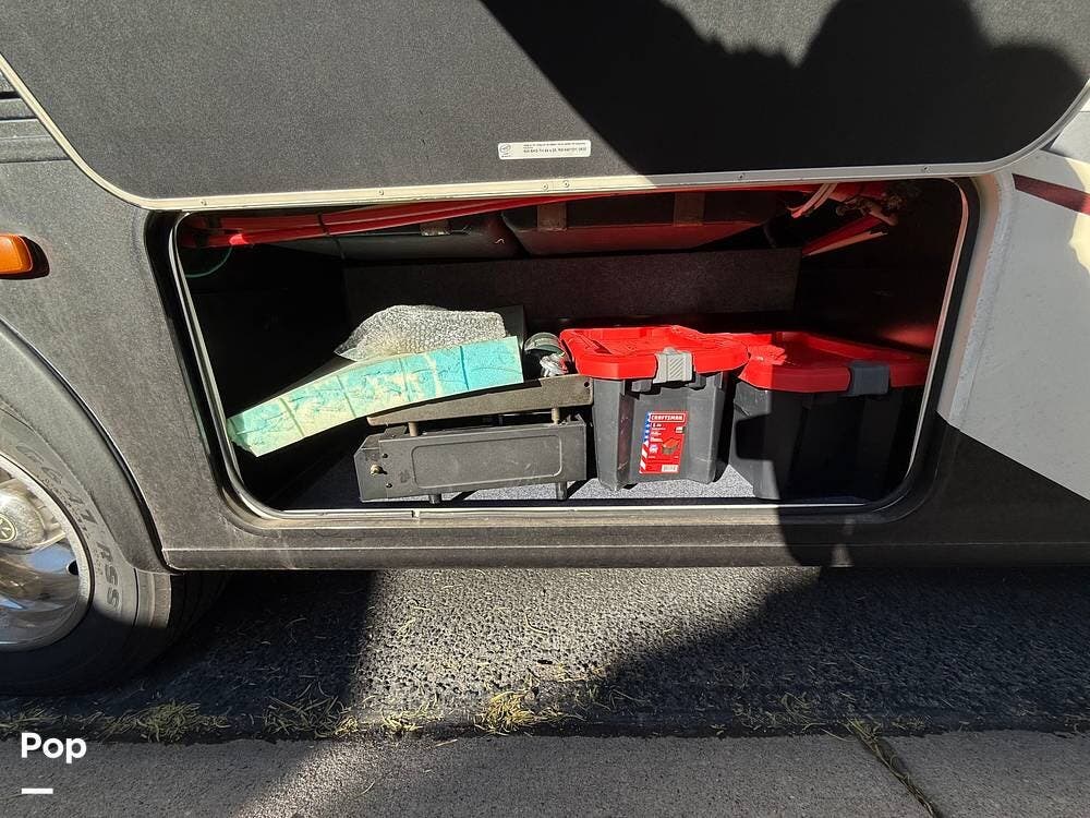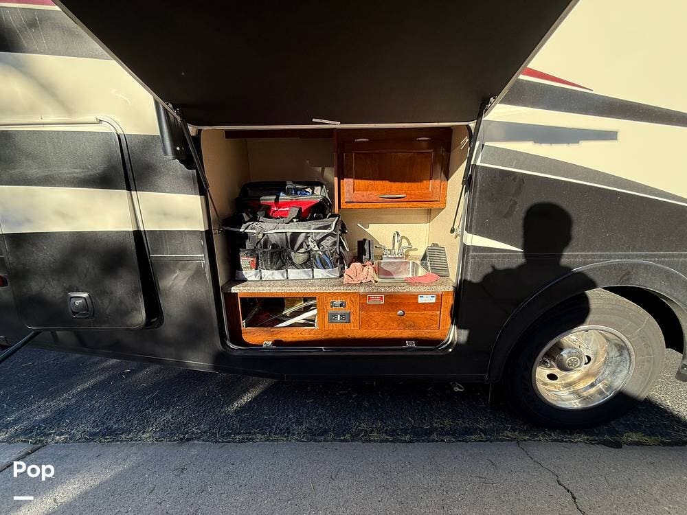 This RV is powered by a Ford Triton V10 engine with 320 HP and has a Gross Vehicle Weight Rating (GVWR) of 18,000 lbs. It holds 50 gallons of fresh water and has 35-gallon tanks for both gray and black water. Enjoy entertainment on three TVs: one exterior and two interior. The RV also includes a keyless entry lock and an 20-gallon propane tank.
