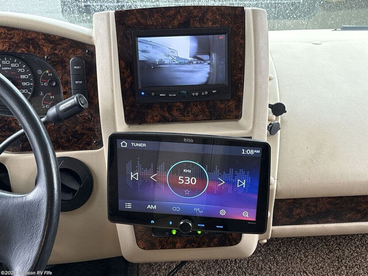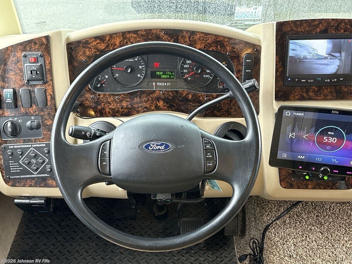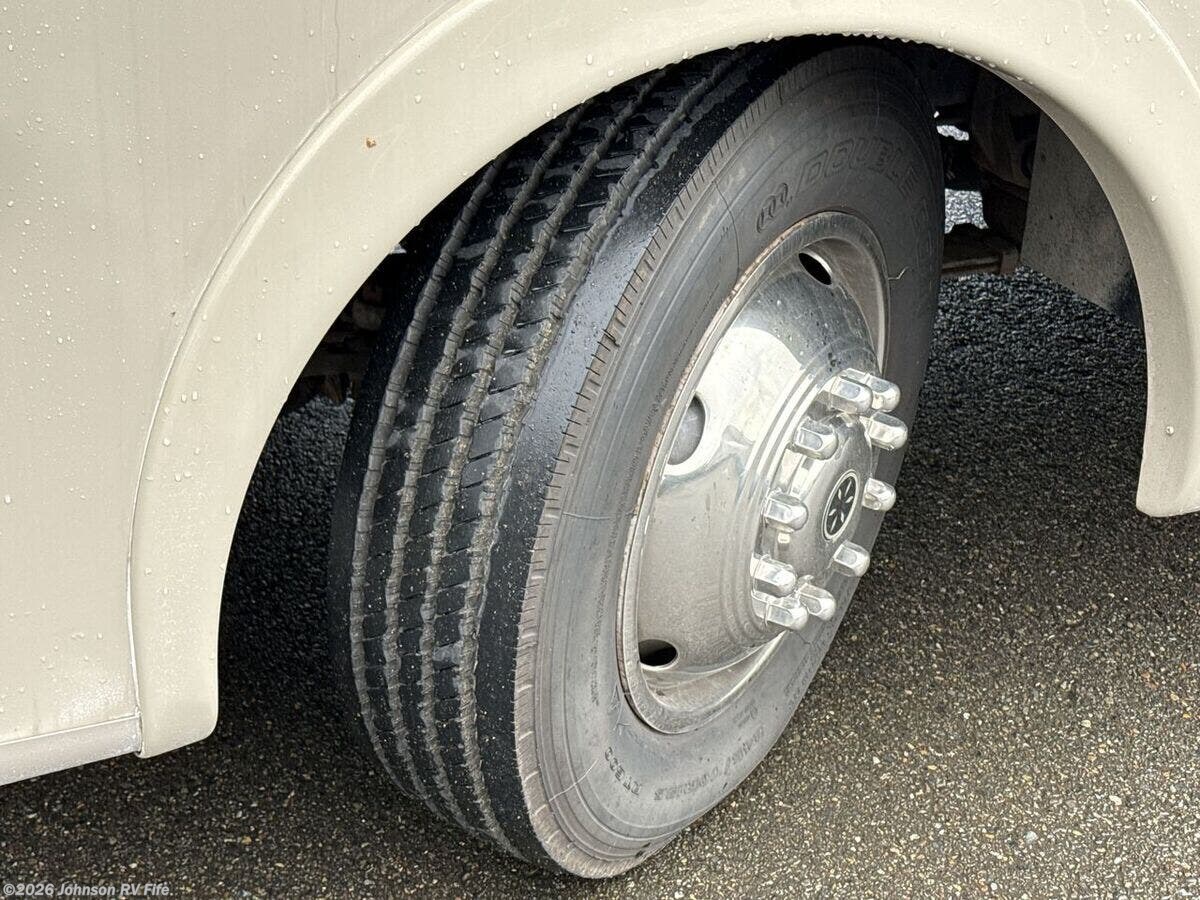 Features Include: Rear Mud Flaps, Cab Privacy Shades, Power Patio Awning, Patio Light, Power Entry Step, Radius Entry Door, Deadbolt Lock, Mini Blinds, Pet Feeding Station, Dinette Booth, Laminate Countertops, Double Bowl Sink, 3-Burner Range, Range Hood Light, Systems Center, Cable TV Hookup, Queen Size Bed 60x74, Residential Curtains, Exhaust Fan Prewire, Bathroom, ABS Shower Surround, Single Coach Battery, 4.0 Onan Generator, 20-Gal LP Tank, 55-Amp Converter, 15k AC Roof Ducted, Fiberglass Exterior, Fiberglass Front Cap, Rear Mounted Ladder, Rear Bumper, Radius Trunk Doors