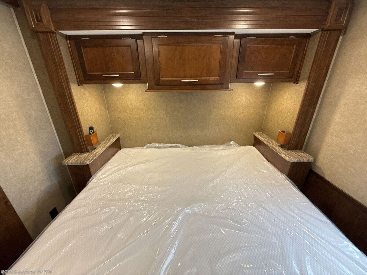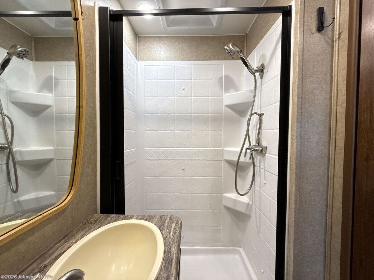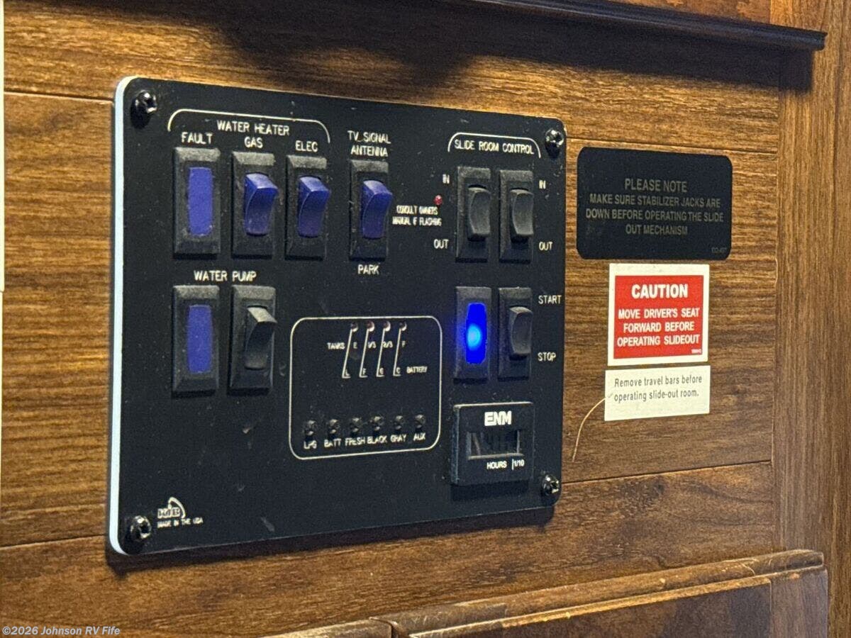 Features Include: Rear Mud Flaps, Cab Privacy Shades, Power Patio Awning, Patio Light, Power Entry Step, Radius Entry Door, Deadbolt Lock, Mini Blinds, Pet Feeding Station, Dinette Booth, Laminate Countertops, Double Bowl Sink, 3-Burner Range, Range Hood Light, Systems Center, Cable TV Hookup, Queen Size Bed 60x74, Residential Curtains, Exhaust Fan Prewire, Bathroom, ABS Shower Surround, Single Coach Battery, 4.0 Onan Generator, 20-Gal LP Tank, 55-Amp Converter, 15k AC Roof Ducted, Fiberglass Exterior, Fiberglass Front Cap, Rear Mounted Ladder, Rear Bumper, Radius Trunk Doors