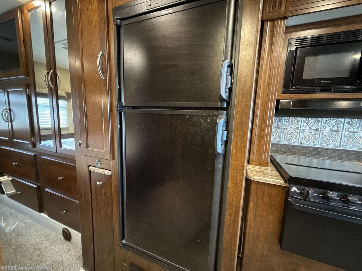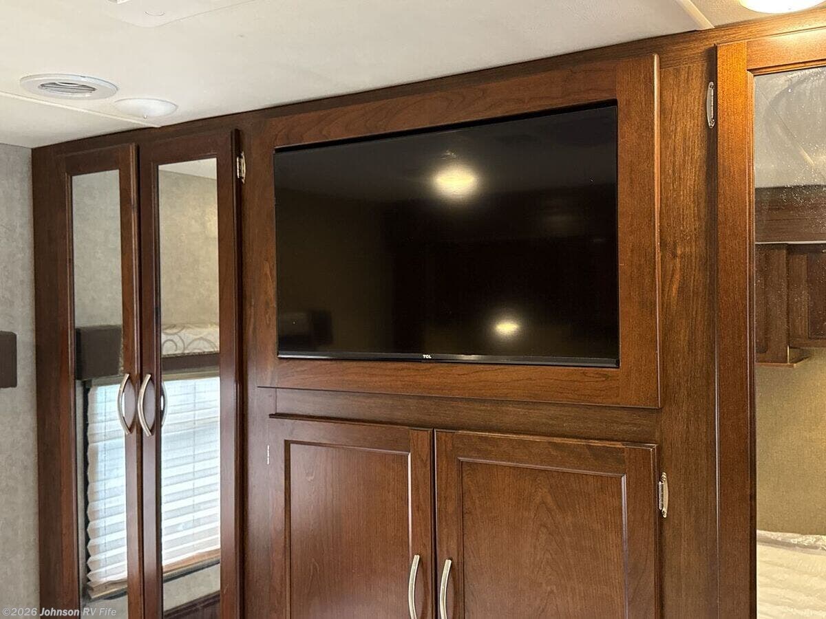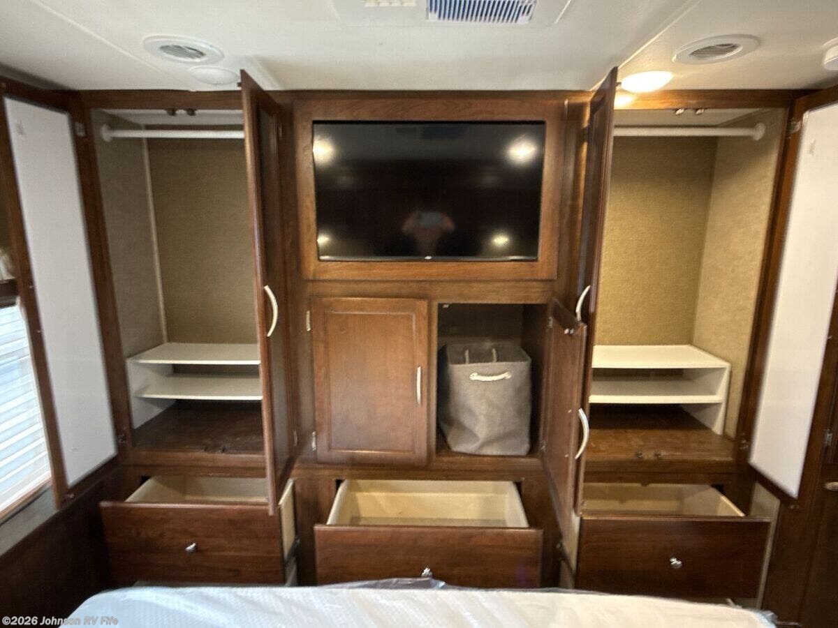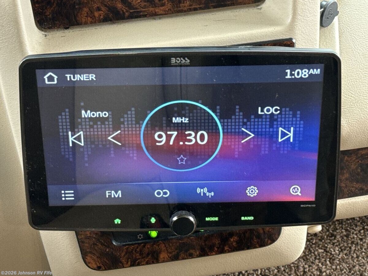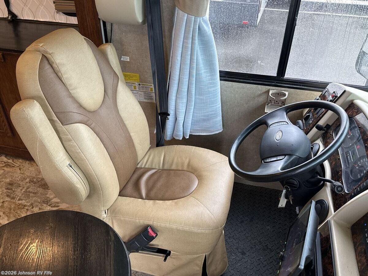 The 2017 Coachmen Pursuit 31SB is a used Class A RV meticulously designed for adventure seekers and travel enthusiasts. With its sturdy Ford F-Series Super Duty chassis and powered by a robust Triton 6.8L V10 gas engine, offering 362 horsepower and 457 lb-ft of torque, this motorhome ensures a smooth and powerful drive. The TorqShift 5-speed automatic transmission enhances driving performance, and the stainless steel wheel liners, along with rear mud flaps, add to the RV's durability. Exterior features include a fiberglass exterior with Azdel composite construction for enhanced durability. The front cap is made of fiberglass, and the crowned laminated TPO roof is designed for longevity. Convenient features like a power patio awning and patio light create a welcoming outdoor space, while the rear-mounted ladder, bumper, and heated holding tank compartment add functionality. It also comes equipped with a 5000-pound hitch and a 7-way plug. Inside, comfort and convenience are prioritized. The cab area has a power drop-down bunk system for additional sleeping space and recline swivel pilot seats for driving ease. Privacy is ensured with cab privacy shades, and entertainment options are available with the AM FM CD dash radio. The living spaces boast a soft-touch jackknife sofa and Congoleum linoleum flooring for easy cleanup and maintenance. Storage options are ample with a pullout pantry, stepwell shoe storage, broom and coat closet, and oversized storage compartments. Mini blinds, a message center cork whiteboard, and a pet-friendly floor line window add thoughtful touches. A fully equipped dining area features a dinette booth, double bowl sink with high-rise sprayer faucet, laminate countertops, and a 3-burner range with a range hood light. The kitchen is completed with a microwave oven and flush mount refrigerator. In sleeping quarters, a comfortable queen-size bed (60x74) is the centerpiece, complemented by residential curtains for privacy and an exhaust fan prewire for ventilation. The bathroom includes an ABS shower surround, upgraded shower curtain, and a porcelain foot flush toilet, further equipped with a power vent for moisture control. Mechanicals include a robust 4.0 Onan generator, a single coach battery, a 20-gallon LP tank, and a 55-amp converter. The 15k AC roof ducted system and 30k electronic ignition furnace ensure comfort in various climates. A 6-gallon DSI hot water tank provides heated water efficiently. Altogether, this RV offers a perfect blend of luxury and practicality, making it an excellent choice for memorable road adventures and camping experiences. ???