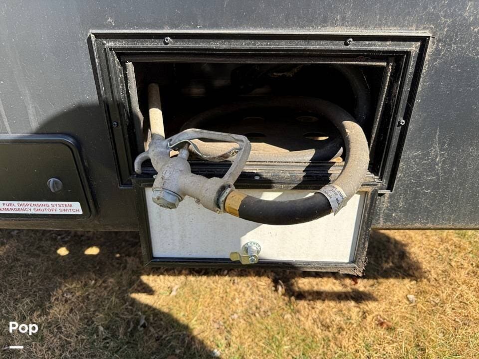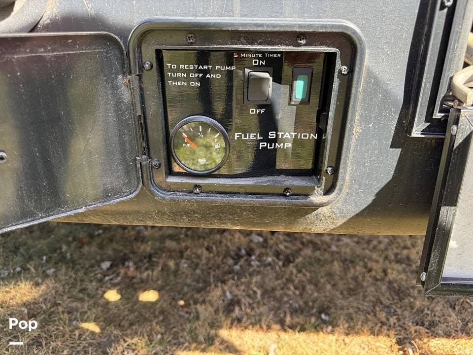 The 12-foot garage provides ample space for your toys and features Happi Jack queen-sized convertible bunk beds that easily transform into couches for additional seating. With a fueling station on board, you can keep your ATVs, dirt bikes, or other gear ready for action.