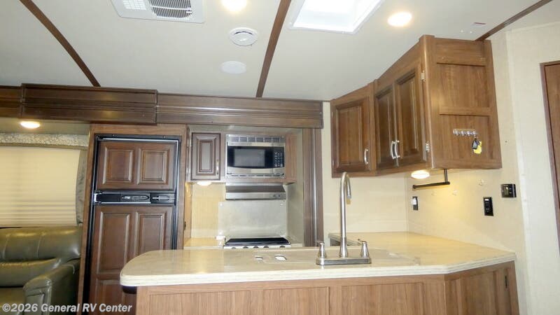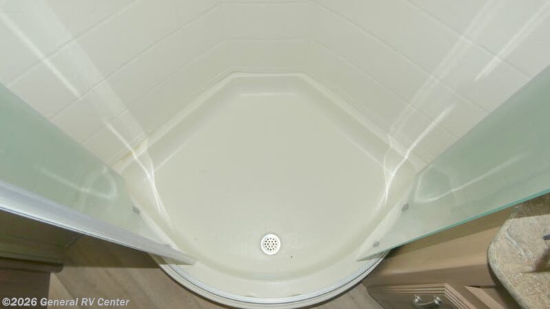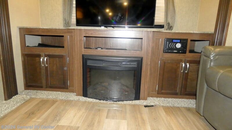 This Dutchmen Denali travel trailer model 287RE is great for traveling and entertaining guests. This unit features triple slides, a king size bed, and a rear entertainment center with dual opposing slides in the main living area that creates a perfect space for entertaining guests. Step inside and see the bathroom straight ahead. There is a neo-angled shower with skylight, a toilet, sink, and small overhead storage. It also features dual entry doors to the bath so the front master suite has easy access as well. The front bedroom features a king size bed slide out with an overhead shelf for storage. There is a dresser with cabinetry above opposite the bed, and a full front wall wardrobe with pass through storage below. Back in the main living area there is a booth dinette slide with two chairs, and plenty of storage with even more cabinetry above the recliners. On the opposite side you have a tri-fold memory foam sofa bed, a refrigerator, pantry, and a three burner range with an overhead microwave oven. There is also an L-shaped counter with plenty of prep space and double kitchen sinks including storage above. Along the rear wall you will find a full wall entertainment center with optional fireplace below. There are storage cabinets below the TV and across the full width of the unit above as well. This area makes a great conversation space with seating directly across from one another, plus so much more!