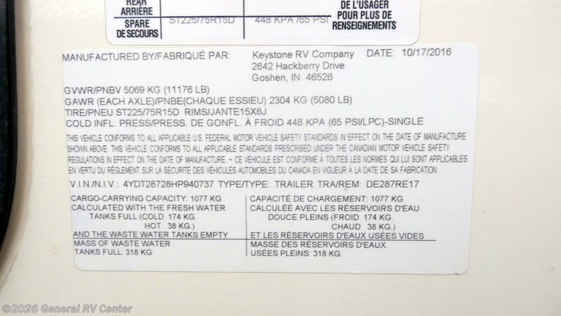 Request More Info on this 2017 Dutchmen Denali 287RE Offered for sale by General RV Center