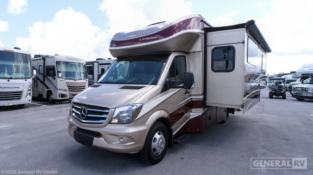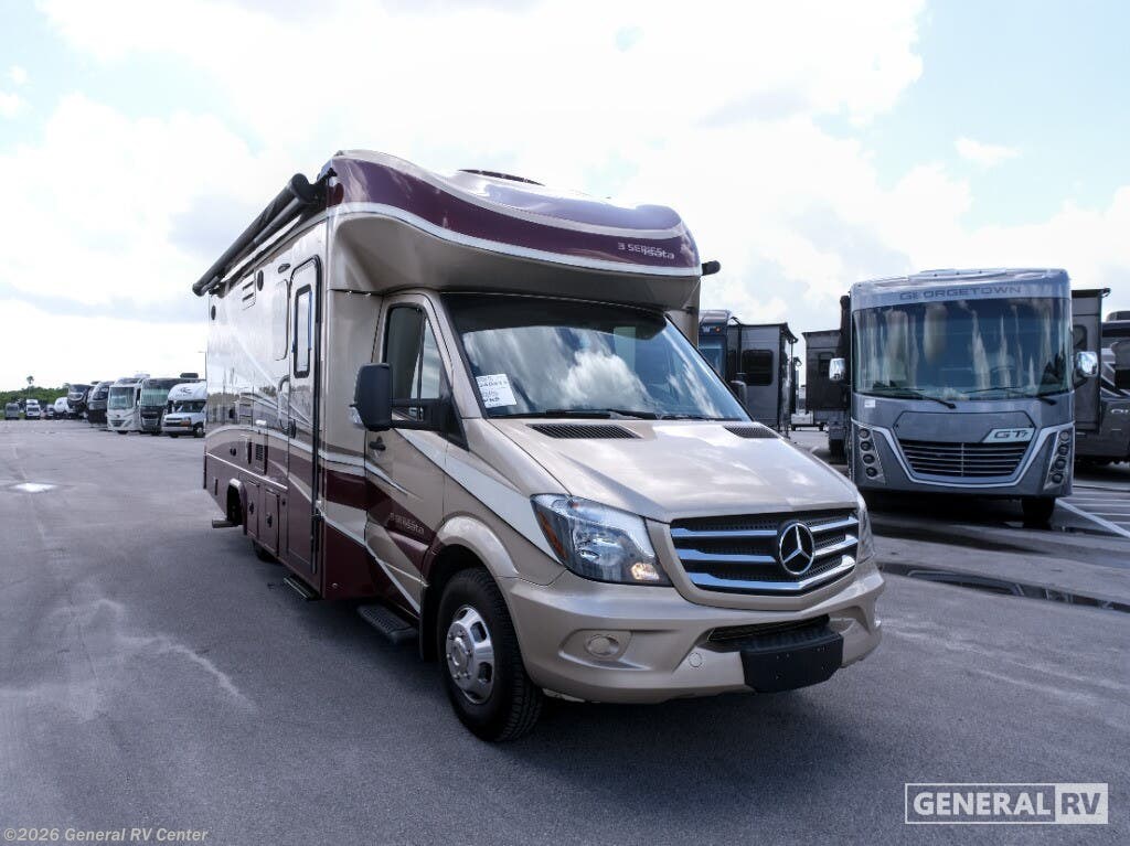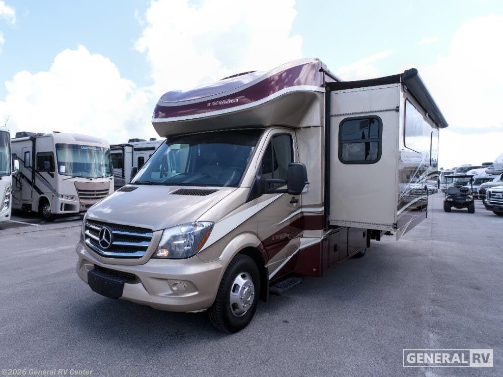 Discover the 2017 Dynamax Isata 24FW, where luxury meets nimble adventure. Built on the reliable Mercedes Benz Sprinter chassis and powered by a robust 3.0L V6 Turbo engine, this RV offers both power and efficiency with its diesel fuel system. At 24 feet in length, it’s compact enough for easy maneuverability while providing all the comforts of home. Inside, the single slide-out expands to reveal a spacious living area complete with a booth dinette, perfect for cozy meals or game nights. The interior is thoughtfully designed to maximize comfort and functionality. A queen bed awaits you at the rear, offering a restful retreat after a day of exploration. The kitchen is equipped with a three-burner cooktop and convection cooking, making meal preparation a breeze. Entertainment is at your fingertips with dual 32-inch LED TVs in both the living and bedroom areas. With a 16-foot awning, you can enjoy outdoor relaxation in style, rain or shine. Whether you're hitting the open road for a weekend getaway or an extended journey, the Isata 24FW provides everything you need. From its ample storage solutions to its efficient water and heating systems, this RV is designed to ensure your travels are as comfortable as they are memorable. For more details or to experience this RV in person, visit your nearest General RV dealership.