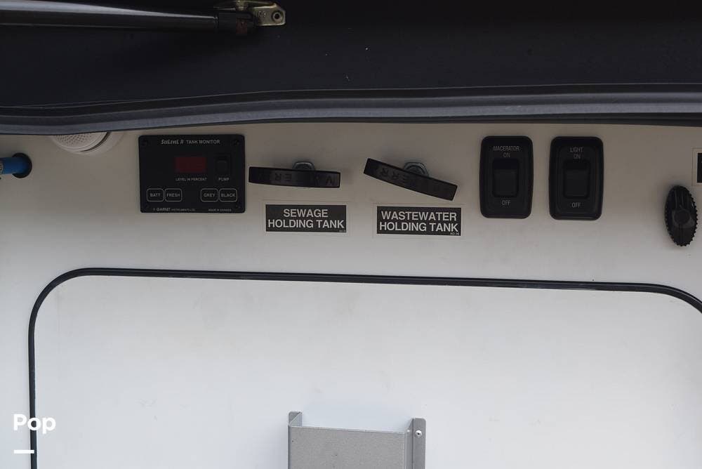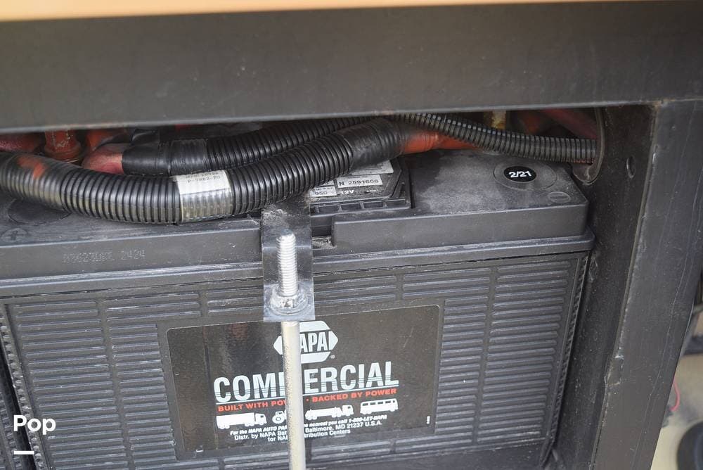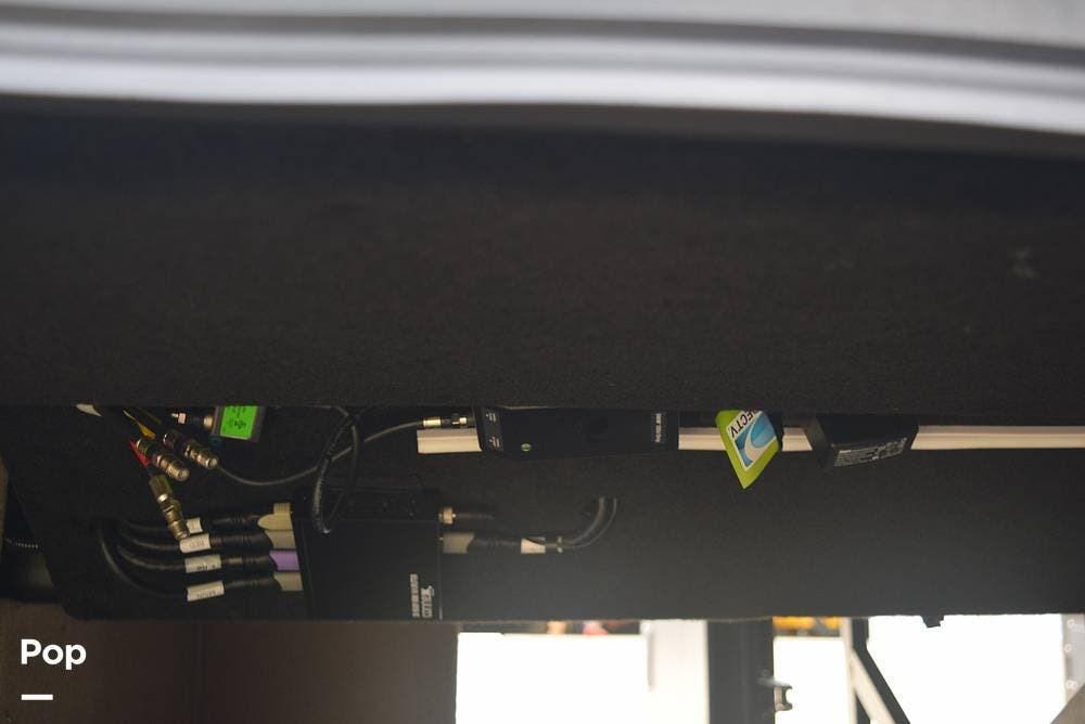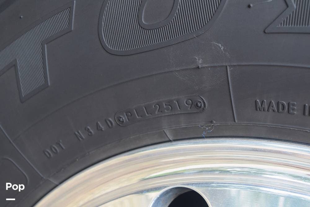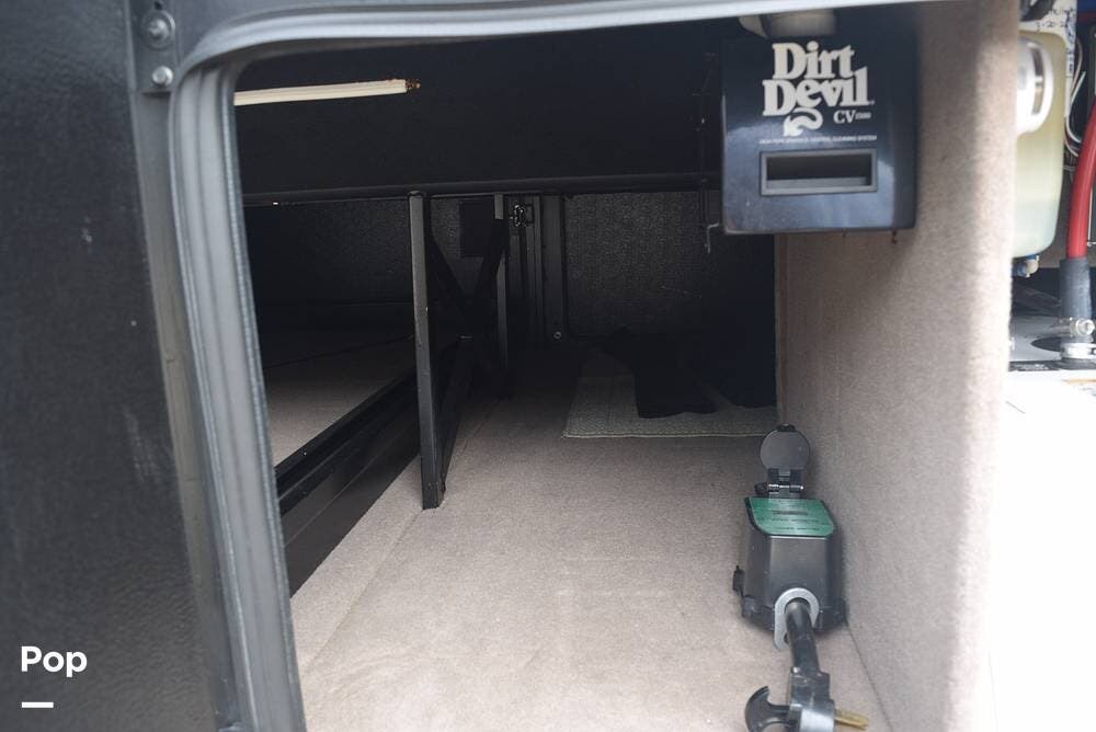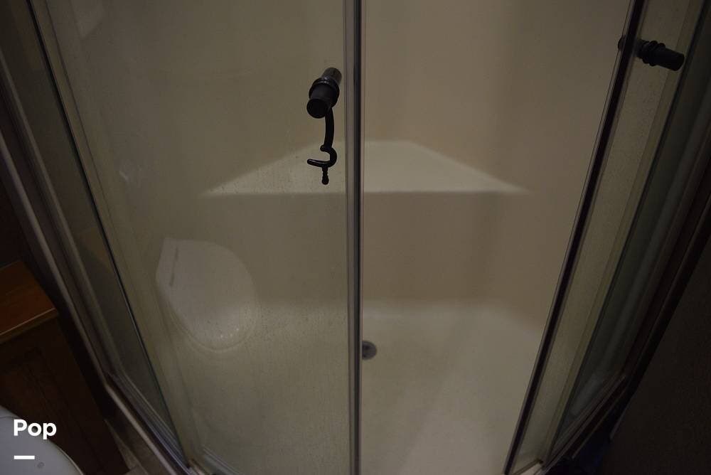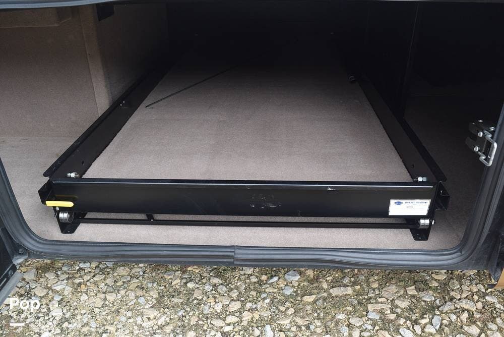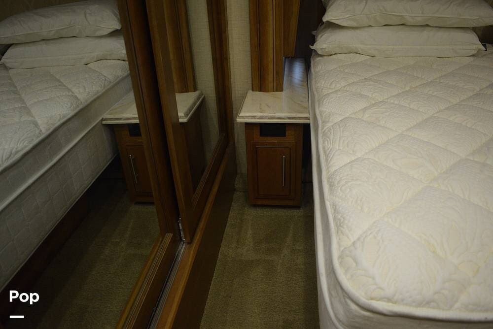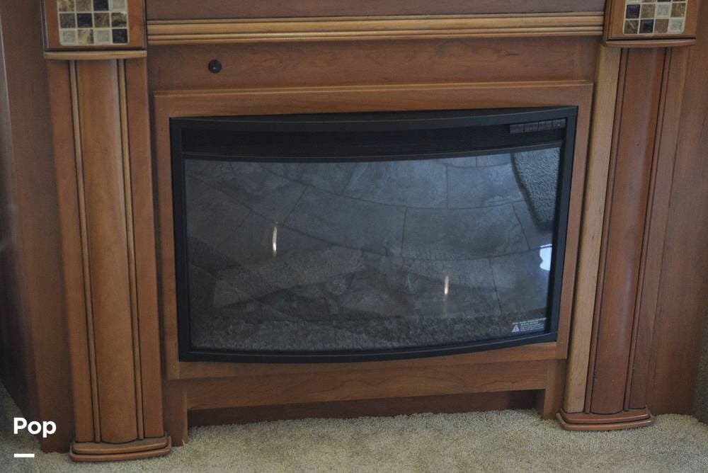 Step inside to find a spacious, beautifully appointed interior featuring premium hardwood cabinetry, solid-surface countertops, heated tile floors, and luxurious leather furnishings.