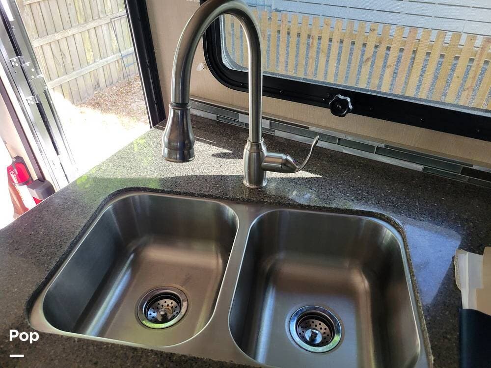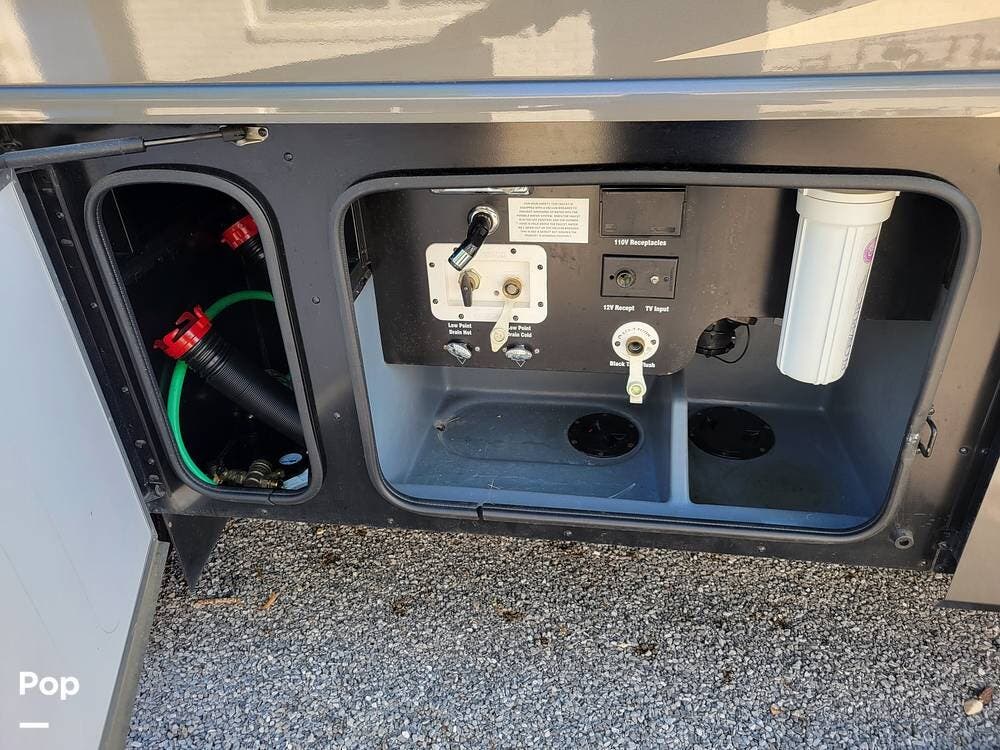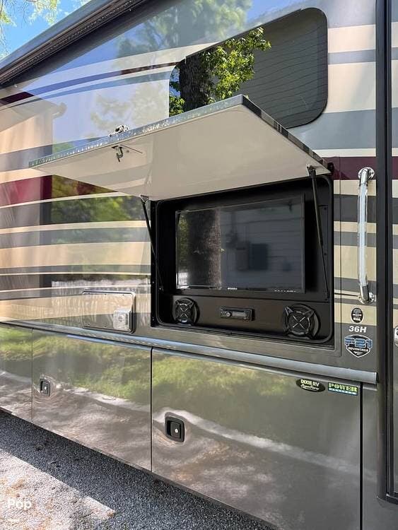 This RV also features a bath and a half. The 1/2 bath is located just past the living area, while the roomy and luxurious full bath is found through the bedroom suite at the rear of the coach. Both baths include all the expected amenities.