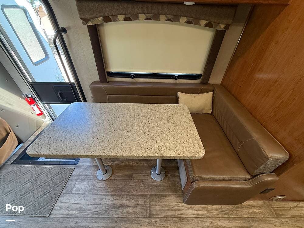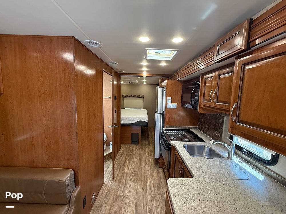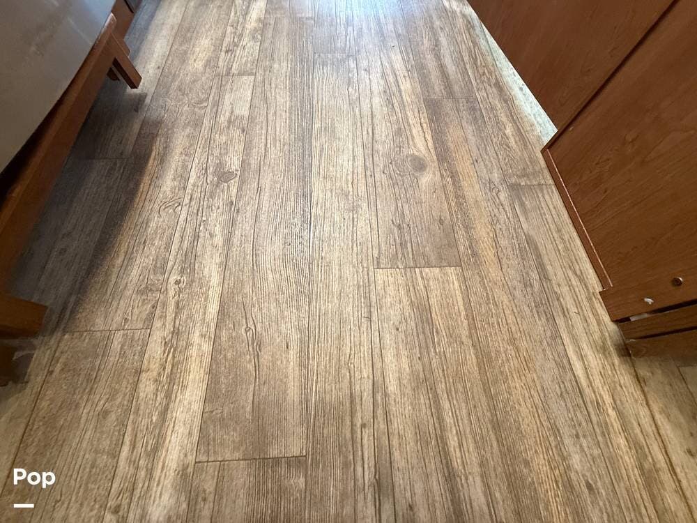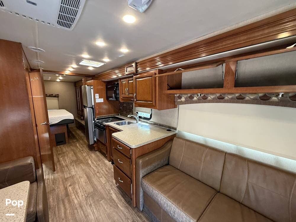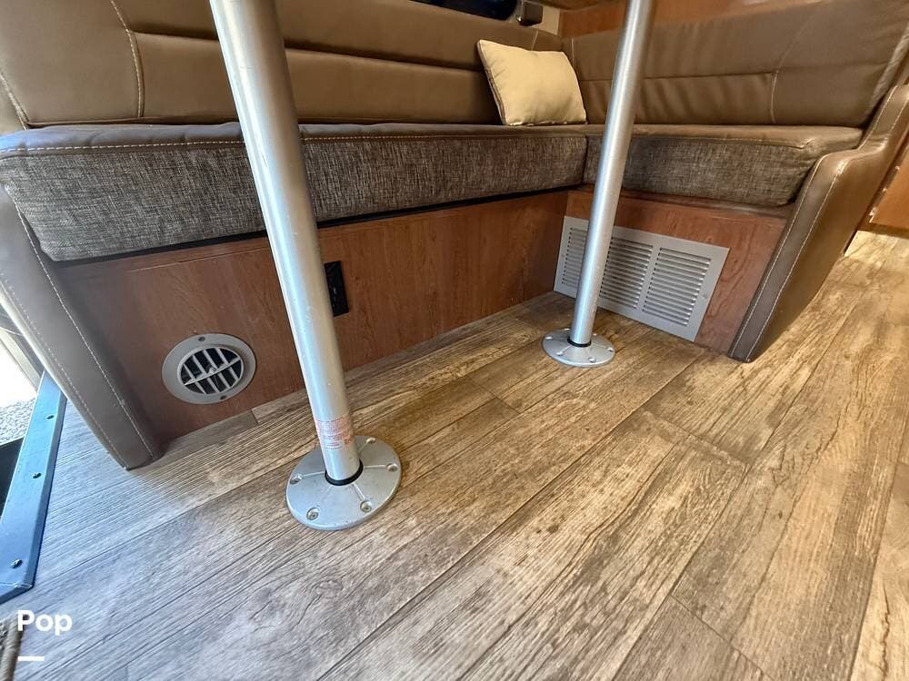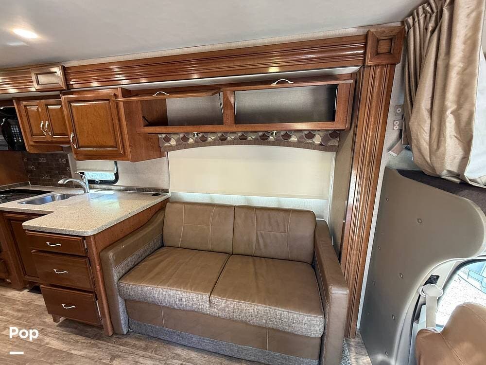 This RV includes a full-length slide-out that significantly expands the living area, creating an open and comfortable space throughout the coach.
