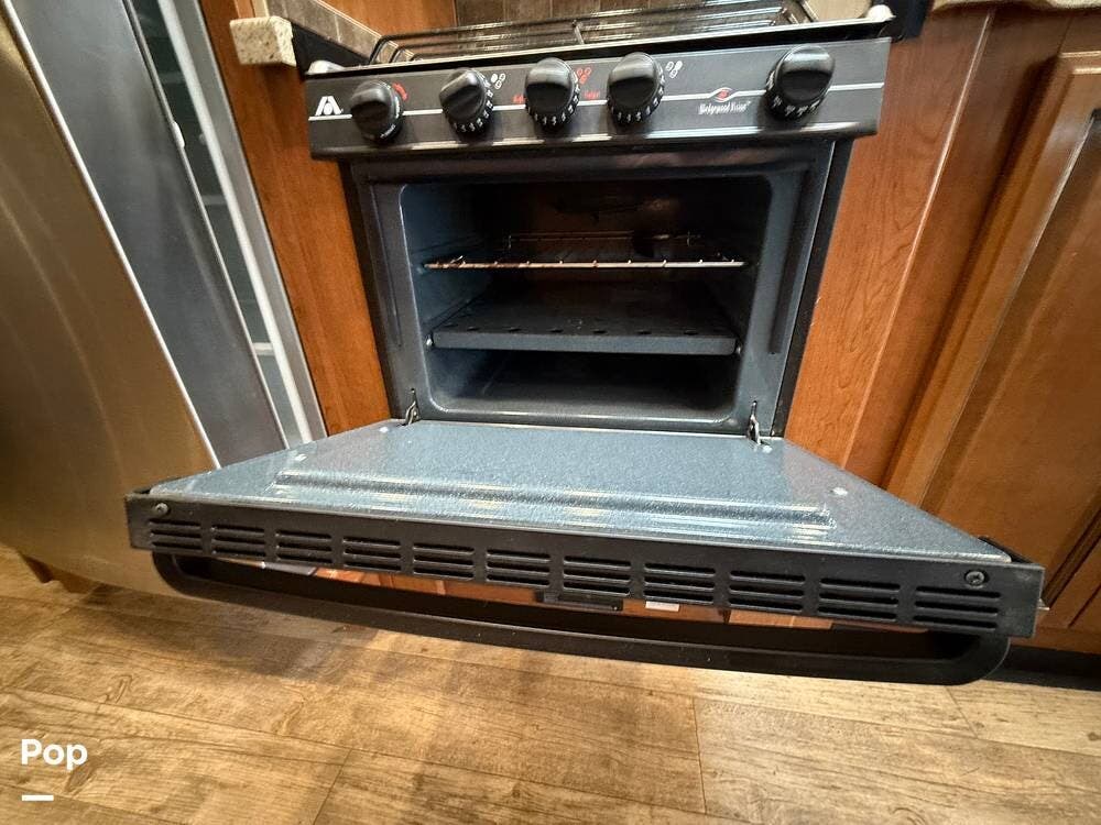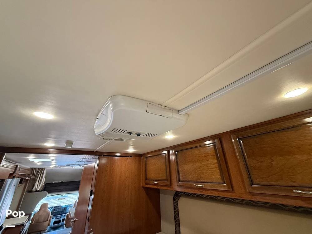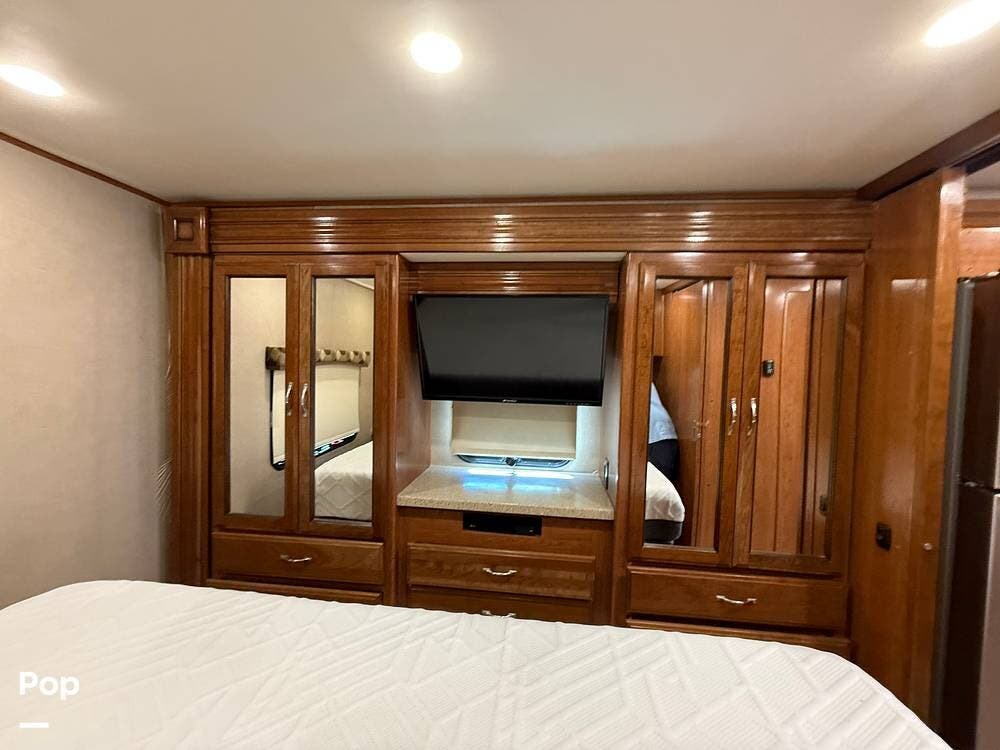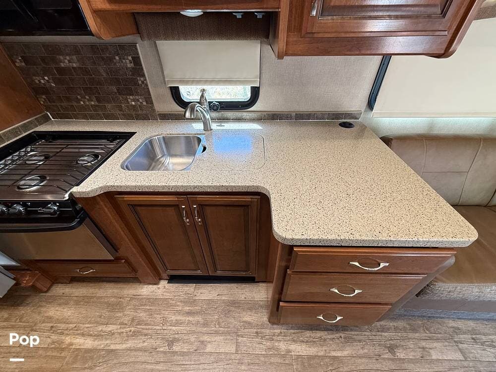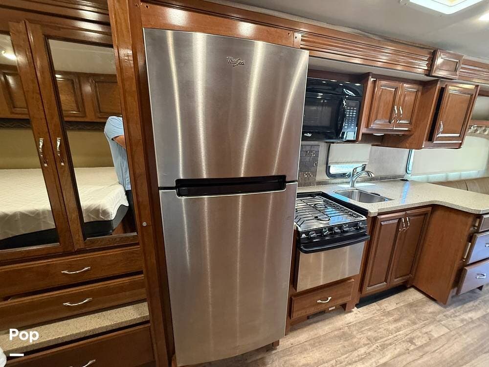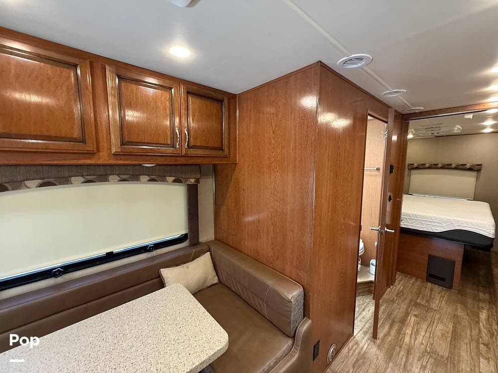 This RV includes a full-length slide-out that significantly expands the living area, creating an open and comfortable space throughout the coach.