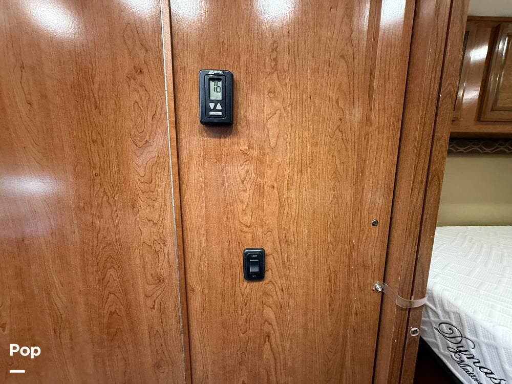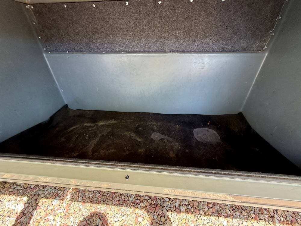 The bedroom features a full-size queen bed along with generous cedar-lined closet space. A second air conditioner has been professionally installed in the bedroom, providing excellent cooling while maintaining the unit's 30-AMP capability.