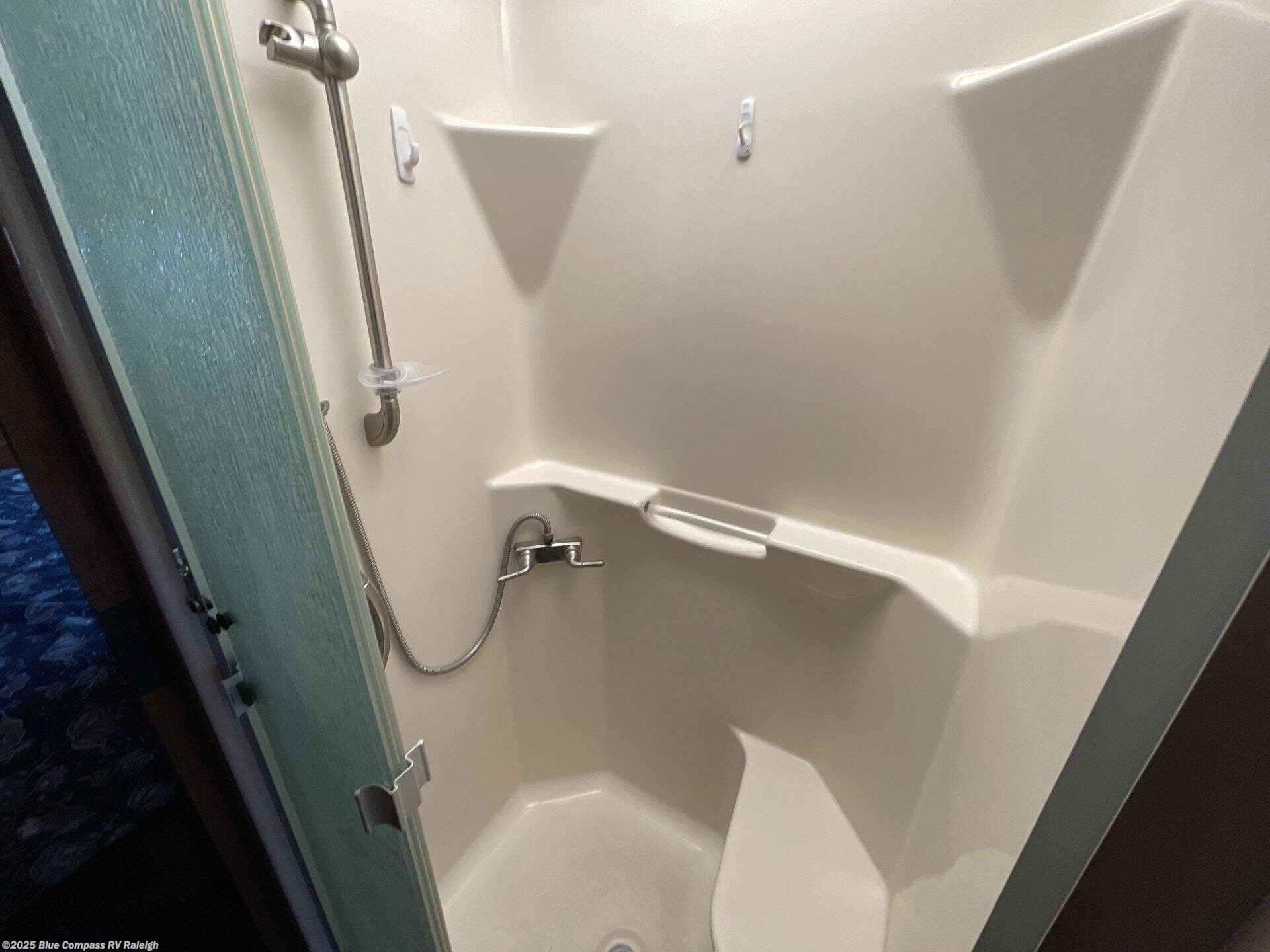 Head toward the rear of the coach and find a split bath mid-coach. There is a private toilet area on the left (curb) side, and shower in the right (road) side.