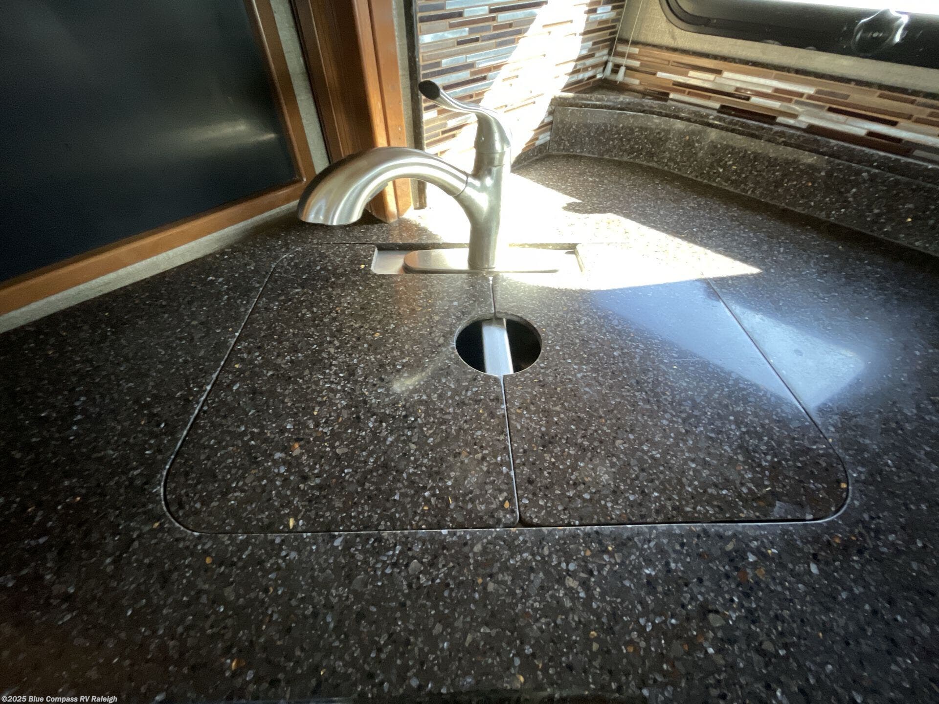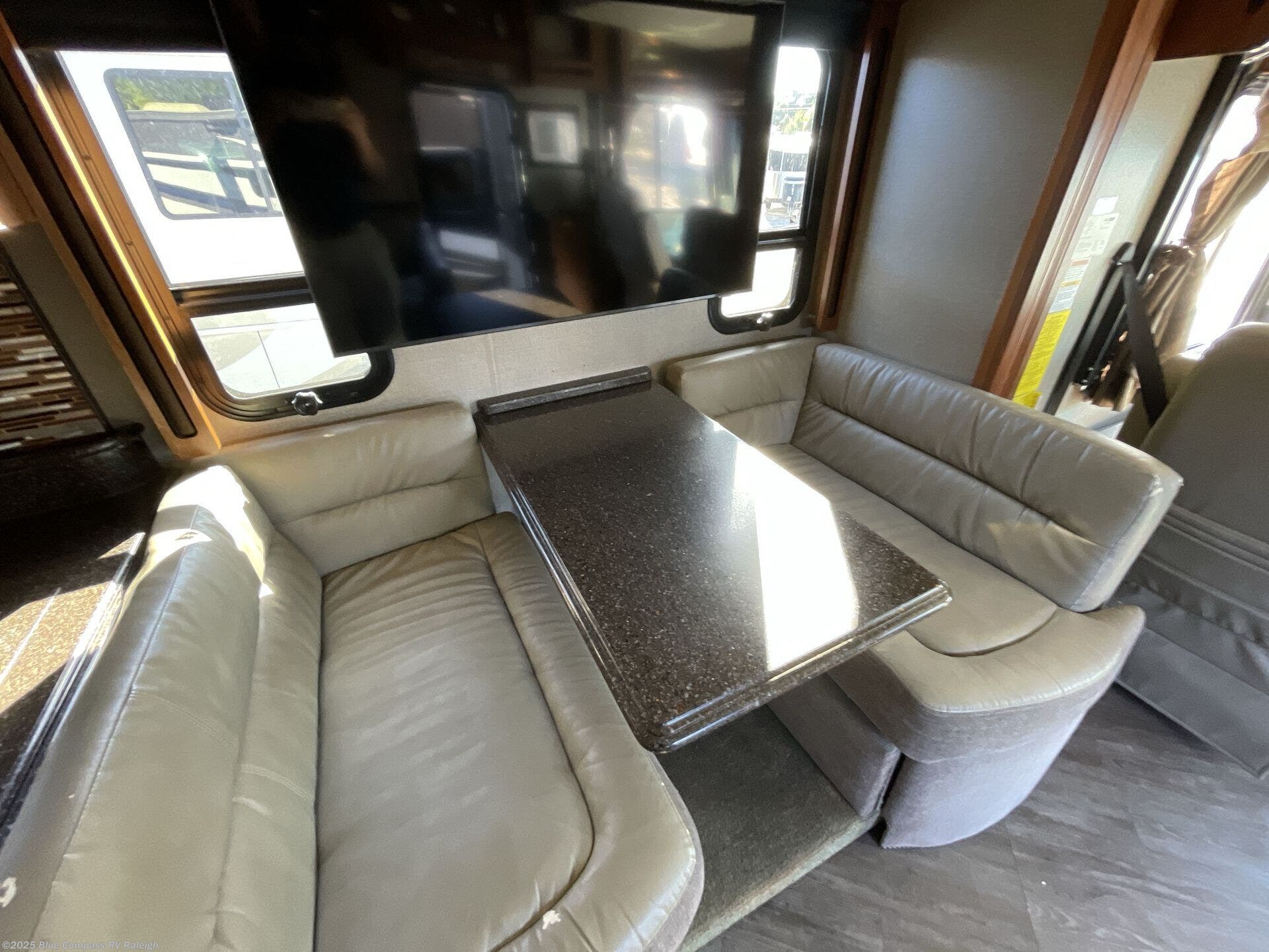 Step inside model 33D right behind the front passenger seat and take a look back at a spacious combined kitchen and living area. There is a large slide out dinette and kitchen space along the road side. The dinette is 44" x 72" and provides four sets of seat belts to keep your rear seat travelers safe. Once stopped you can enjoy the 43" LED TV overhead.