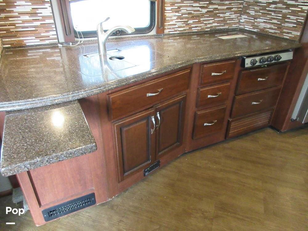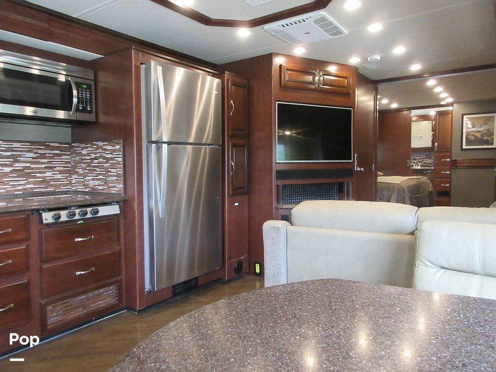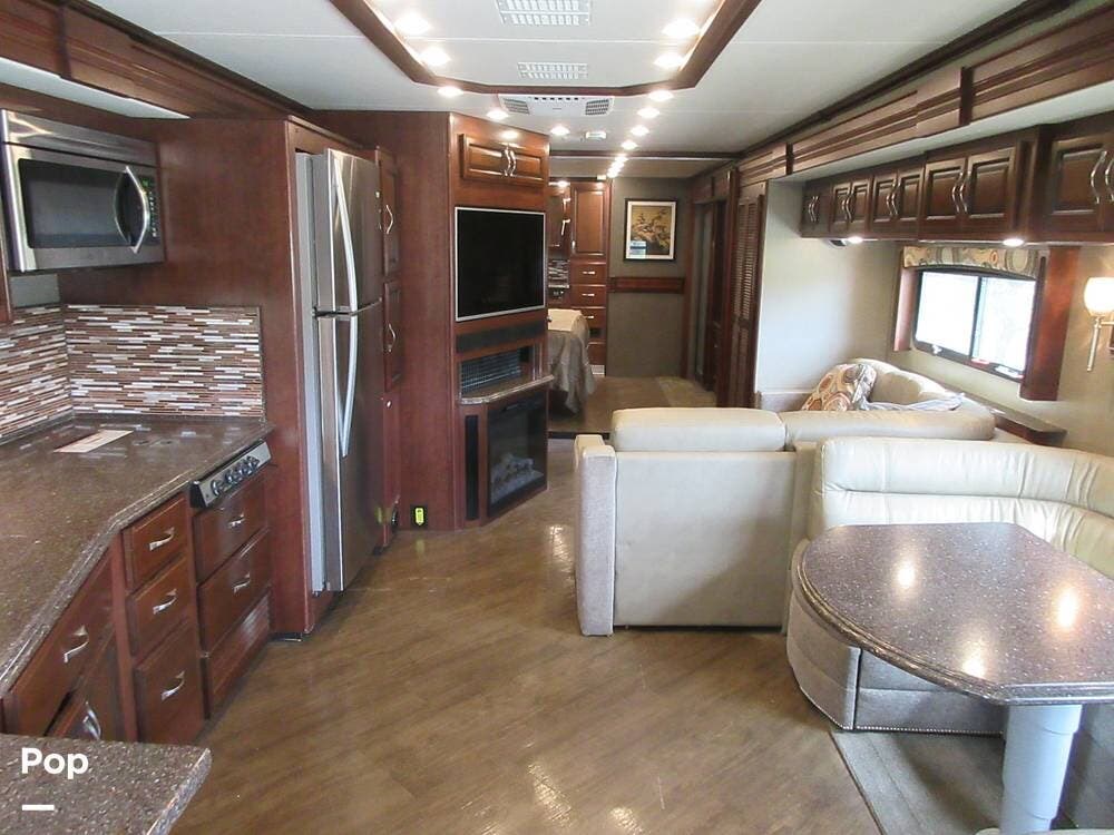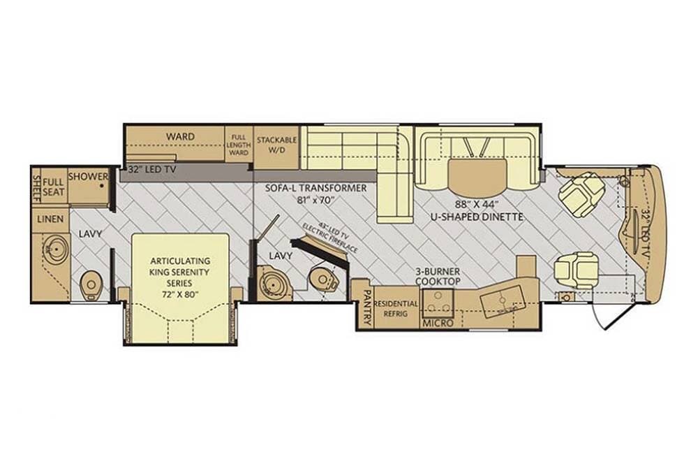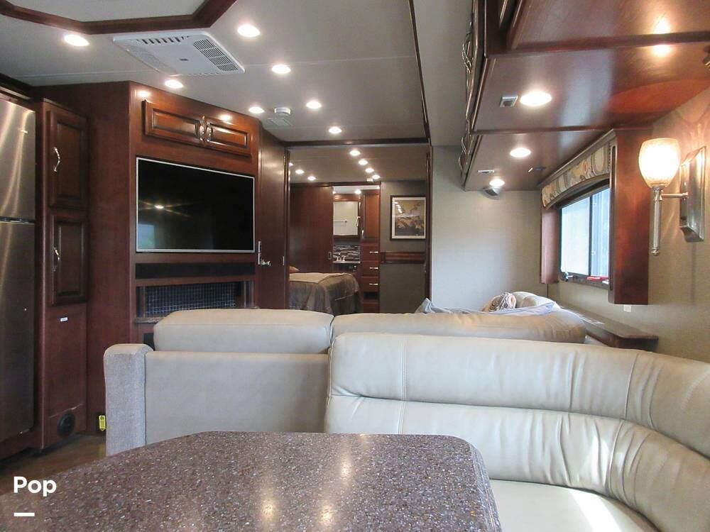 Powered by a Cummins ISB 6.7L 340HP engine with an Allison 2,500 6-speed transmission, this RV has plenty of power to get you through highway traffic or mountain inclines. Equipped with a 5,000 lb. towing hitch, you can bring your car, boat, or trailer along.
