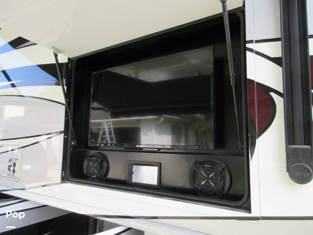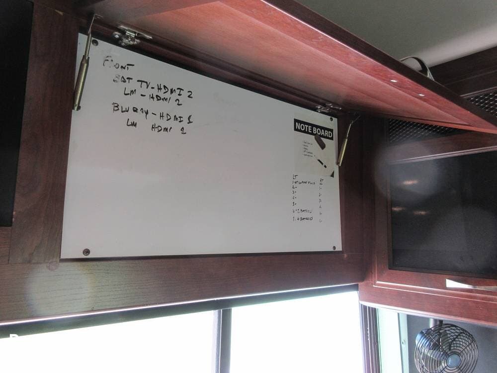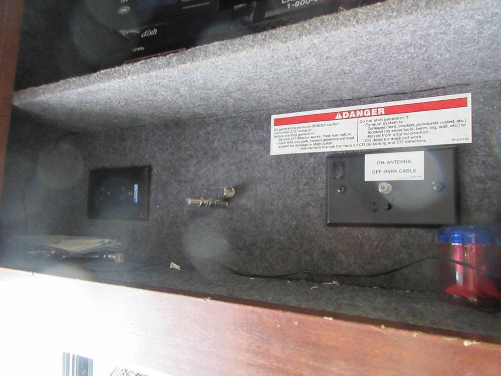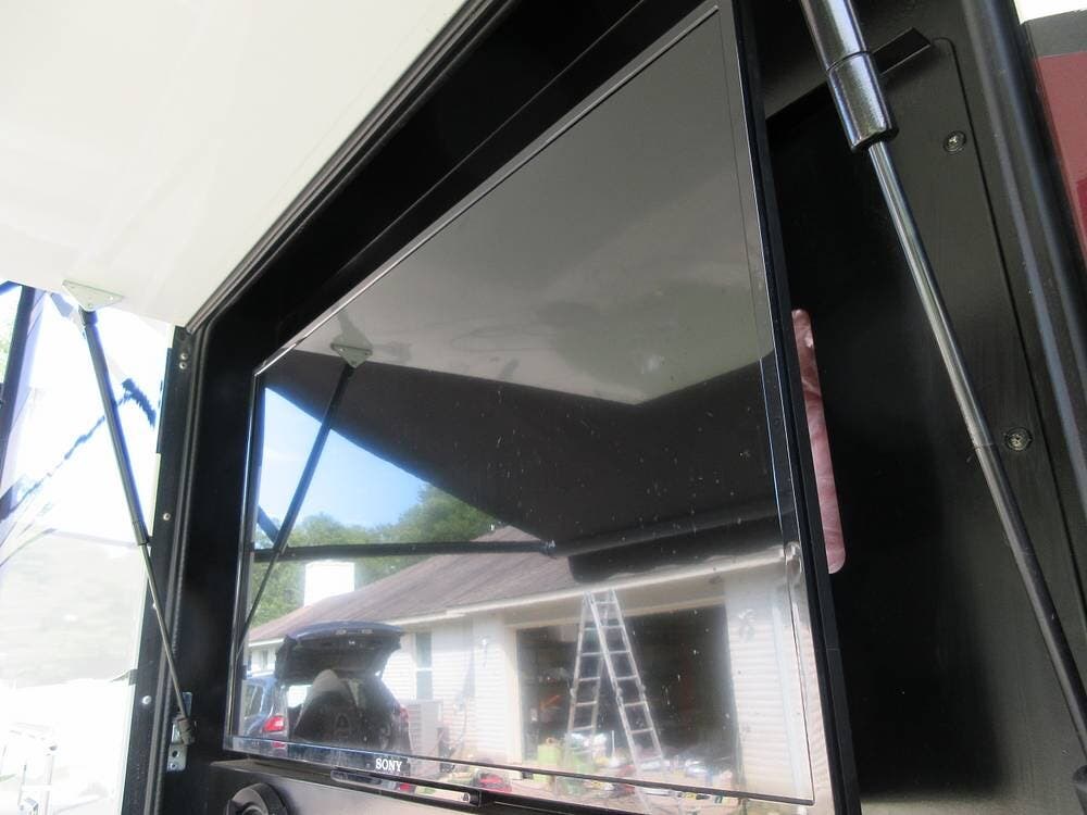 Four TVs put entertainment at your fingertips! There is a TV in the living area, in the bedroom, above the cab, and in an exterior compartment. The roof has a satellite dish, a Winegard antenna, and a digital TV antenna. Stereos and speakers inside and outside the unit allow you to play your favorite tunes wherever you wander.
