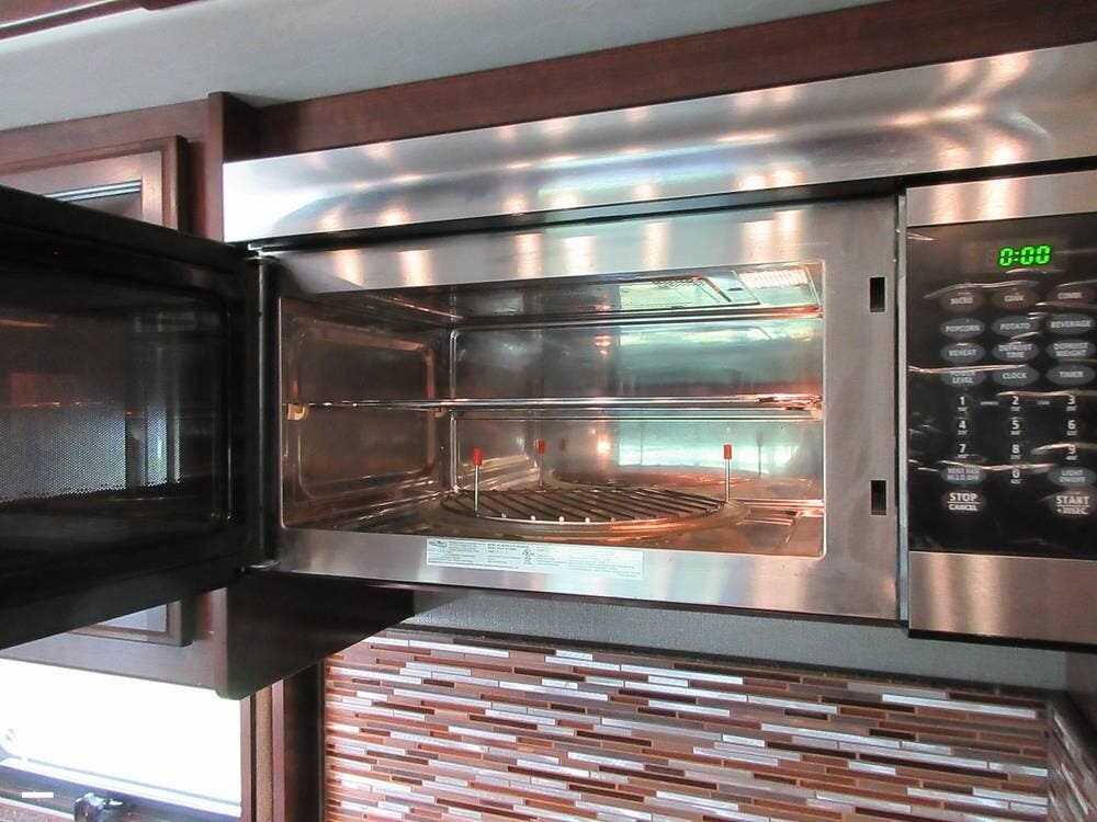 Do you like to cook? This RV has you covered with a residential refrigerator/freezer, a three-burner stove, and a microwave/convection oven. Lots of cabinets are available for all your supplies and accessories.