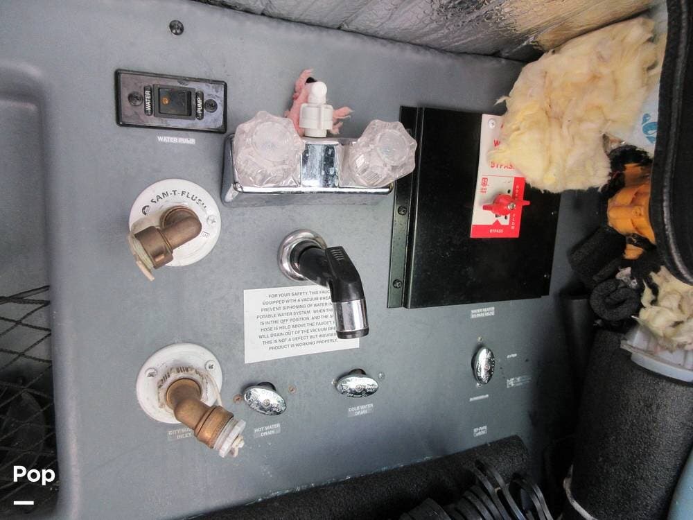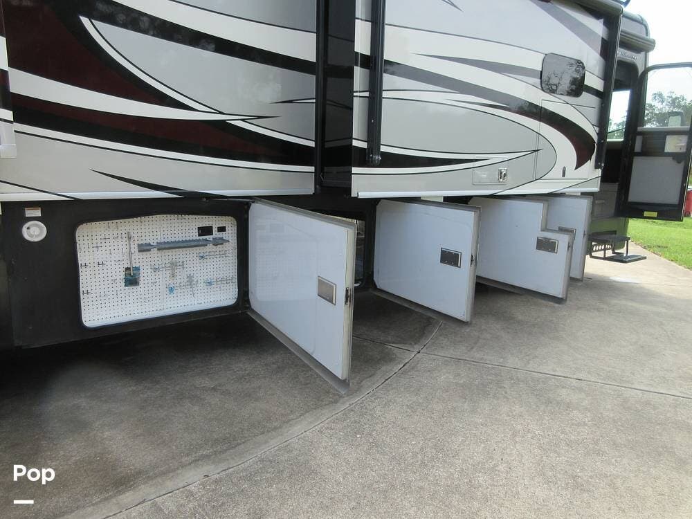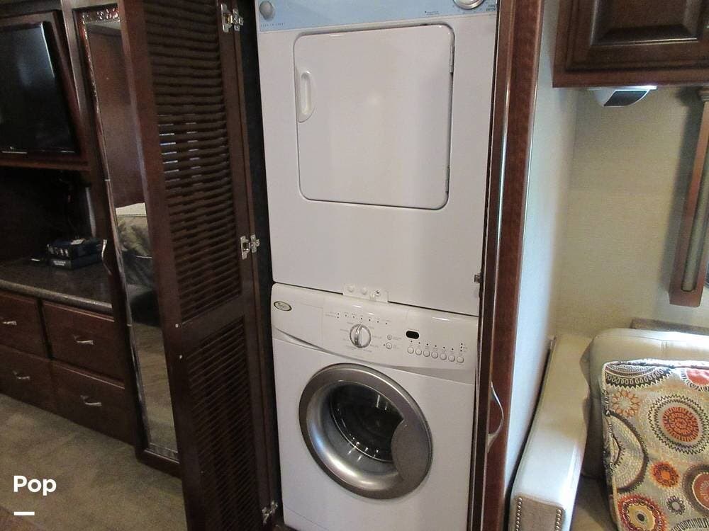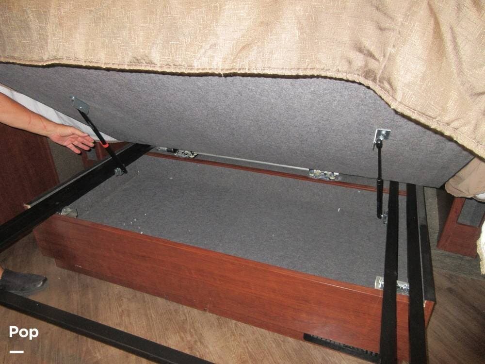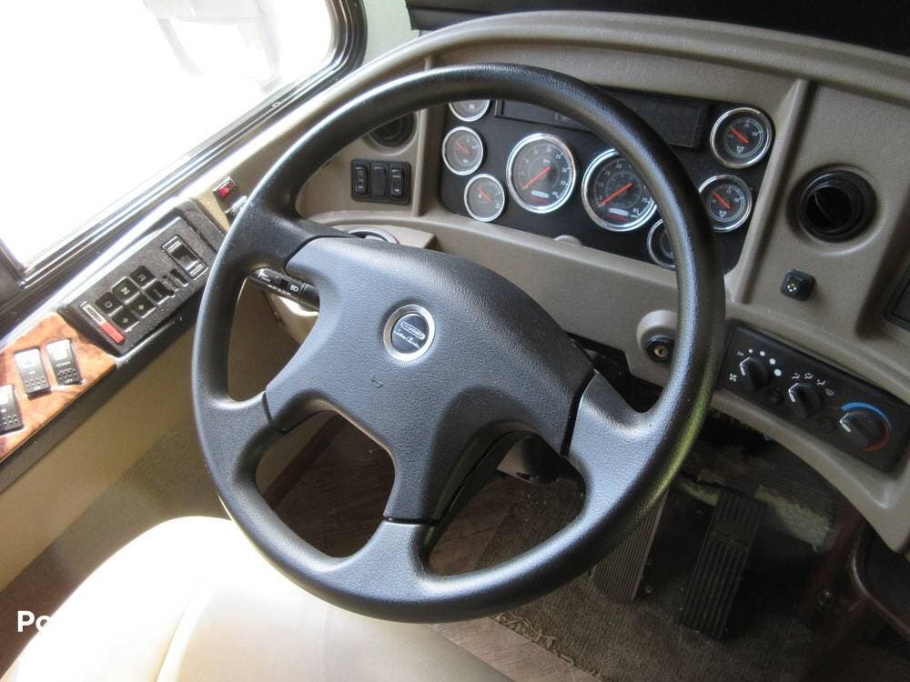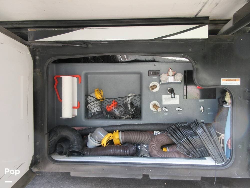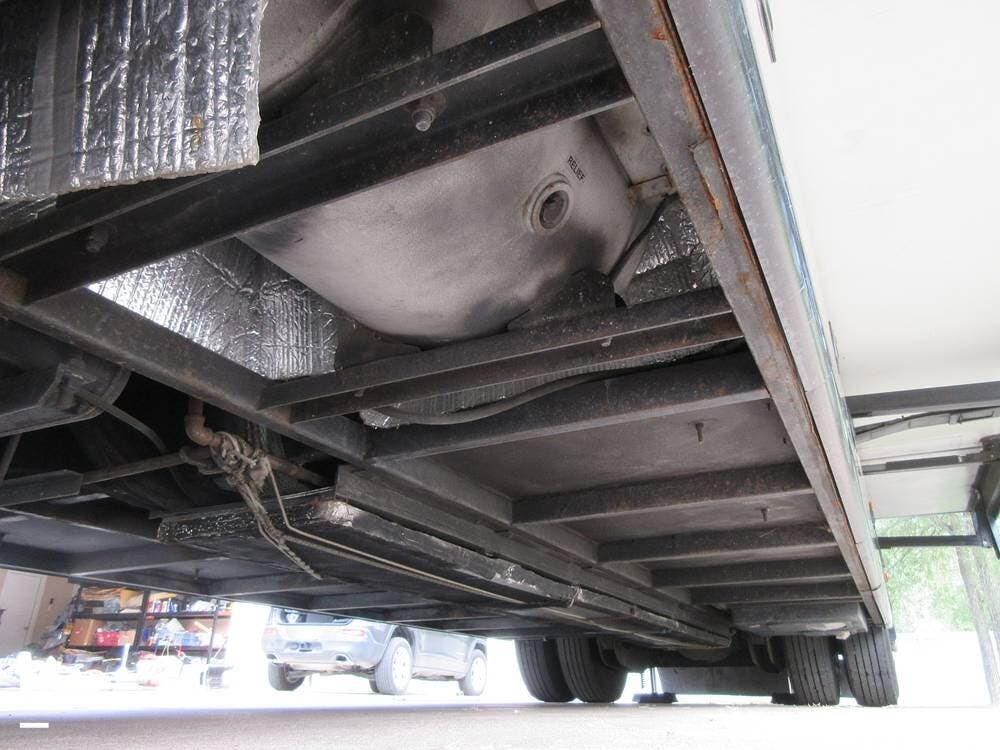 This Pace Arrow has abundant storage outside and in the basement, with compartments for patio accessories, tools, and more. The current owner also installed insulation in the basement area to keep the temperature in check.