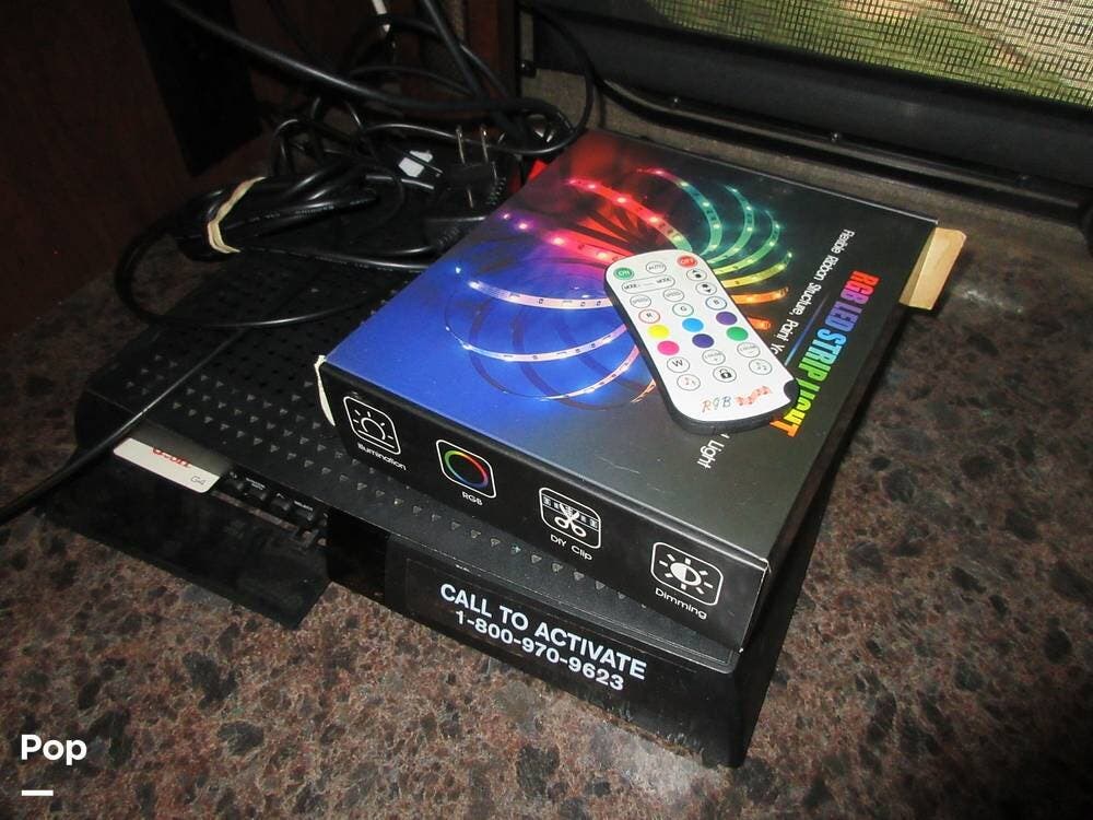 Extras include a stackable washer and dryer and LED multicolored lighting in the bedroom.