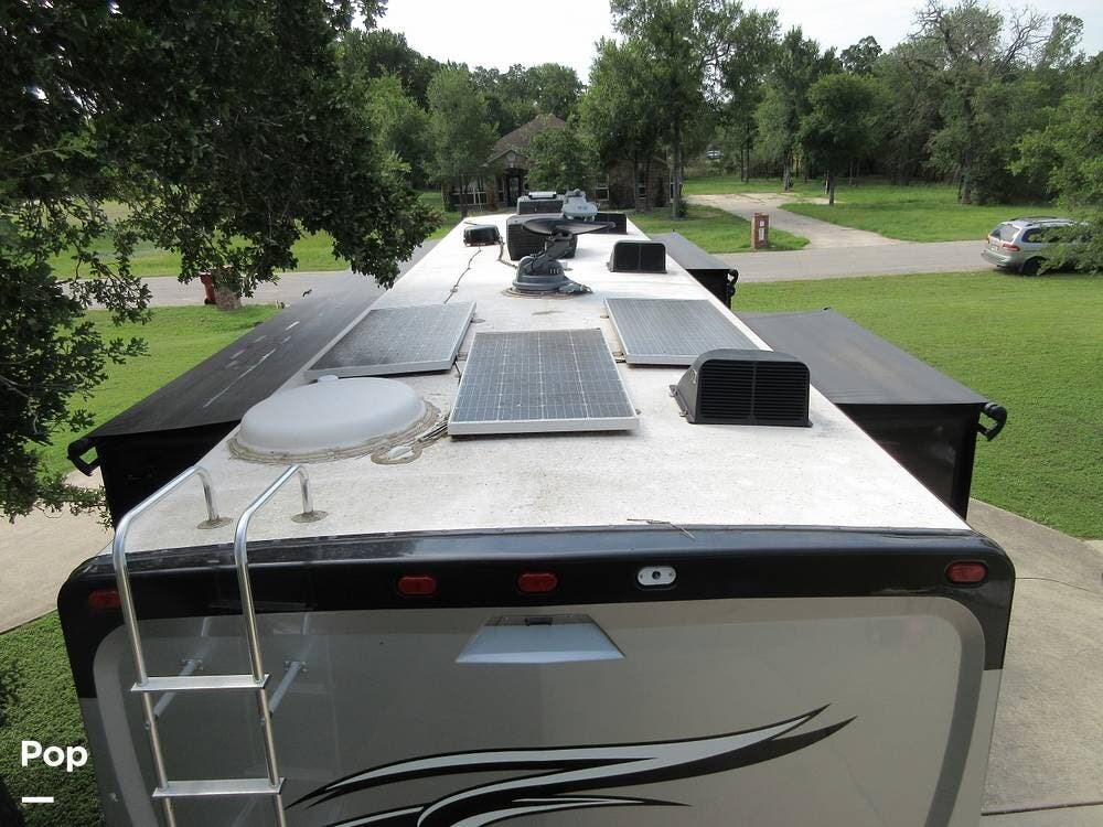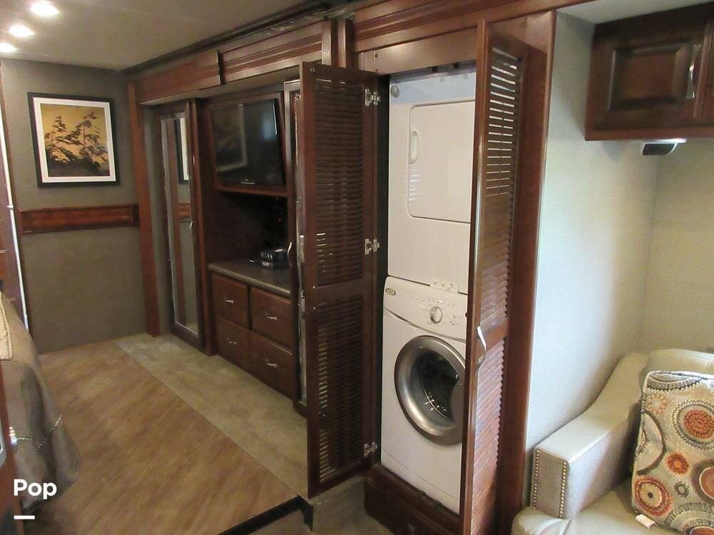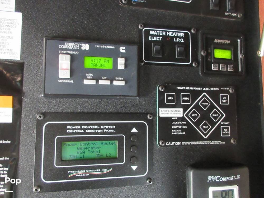 This Pace Arrow can perform well in any RV Park running on a 50 amp connection, or it can go off the grid and get power from the Onan 8000 Diesel Generator. Spending time off the grid is easy when you have a 100-gallon water tank, a 50-gallon waste tank, a 75-gallon gray tank, and a 164-pound propane tank. This RV is also outfitted with four solar panels and a 2000-watt inverter.