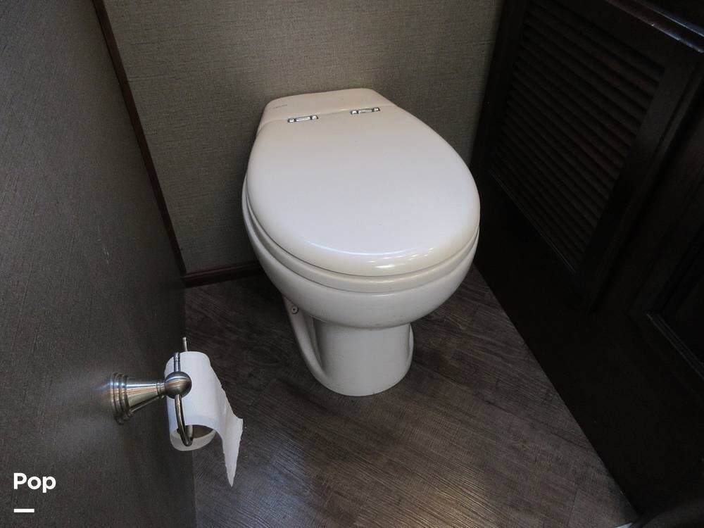 When it's time to call it a night, drift off to sleep on a comfortable king bed. The king bed has a power button to adjust from an L-shape position to a flat. Your guests can also find a spot to retire on the sofa and the dinette sleeper. This RV will sleep six folks comfortably.
