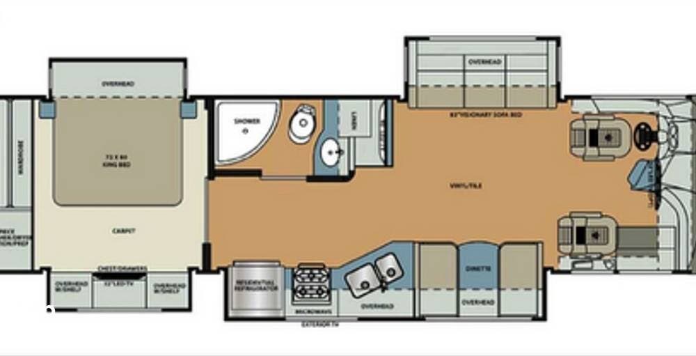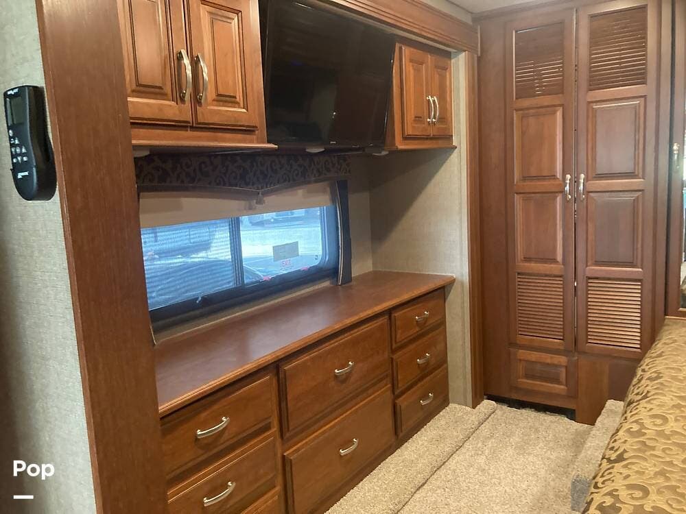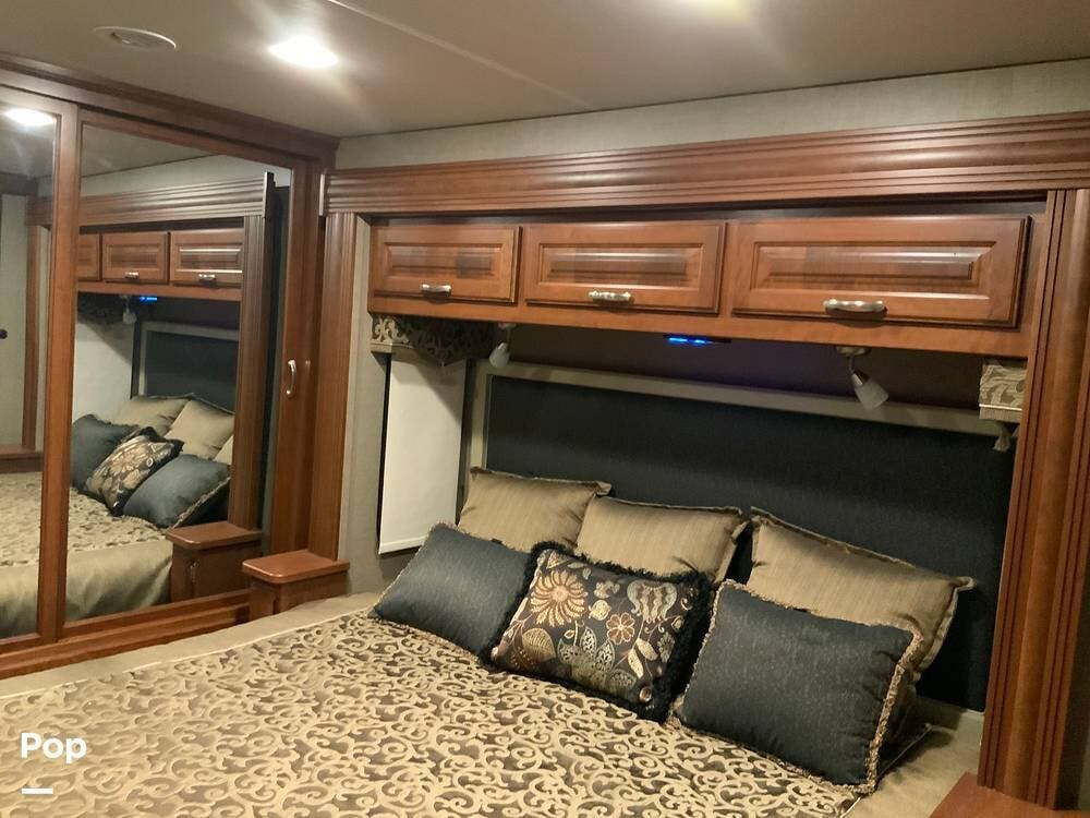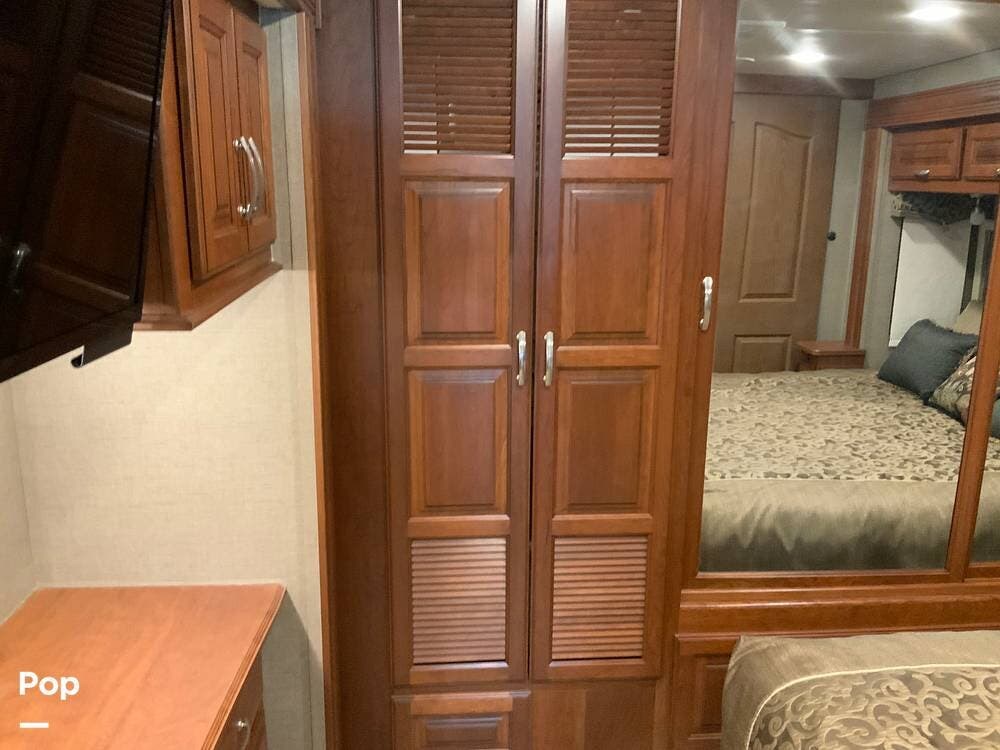This coach is ideal for extended travel, featuring ample storage, sleeping accommodations for up to 8, and a king bed in the master suite.