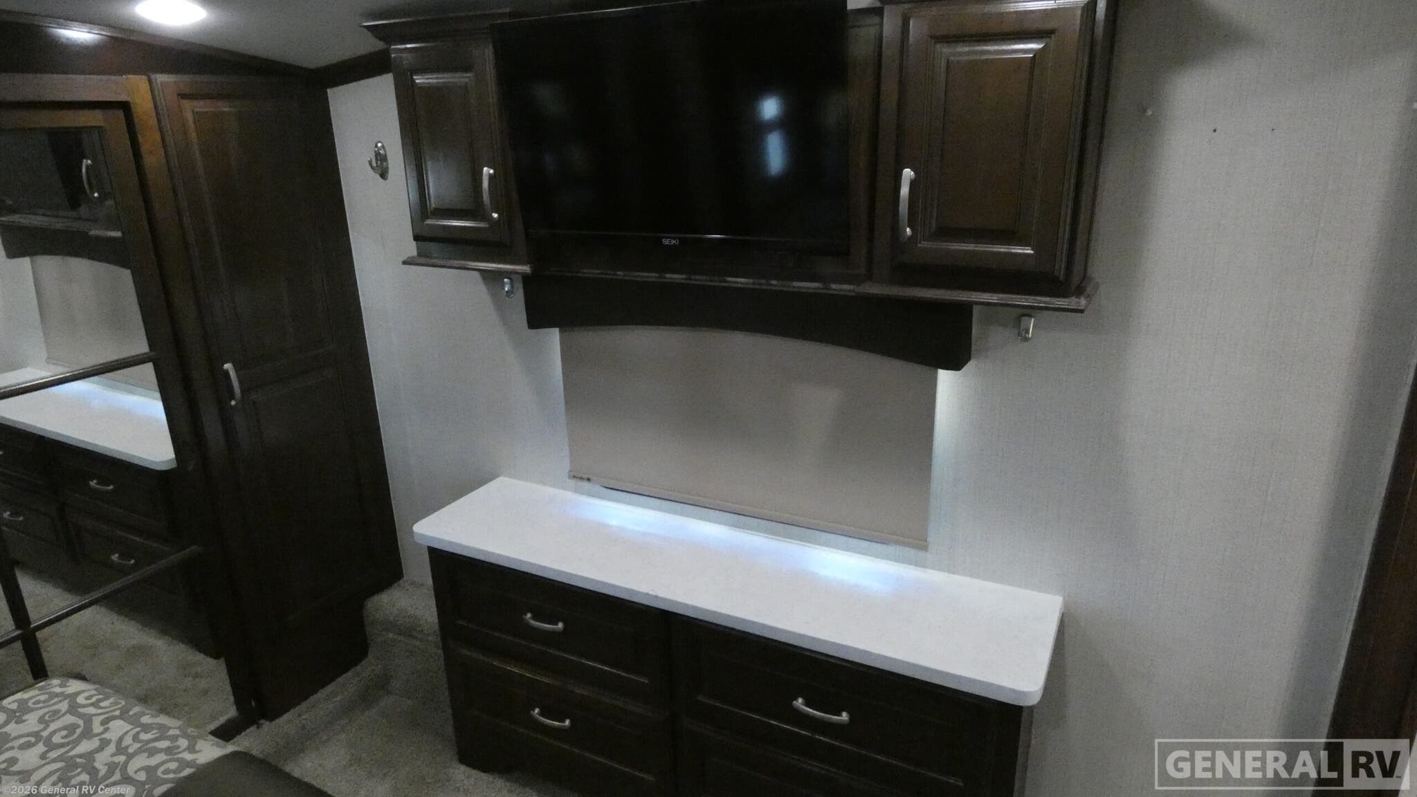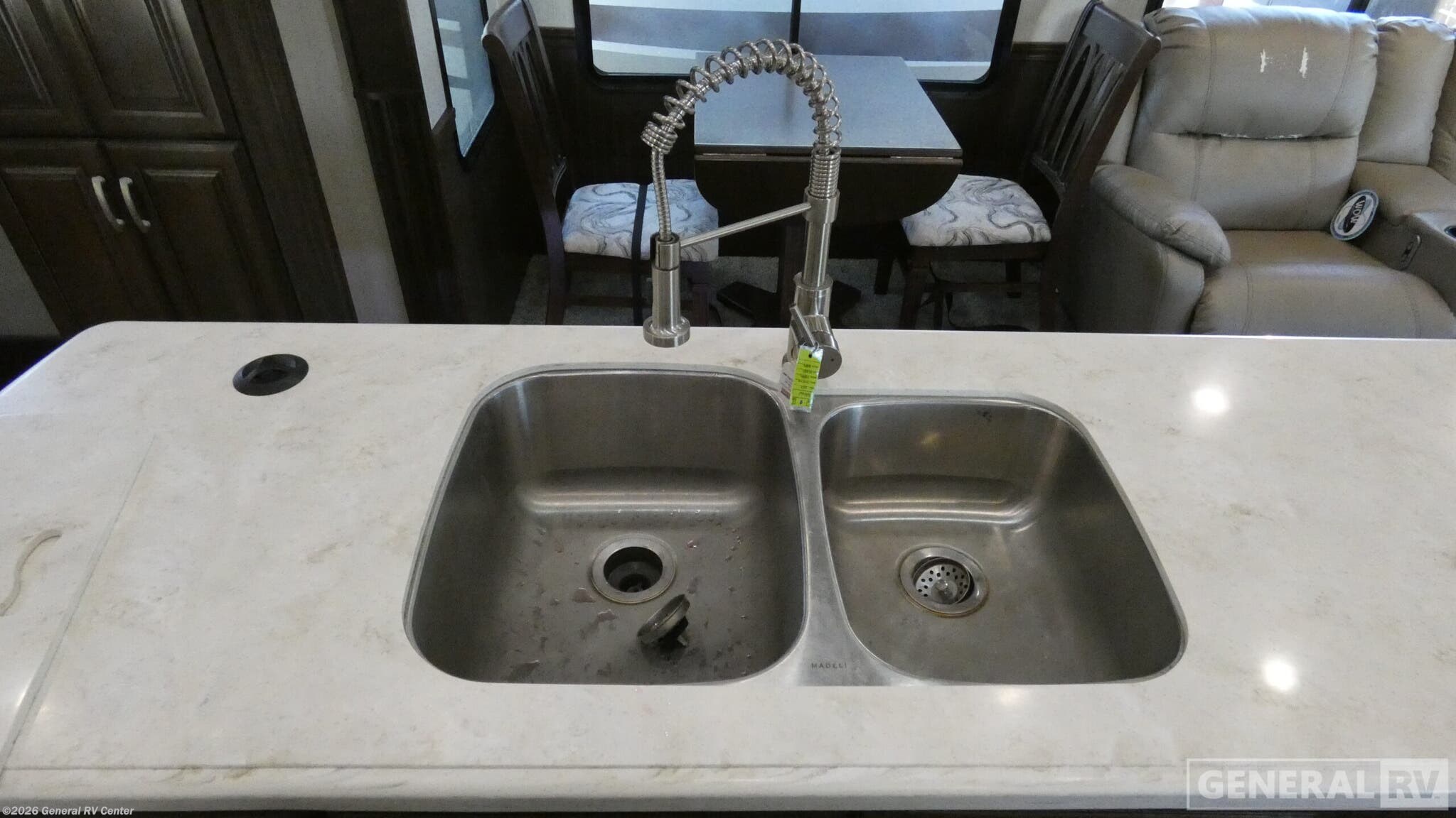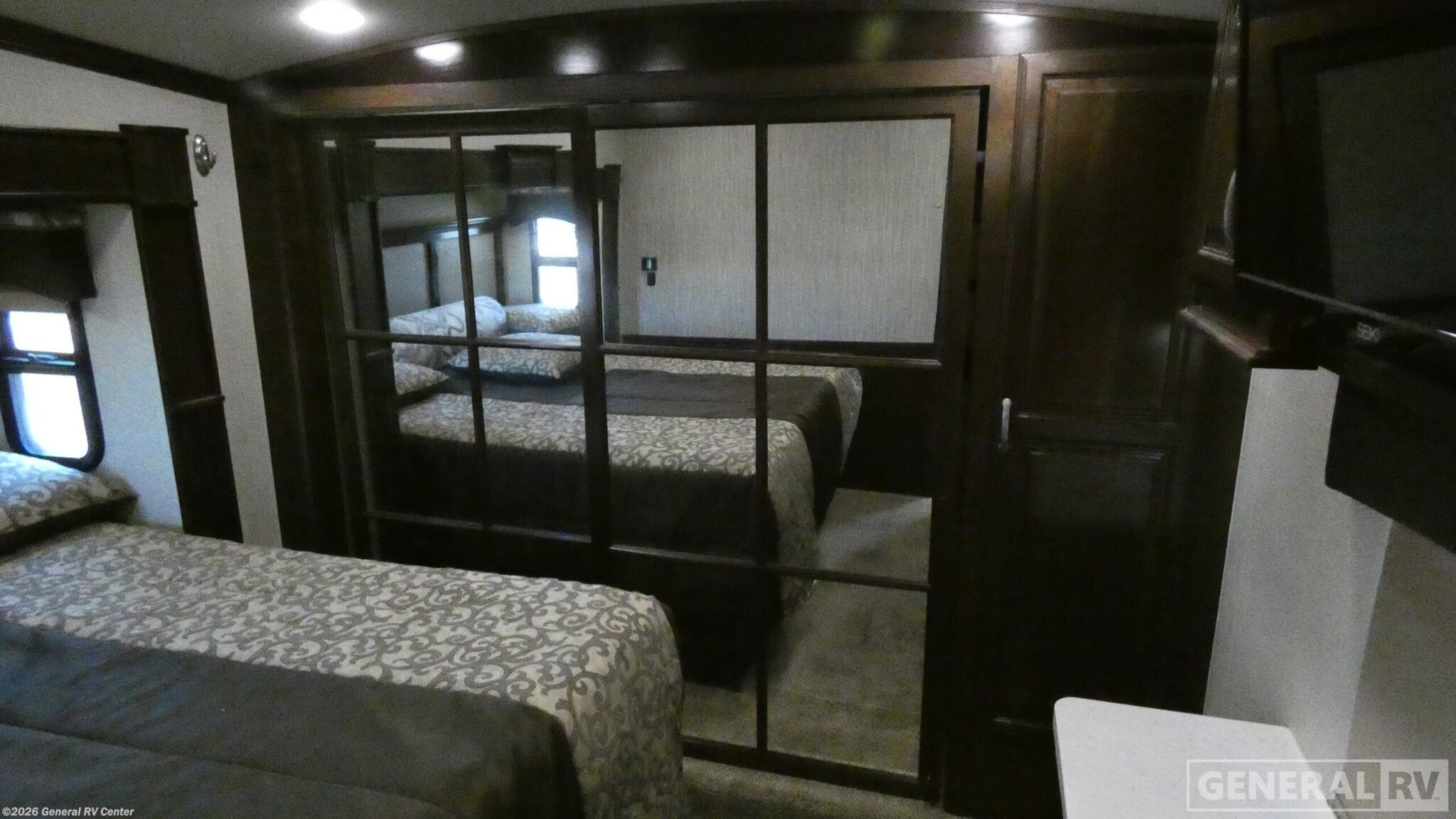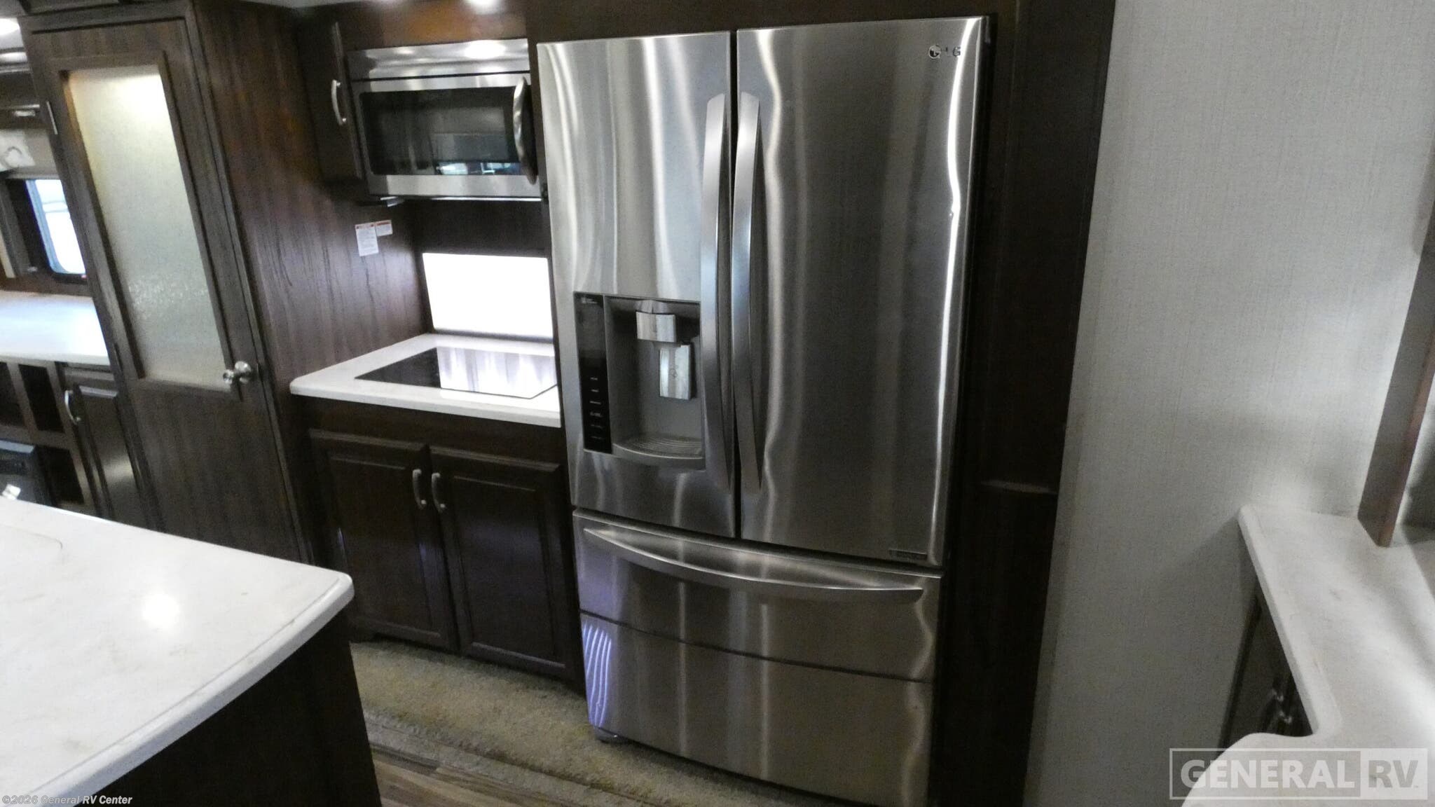This Cardinal Estate fifth wheel model 3455RL is similar in layout to model 3850RL in that it offers a rear living area, triple slides, and a front master bedroom and bath including a king pillow-top mattress, and more. The main difference is that the bathroom is flipped over to the road side instead of along the curb side, and the bedroom slide out contains only the bed rather than a wardrobe and nightstand along side of it. Step inside and notice how open the main living space is with dual opposing slides in this already 100" wide body model. You will enjoy plenty of seating along the curb side and rear with a free standing dinette for four and theater seating to the left of the door. Adjacent along the rear wall find a sofa hide-a-bed with overhead storage for your things. This can easily be transformed into added sleeping space for two additional guests. From either of these seating areas you can view the entertainment center in the slide opposite the door side which also features the kitchen appliances. Cooking will be simple in this Cardinal Estate kitchen with a slide out three door refrigerator, a three burner cook-top, microwave oven, and pantry. The kitchen island features a double sink, plus a drawer style dishwasher so you can get back to exploring or enjoying the outdoors, rather that being stuck inside doing the dishes. Head up the steps to the right of the entry door and find a side aisle bath and front master bedroom. The bath provides a corner shower, toilet, and vanity with sink, plus overhead medicine cabinet. At the head of the hall a sliding door leads into the front master bedroom where you will sleep soundly on the king pillow-top mattress. There is storage available under the bed, as well as in the dresser opposite, and in the wardrobes along the front of the unit. Here you will find space for your hanging clothes, plus drawers and shelves for the rest of your belongings. There is even a space prepped for a washer and dryer if you choose to add, plus so much more!