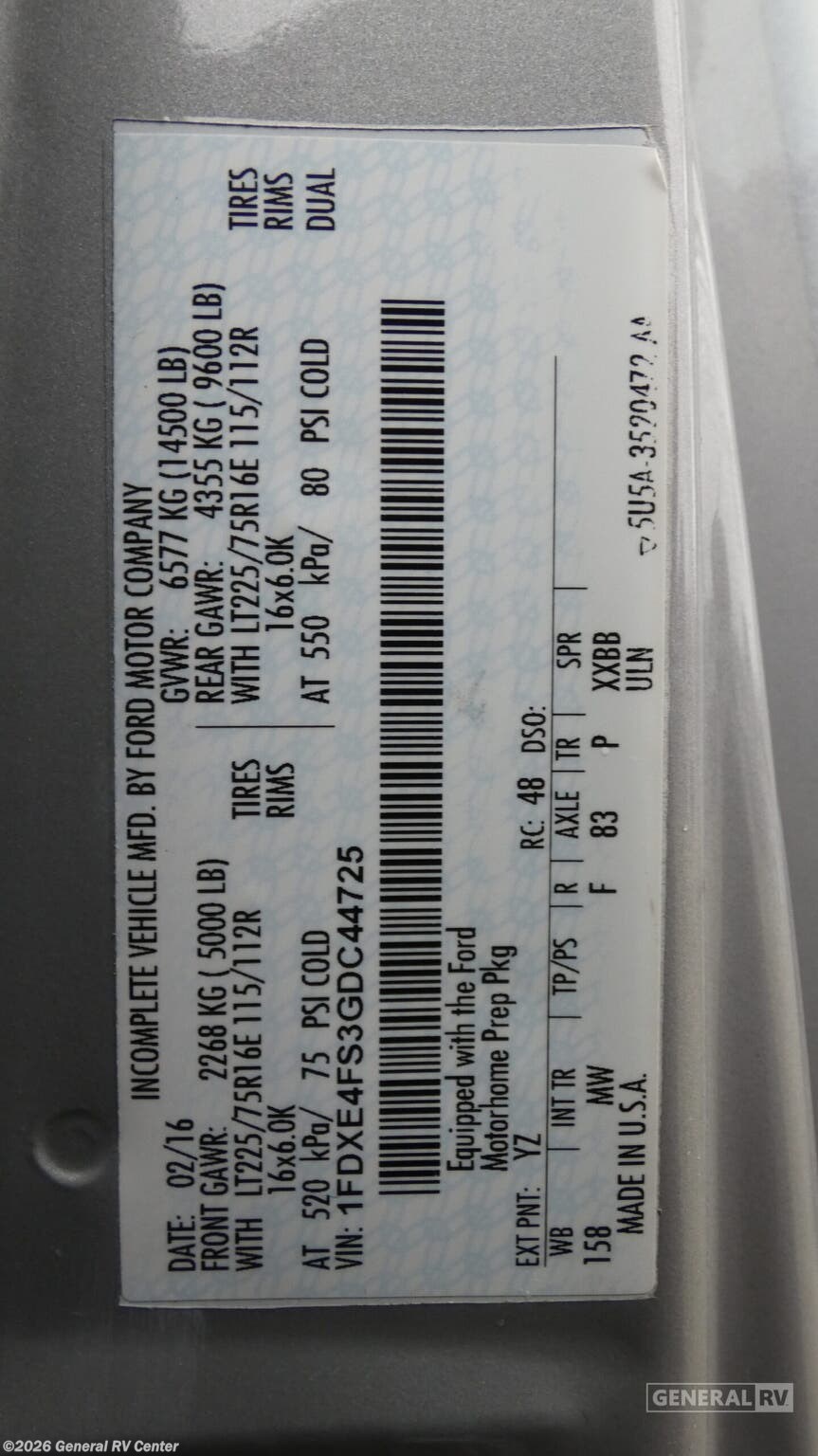 - VIN1FDXE4FS3GDC44725