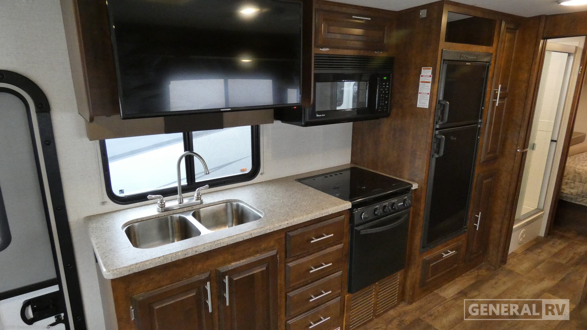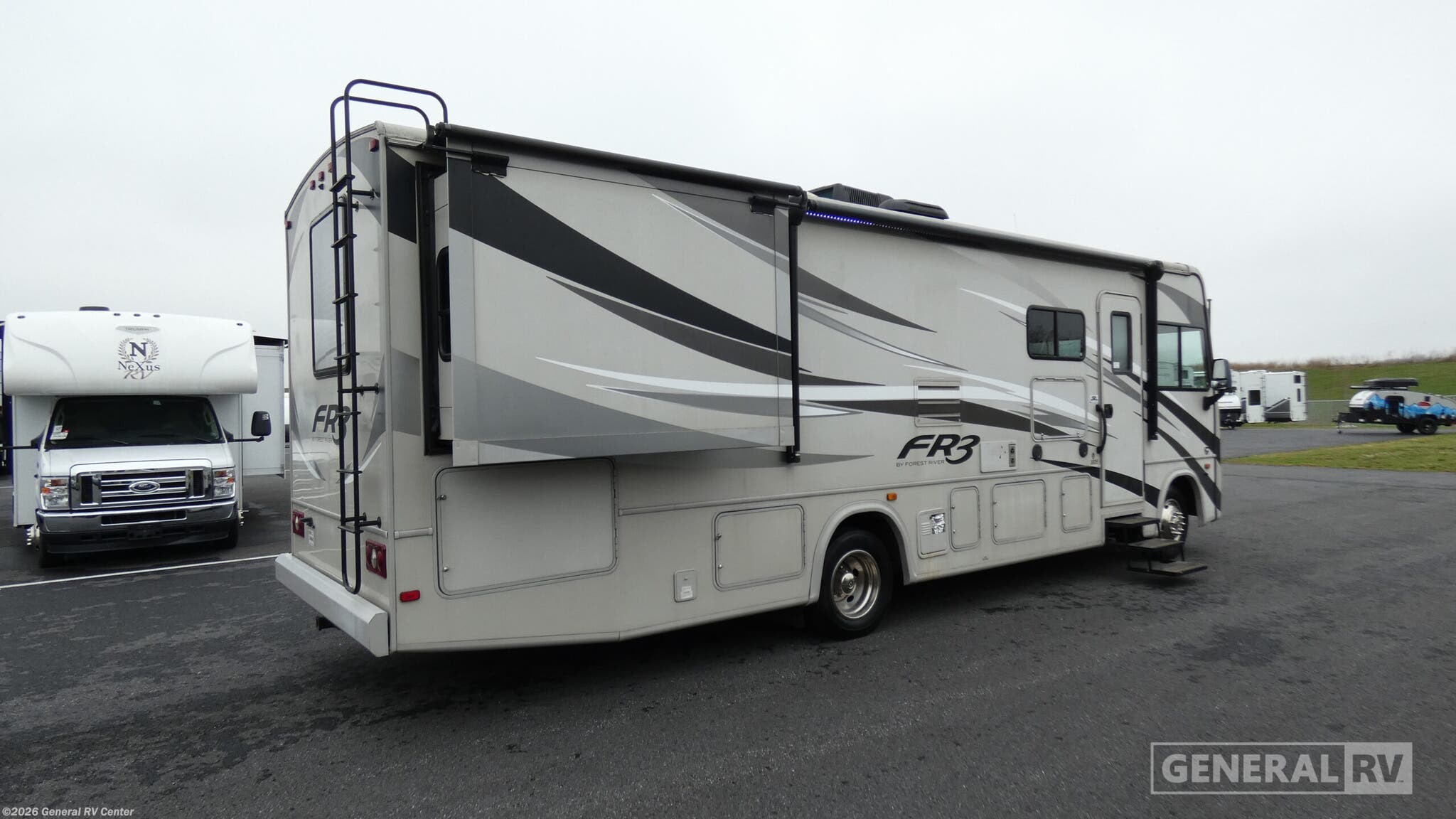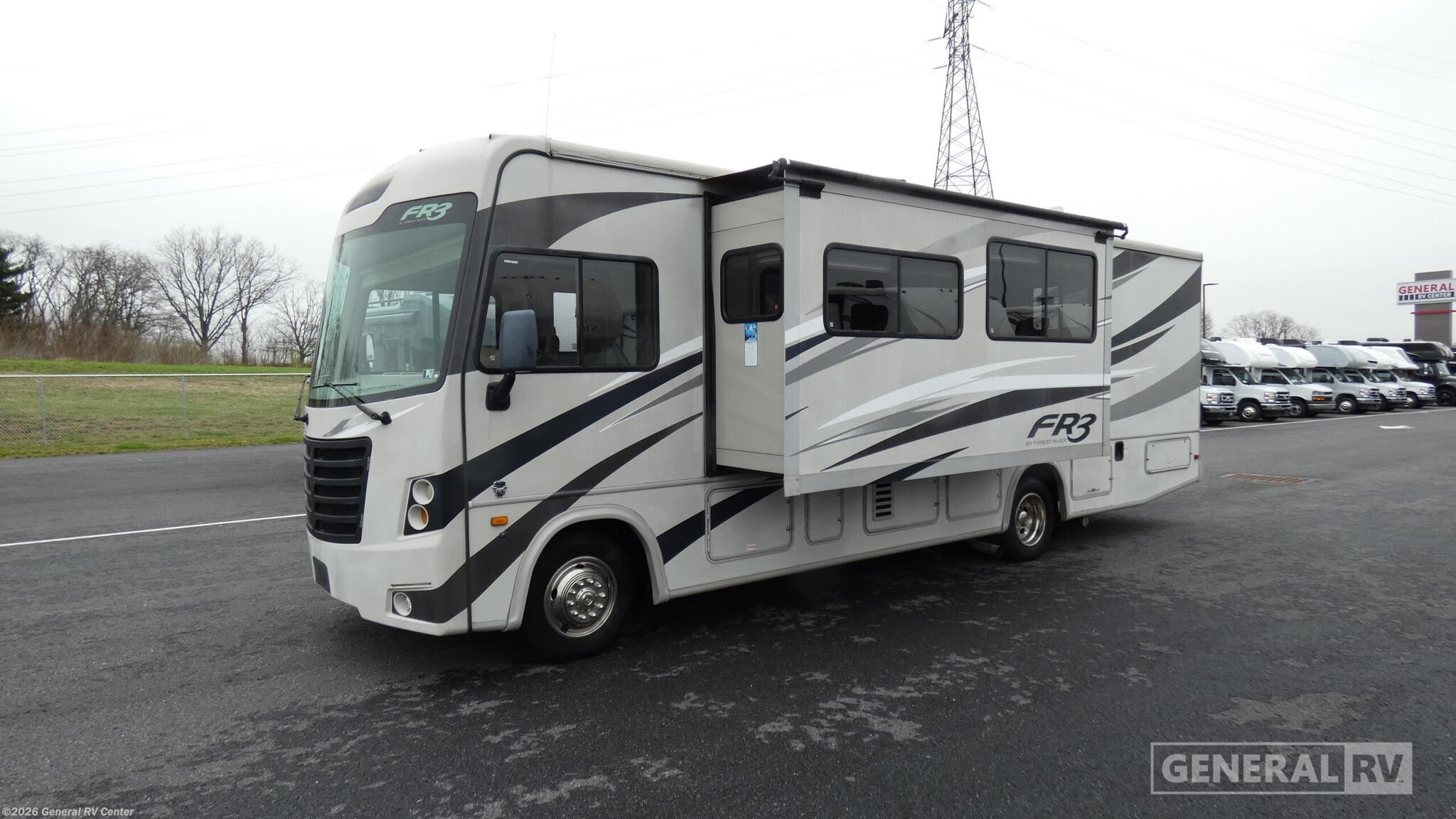 You are sure to enjoy this FR3 30DS Class A gas motor home by Forest River on your next vacation. There is a walk-thru bath, rear bedroom, and two slides to name a few of the features you are sure to want. As you enter the motor home, on your left there is a double kitchen sink, 40" LED TV, countertop space, three burner range with residential microwave above, a refrigerator and pantry. You can choose an optional 18 cu. ft. refrigerator is you like. The opposite side offers a slide out hide-a-bed sofa with footrests and a wrap-around booth dinette. The walk-thru bathroom includes a private toilet area with a vanity sink on one side of the motor home, and a shower on the other side. You can choose to close the sliding doors for privacy for a full bath. In the rear of the motor home, you will find a king bed slide with overhead cabinets, plus wardrobes and a LED TV on the opposite side. There is also a power fold-away bunk above the driver and passenger seats, and a passenger work station below, plus more inside and out!.