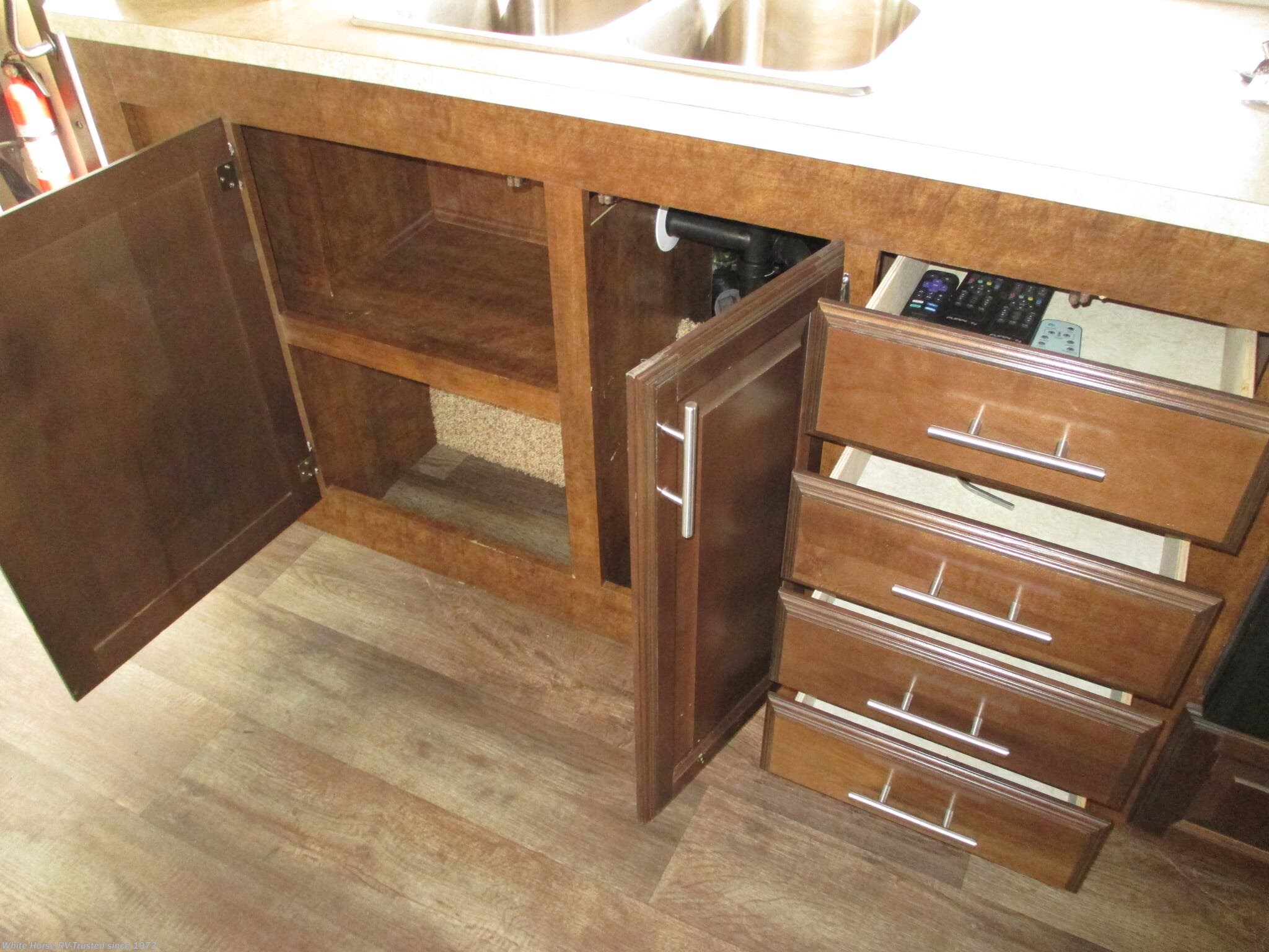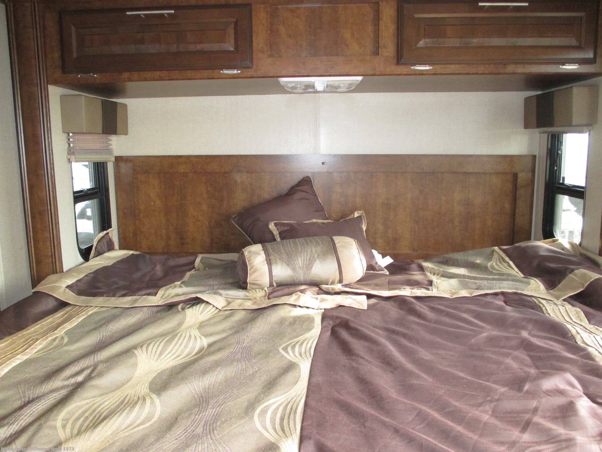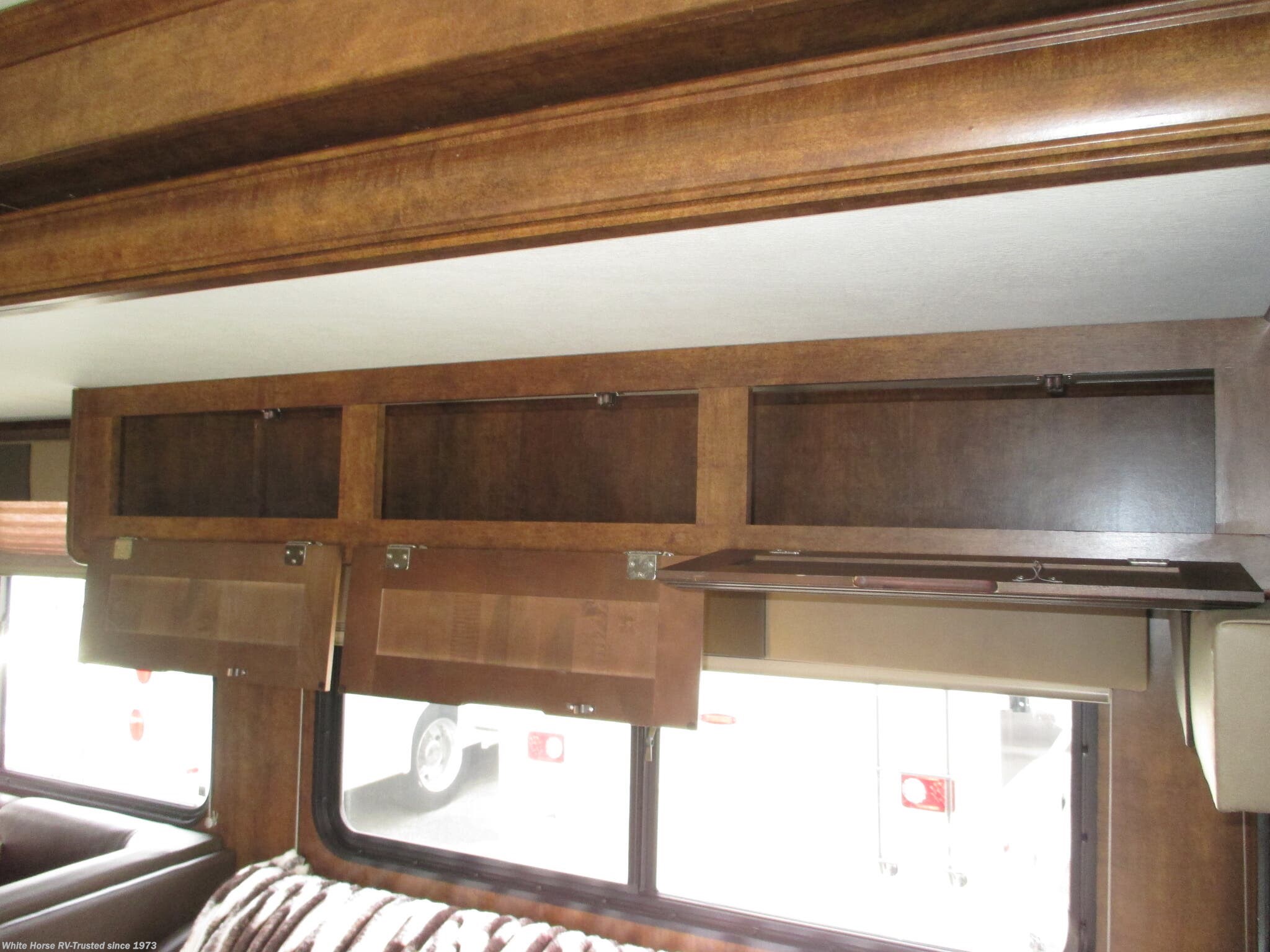 - Rear Bedroom Suite with Walk-Around East-West 70 x 80" King Bed Slide, Overhead Storage Cabinets, Vanity, Chest of Drawers, Mirror Wardrobes, and Bedroom TV!
