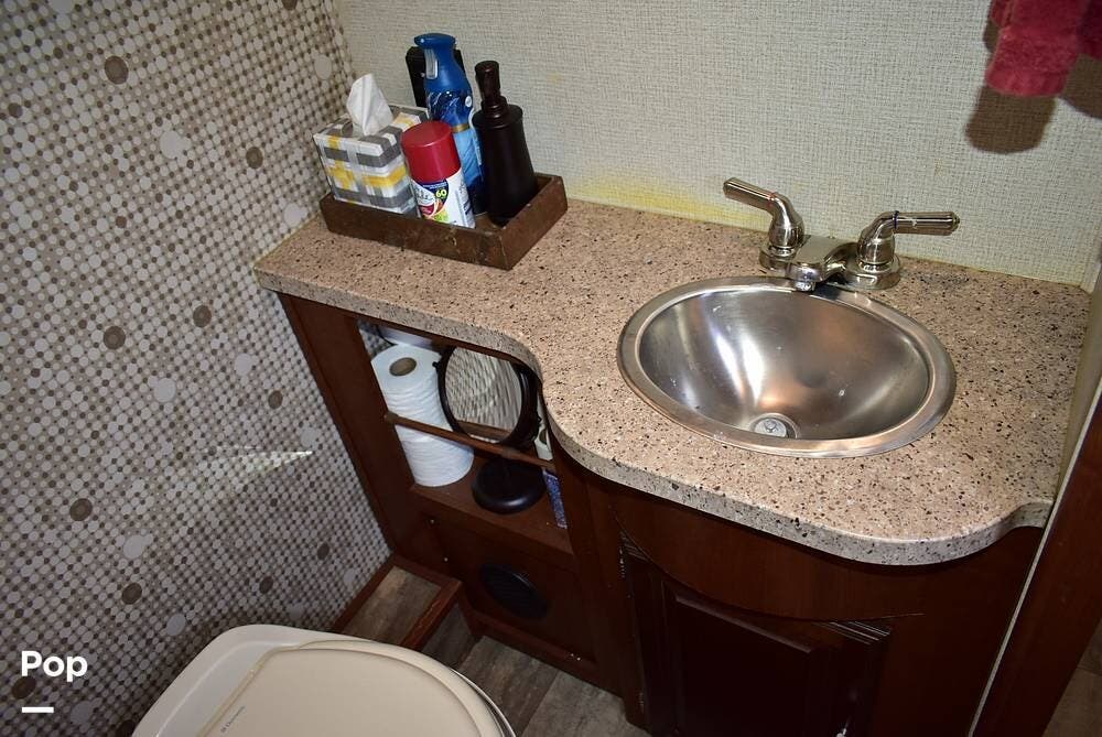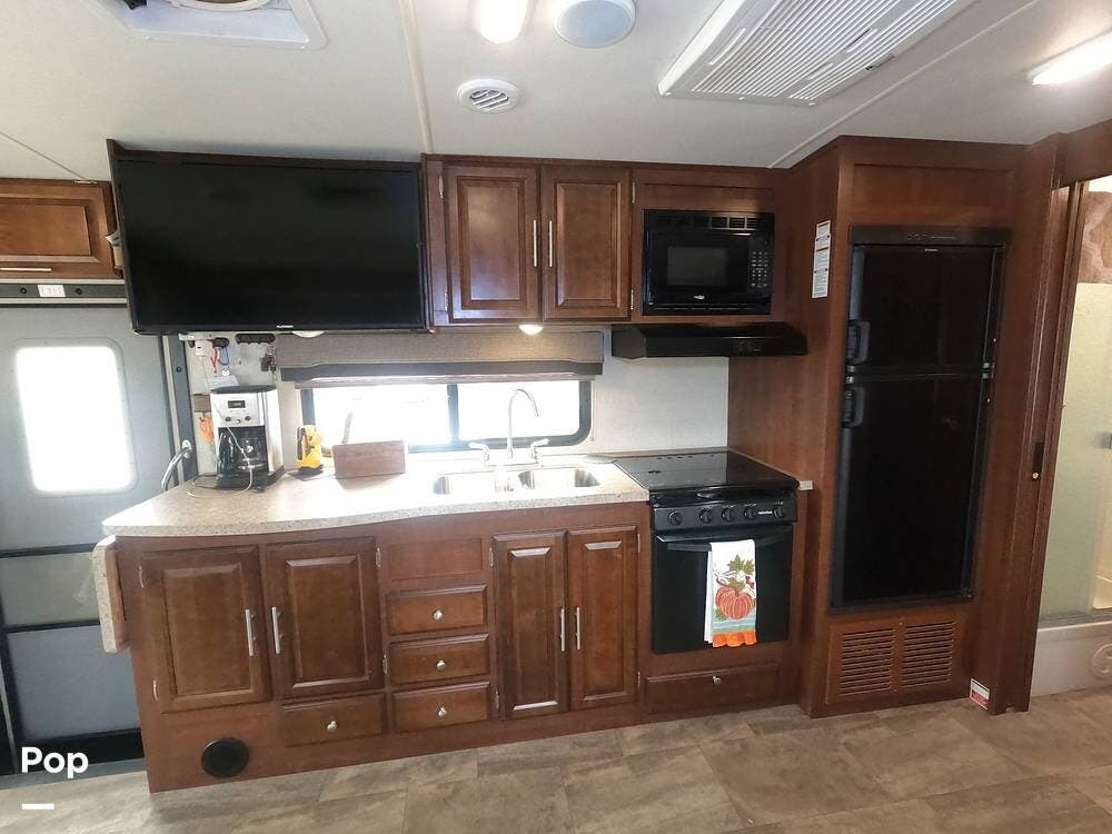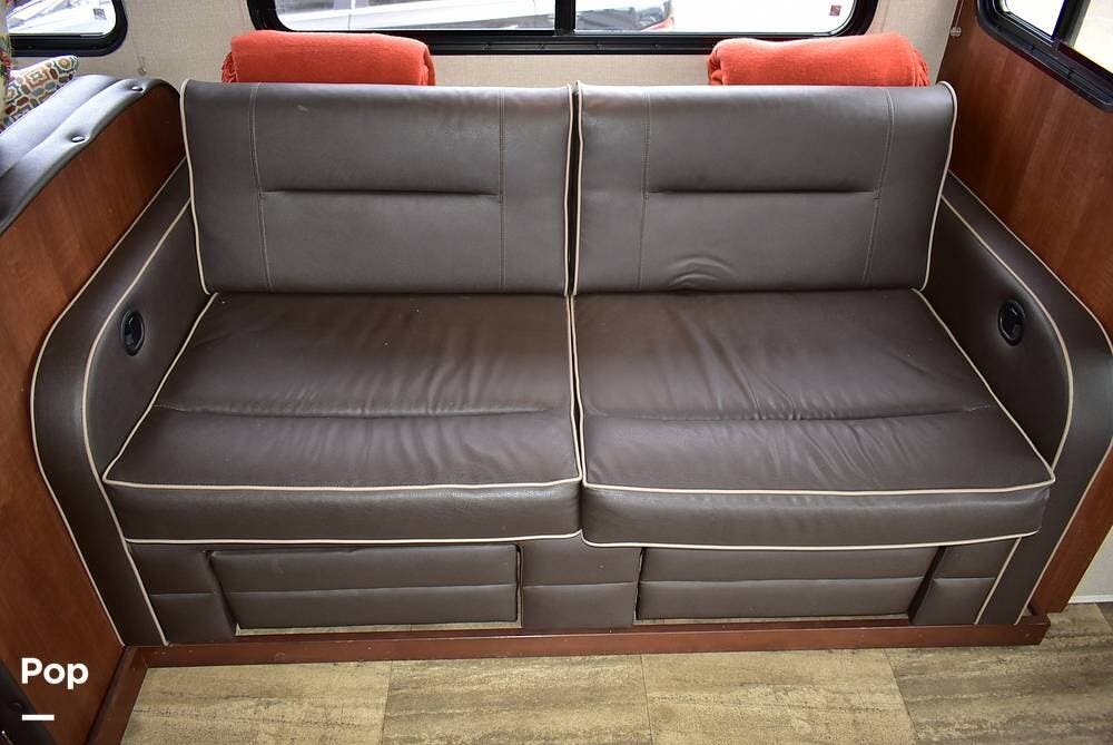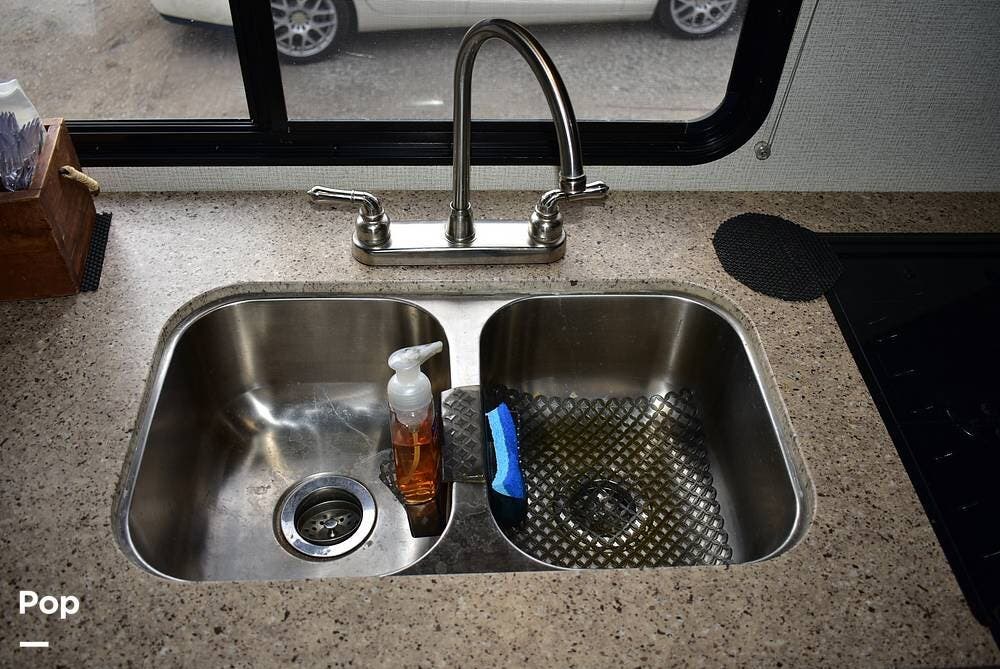 Inside, you'll find a dream dinette and a cozy hide-a-bed sofa, while custom countertops add elegance to your kitchen. The under-mount stainless steel sink complements the design perfectly, making cooking and cleaning a breeze.