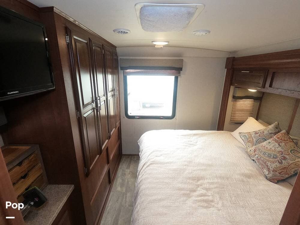 Stay cool with the high-output Quiet Air Command ducted roof A/C with heat pump, and enjoy your favorite shows on the 40" LED main TV or 24" LED bedroom TV.