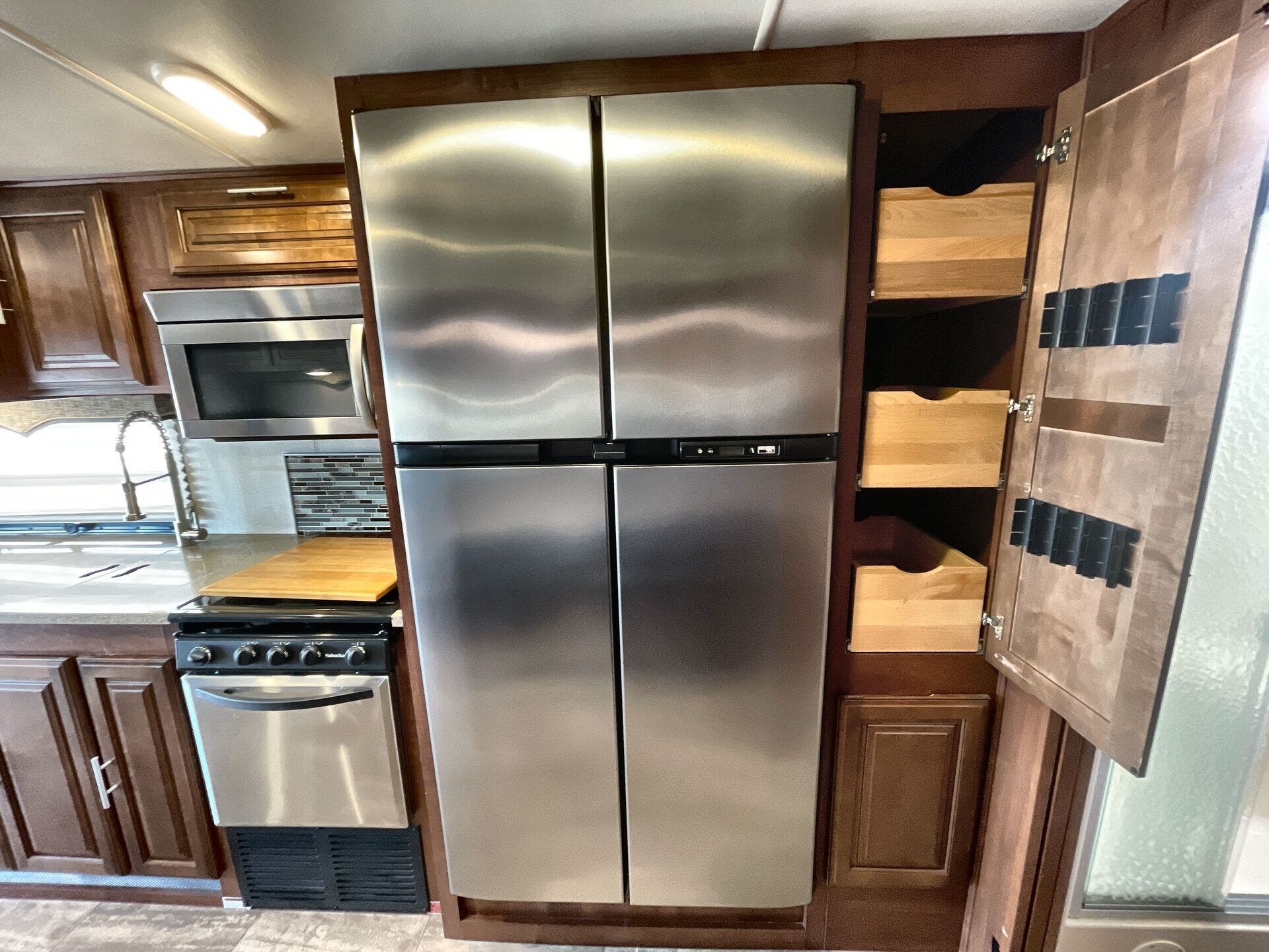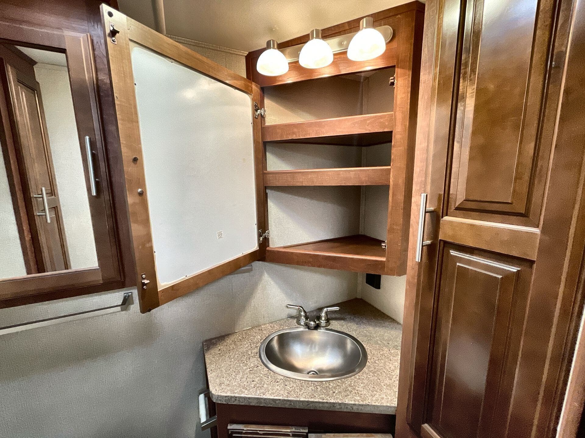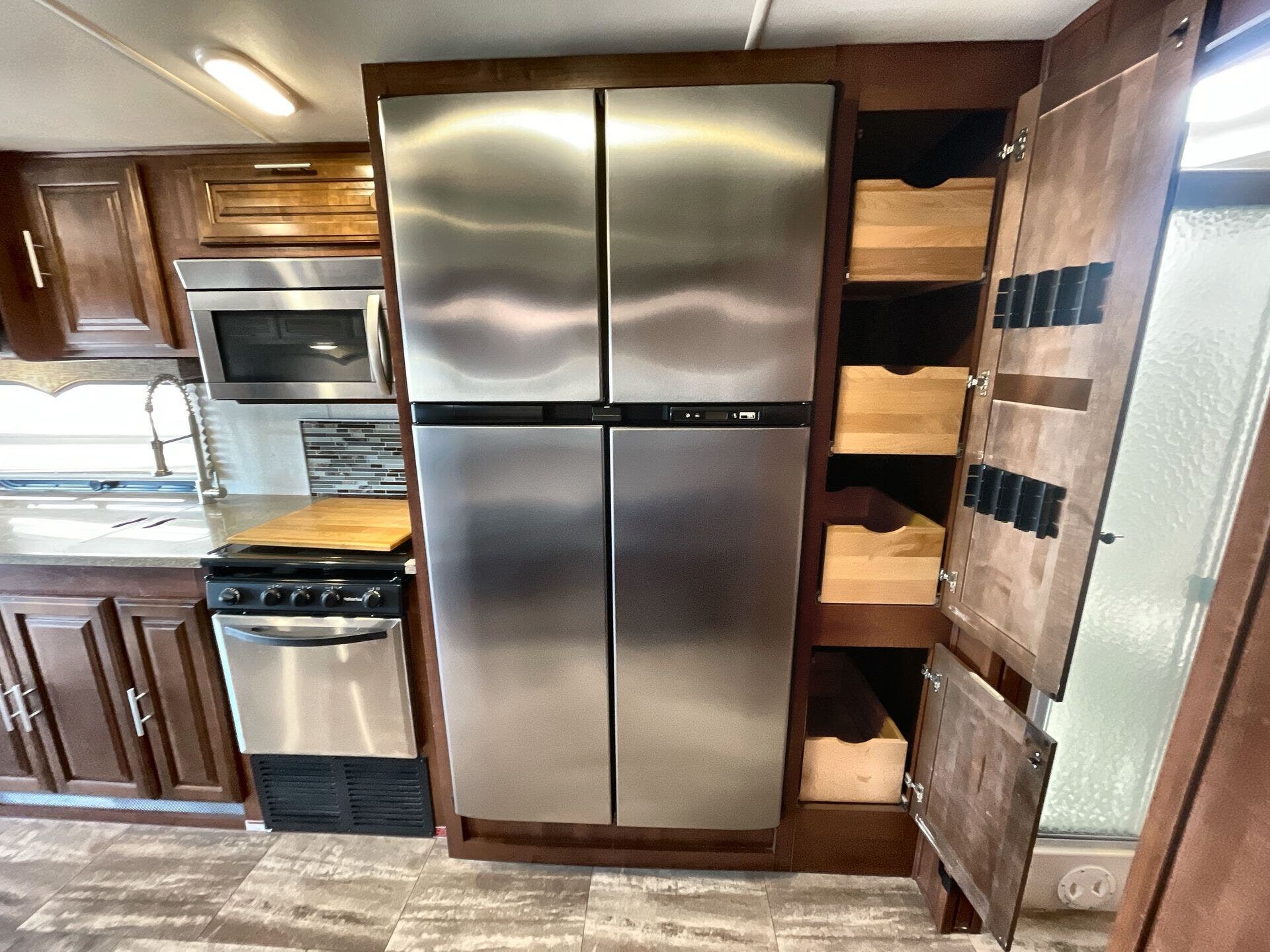 The 31R floorplan centers on a welcoming Front Kitchen and Front Living Area, designed for socializing and cooking on the go. A Mid Bath separates the living zones from the Rear Bedroom, offering privacy after a day of travel. Ample storage, including a pantry and medicine cabinet, helps keep essentials organized, while the dinette provides a convenient dining nook. With a well-lit interior and functional galley, this layout delivers both comfort and practicality for seasonal adventures or weekend escapes.