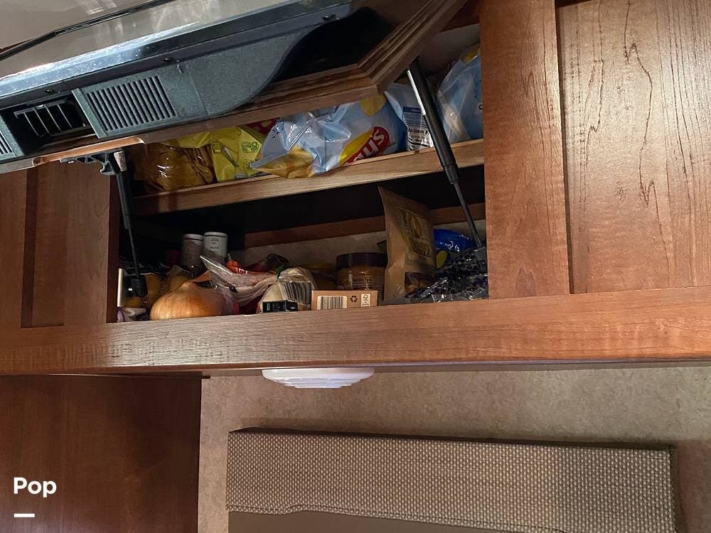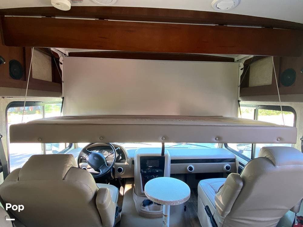 Walking inside to your right is the driver/passenger area with a drop-down bed above it.