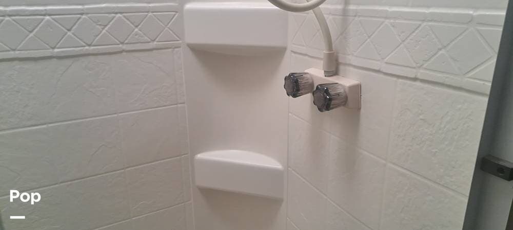 It has a wide, 30" doorway accessed by three-tread automatic steps and a rubber entry grab handle.