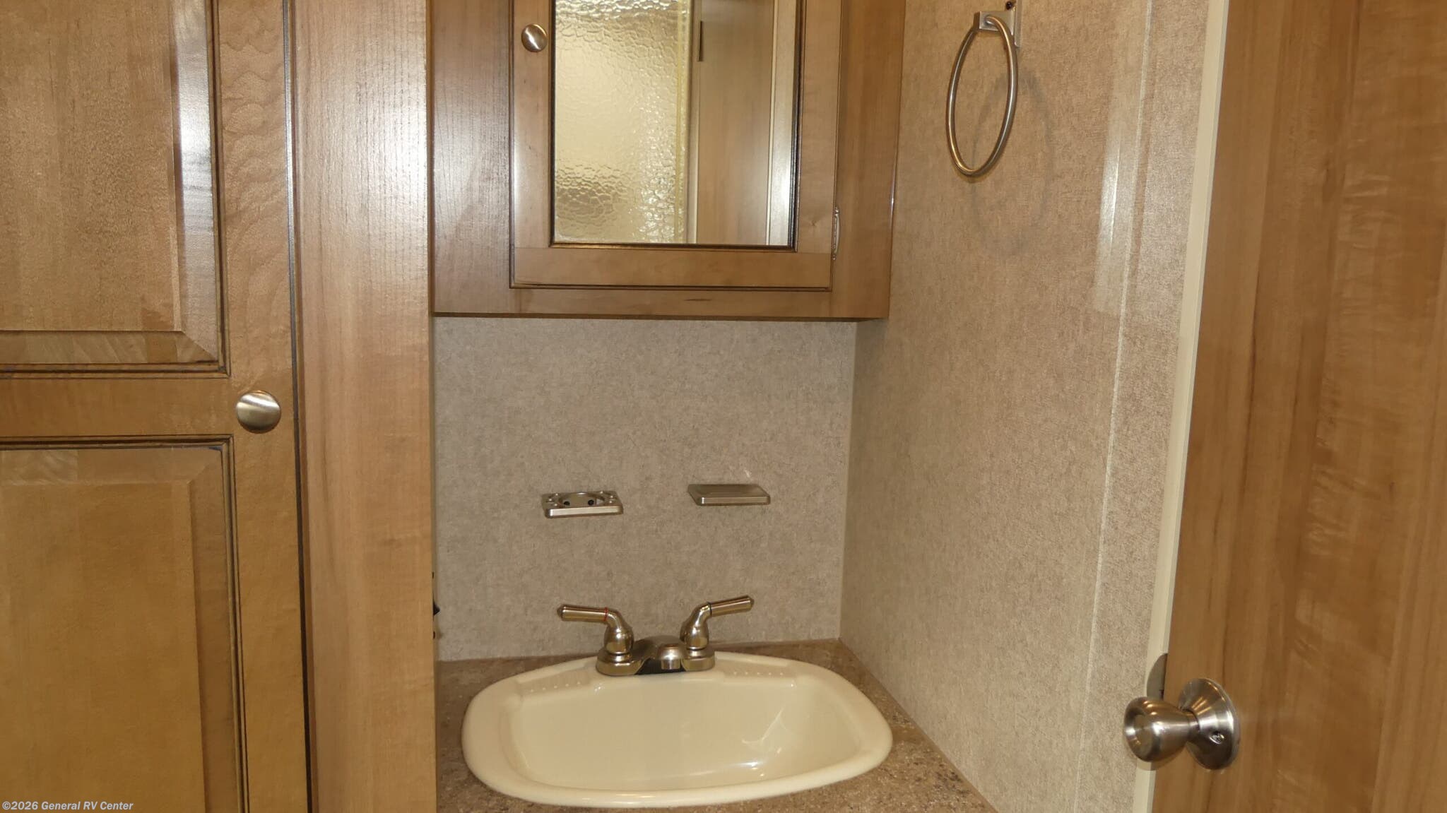This single slide out Rockwood Mini Lite 2304KS by Forest River is a great travel trailer for a weekend away. As you enter to your left there is a dinette with overhead cabinets along the curb side wall, and an entertainment center above the interior wall. In the rear bathroom you will find a radius shower, linen cabinet, and a toilet on the left side, plus a wardrobe, and sink with medicine cabinet above on the right side. In the kitchen area there is a refrigerator and pantry for your food storage needs while camping. You will find a slide out three burner range, microwave, double kitchen sink, and second pantry along the road side wall providing more interior floor space. The front of the trailer provides a sofa to relax on during the daytime, and a Murphy bed for nighttime. You can hang your clothes in the wardrobe and lay your keys on nightstand on either side of the sofa/Murphy bed. Outside be sure to enjoy the shade from the 15' awning, and the storage provided by the exterior compartments, plus more!