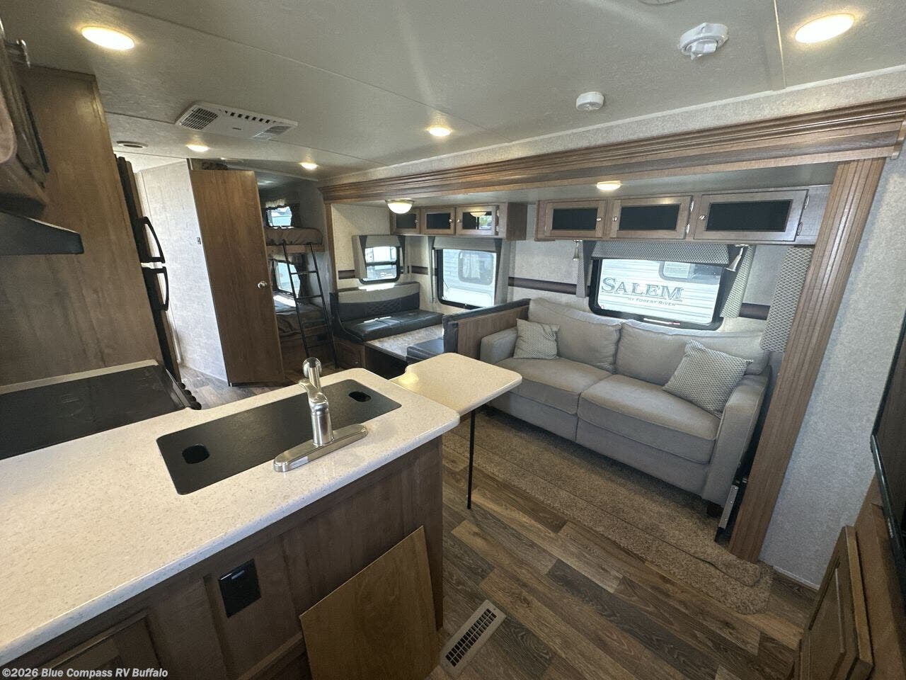 It's time to enjoy all the amenities at home in your next travel trailer. This Rockwood Ultra Lite 2702WS travel trailer by Forest River offers dual entry, a set of bunk beds, a private front bedroom, and a kitchen to make all your favorite camp meals.