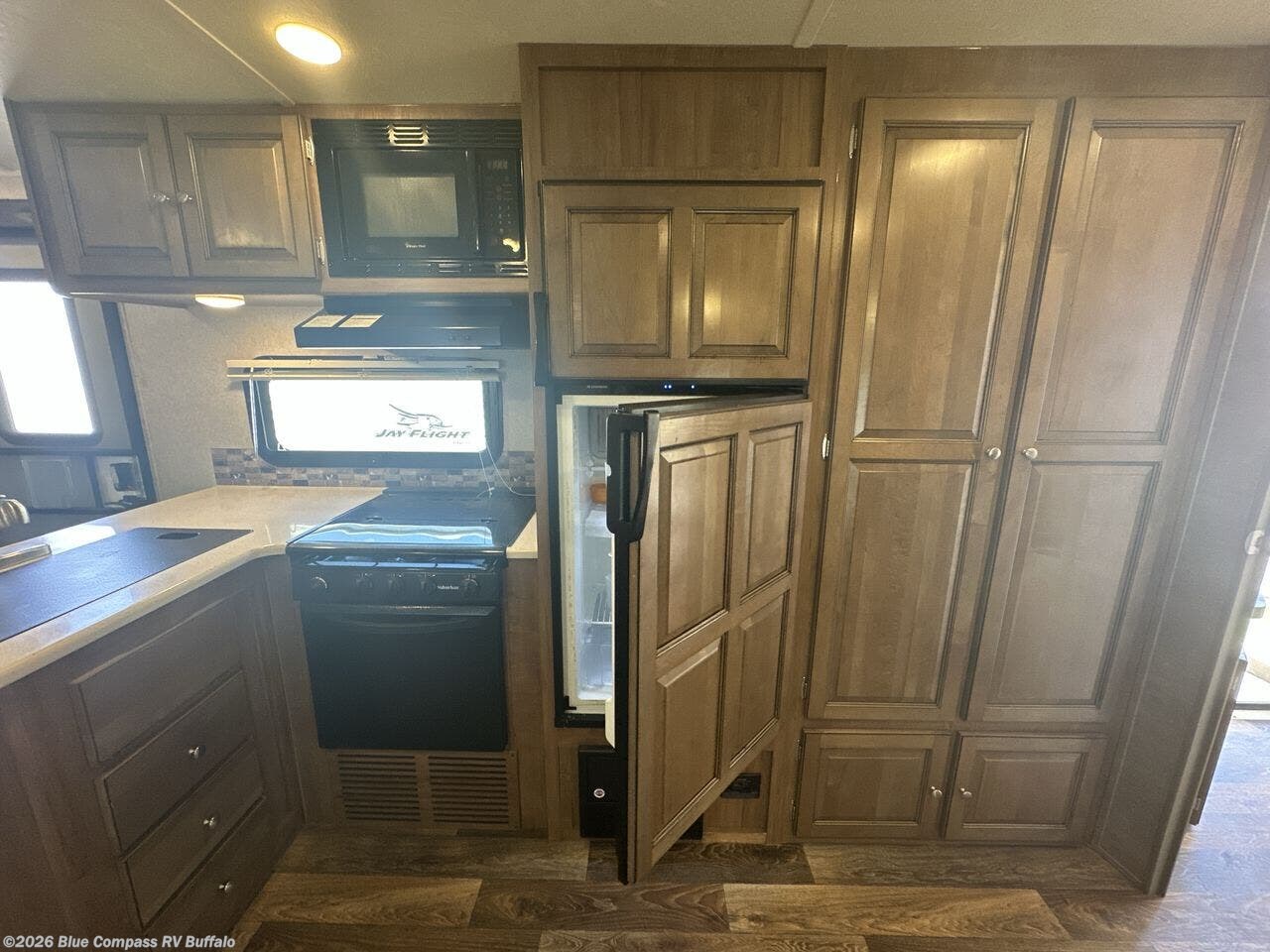 There are many overhead cabinets throughout the trailer to pack all your camping items, as well as exterior storage compartments. You can cook outdoors on the gas grill, choose an optional rear ladder, relax in the shade of the awning, and enjoy your new travel trailer where ever you choose!