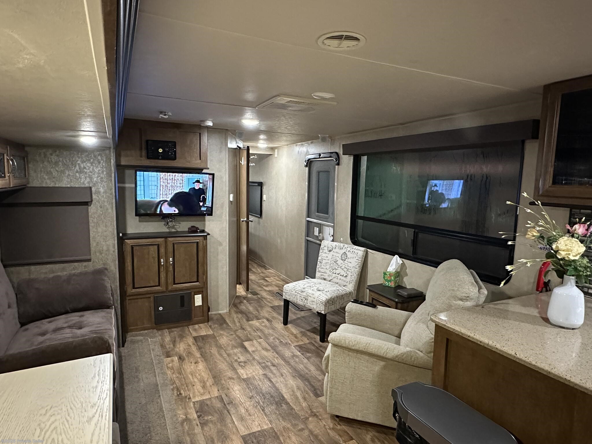 Very nice 2017 Forest River Wildwood Camper that has lots of upgrades. In the last three years, we’ve updated the furniture and finishings to create a comfortable and attractive décor. Upgrades include a Serta Loveseat that converts to a bed, a Lazy Boy Recliner, attractive dining table and chairs, and a casual chair. In addition, we have added new blinds throughout, with matching quality blinds from in the living /dining/kitchen area. The camper has been properly winterized each winter, and has had maintenance to water heater and mechanics as needed to keep the mechanicals functioning perfectly.