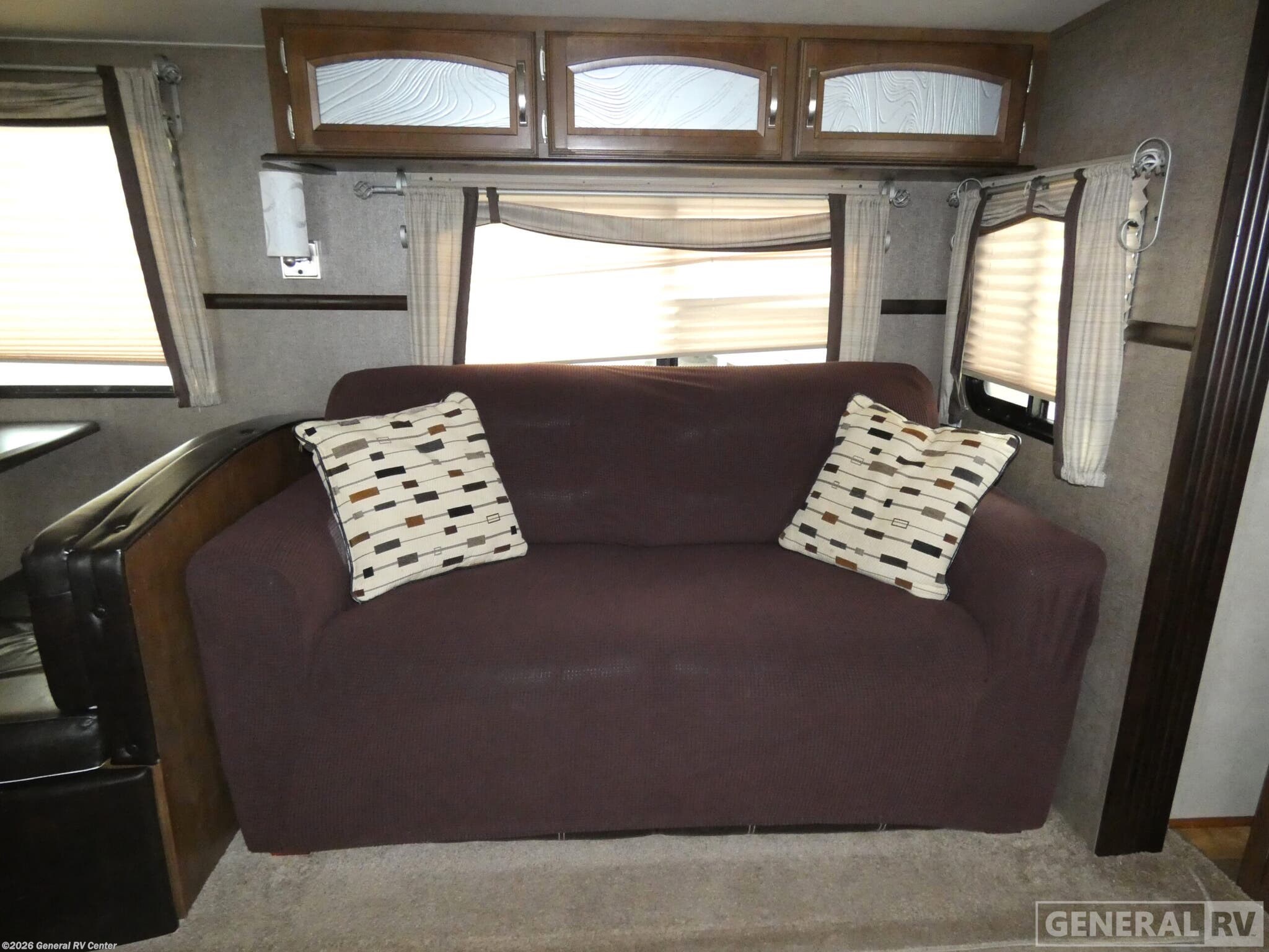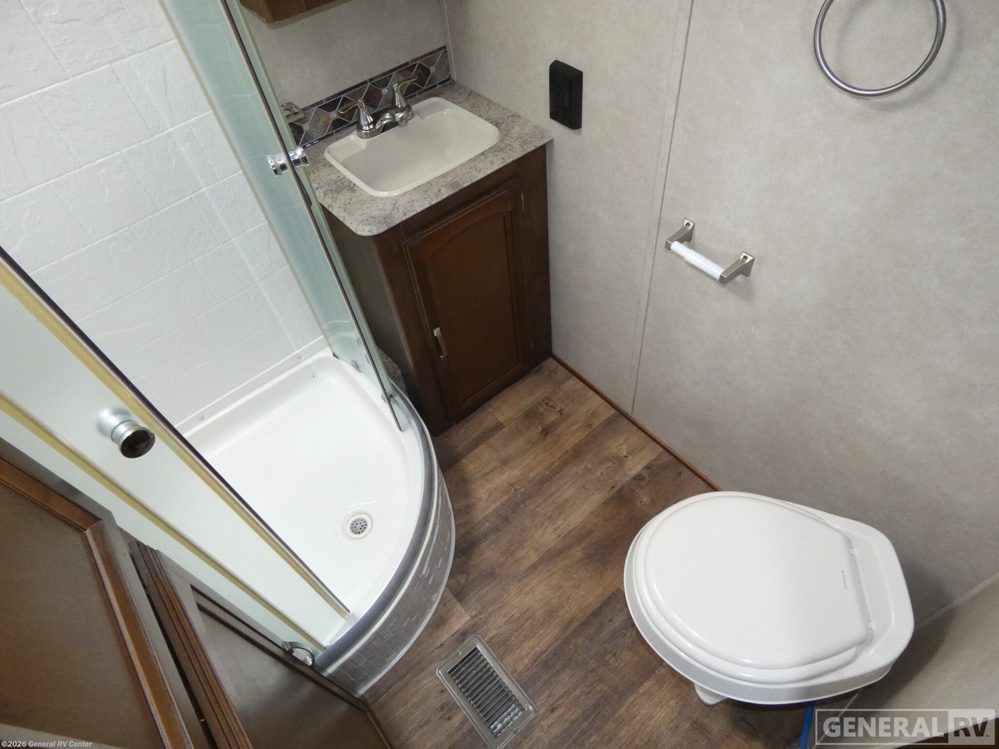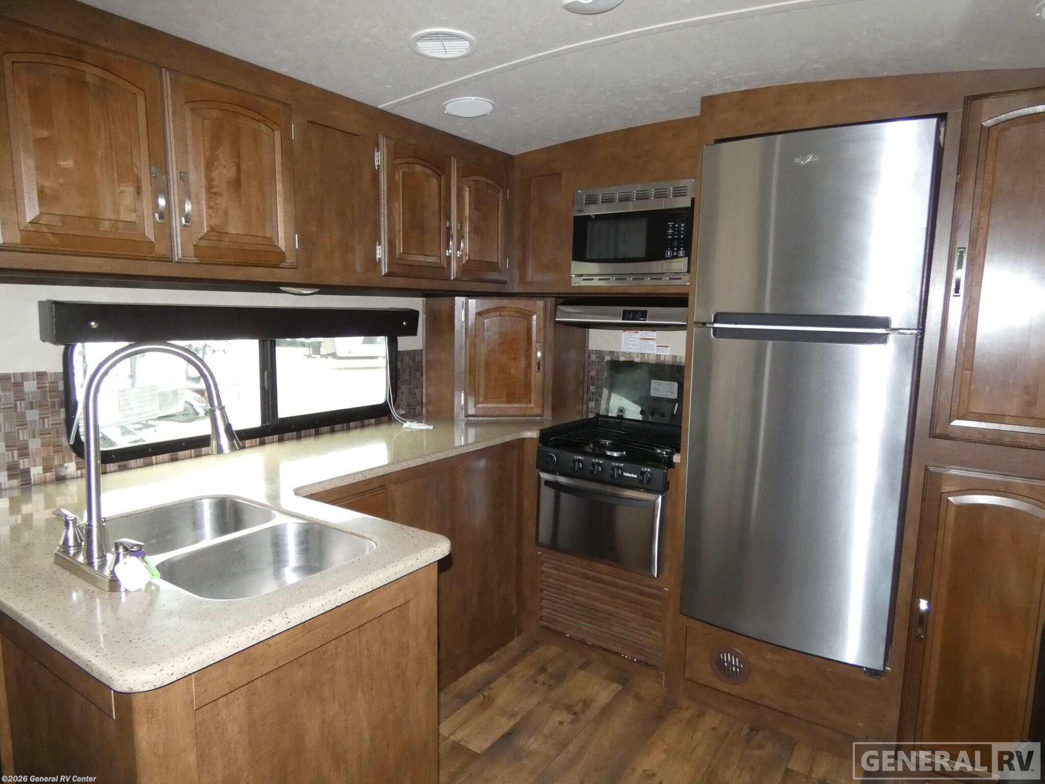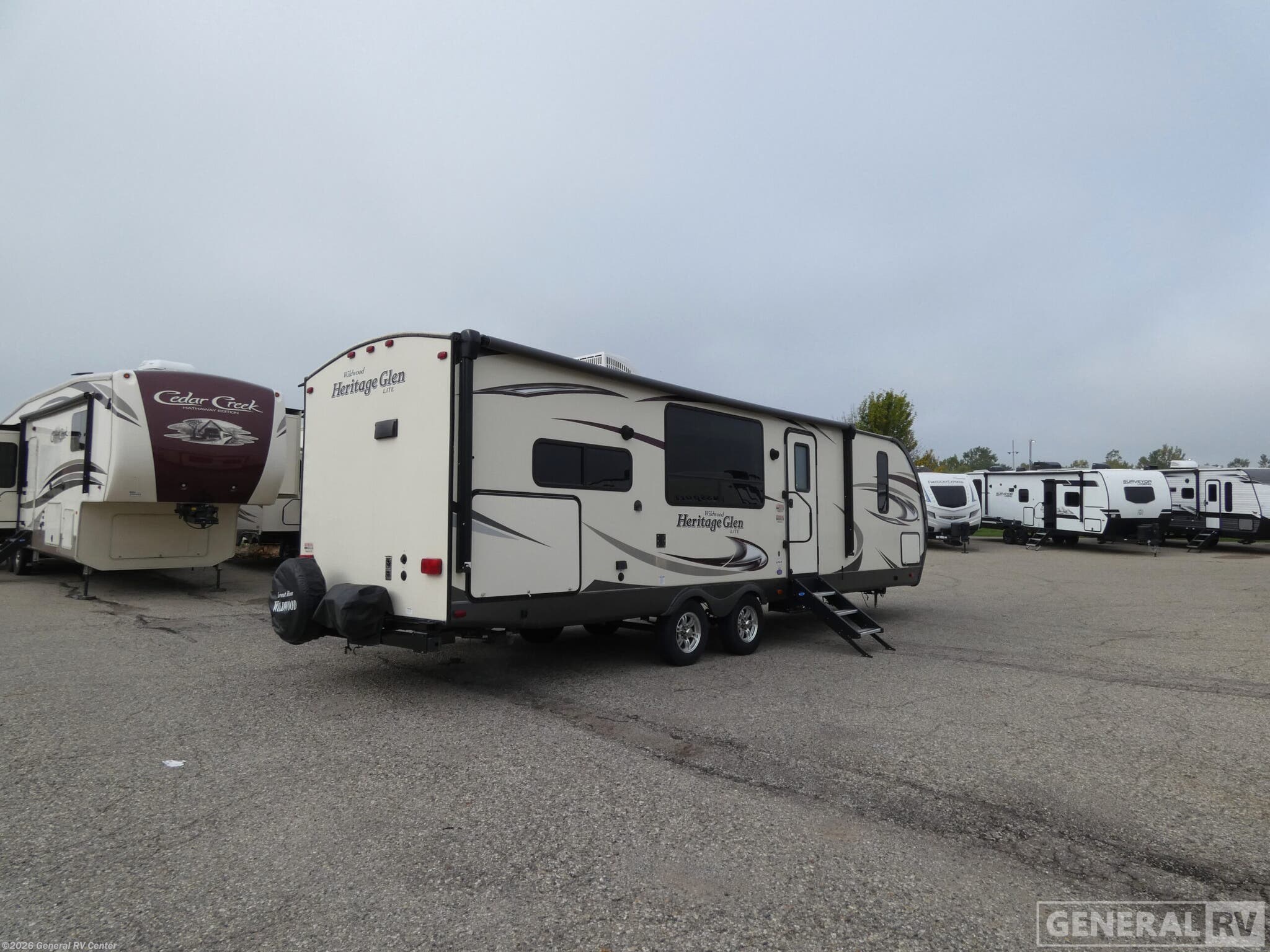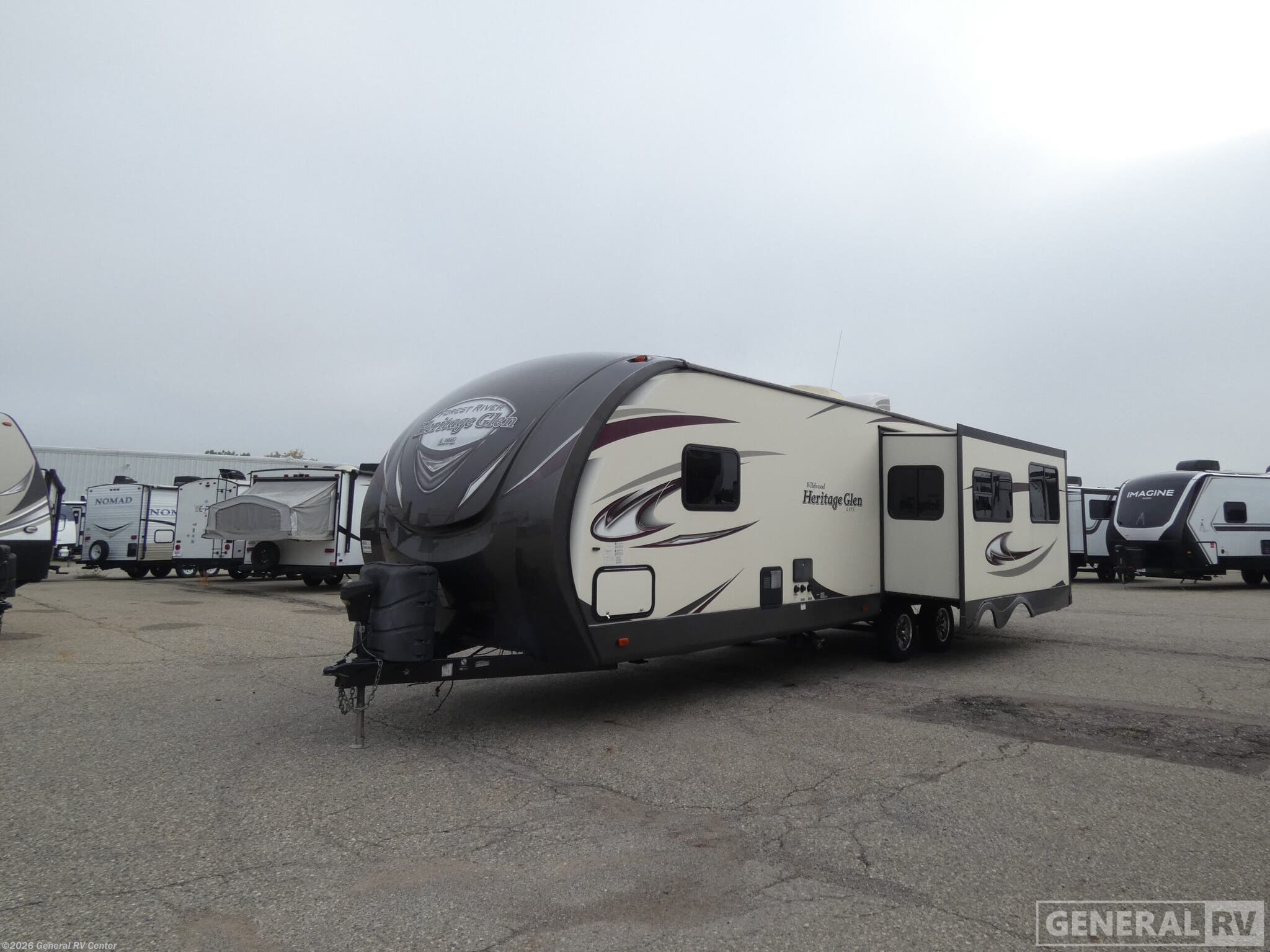 Discover the 2017 Forest River Wildwood Heritage Glen 282RK, where comfort meets adventure in a beautifully crafted travel trailer. At 35 feet long, this spacious RV offers a perfect blend of style and functionality. The rear kitchen layout is a chef's delight, featuring a mid-size refrigerator and a three-burner cooktop, making meal preparation a breeze while on the road. The center living area provides a cozy and inviting space with a tri-fold sofa and a dinette that easily converts into additional sleeping areas, accommodating up to six guests comfortably. As you move towards the front, you'll find the private bedroom with a plush queen bed, ensuring a restful night's sleep after a day of exploration. The center bath is thoughtfully designed with a radius shower, offering both convenience and privacy. With a 21-foot powered retractable awning, you can enjoy the great outdoors while staying shaded and comfortable. The ample pass-through storage ensures you have all the space you need for your travel essentials. Whether you're embarking on a weekend getaway or a cross-country journey, the Wildwood Heritage Glen 282RK is your perfect travel companion. For more details, visit your nearest General RV dealership.