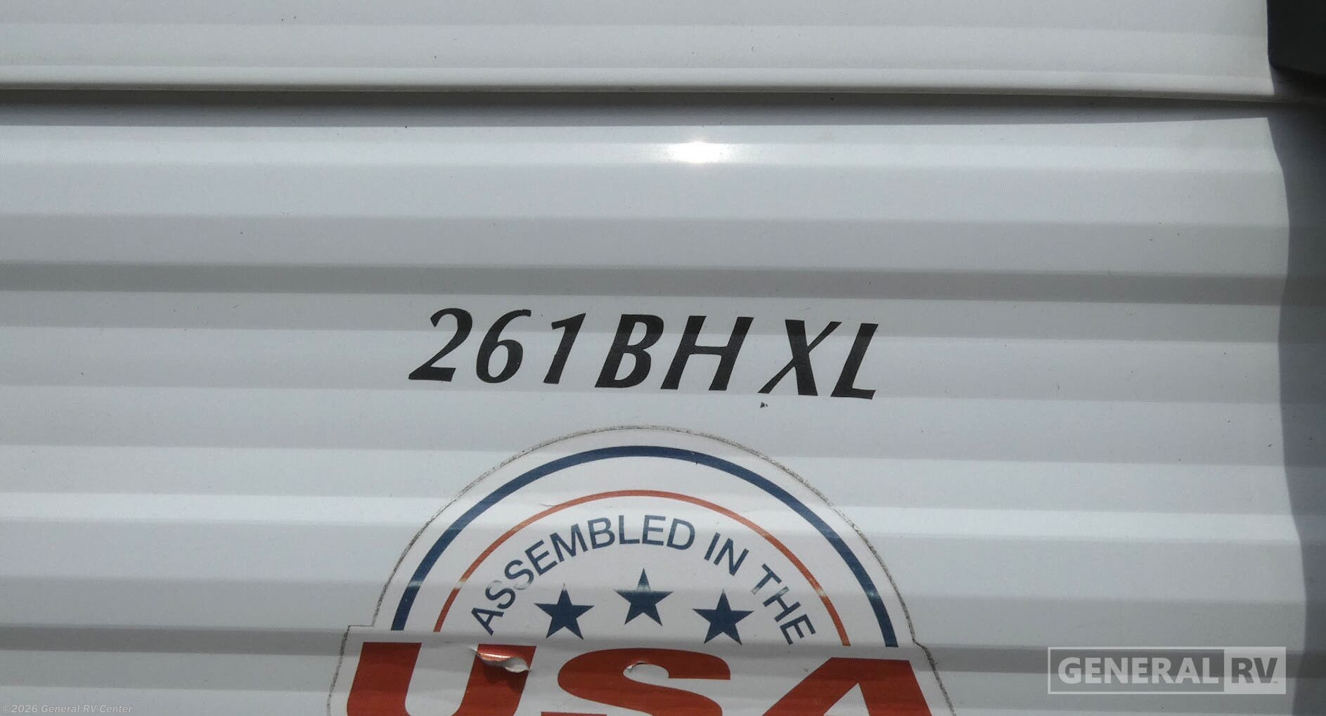 Forest River Wildwood X-Lite 261BHXL highlights: Front RV Queen Bunk House Dinette Rear Bathroom This family-friendly bunkhouse floorplan is designed to maximize sleeping capacity, storage, and everyday comfort in a lightweight, tow-friendly layout. Entering the trailer, you are greeted by an open central living space that feels inviting and functional. The booth dinette and sofa sit opposite the fully equipped kitchen, creating a natural gathering area for meals, games, or relaxing after a day outdoors. Both the dinette and sofa easily convert into additional sleeping space when needed. The kitchen is efficiently arranged with generous counter space, overhead cabinetry, and full-size appliances, allowing for easy meal preparation while keeping traffic flow unobstructed. Ample overhead storage runs along the kitchen and living area, ensuring there’s room for pantry items and cookware. At the rear of the coach, the bunkhouse features double-over-double rear bunks, making it ideal for kids, guests, or larger families. Adjacent to the bunks is the centrally located bathroom, highlighted by an oversized walk-in shower, vanity, and toilet—providing a residential feel and easy access from anywhere in the trailer. Toward the front, the private master bedroom offers a comfortable queen bed with overhead cabinets and nearby wardrobe storage. A pass-through front storage compartment is accessible from the exterior, perfect for camping gear and larger items. Outside, the 18-foot awning extends the living space, offering shade and comfort for outdoor relaxation, while the StepAbove entry steps provide safe and easy access into the trailer.
