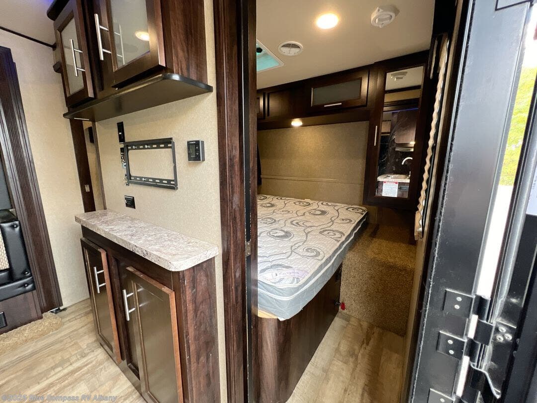 In the front of model 29HFS you will find a queen bed with two wardrobes, one on either side, and an overhead cabinet above the head of the bed for more storage, plus much more!