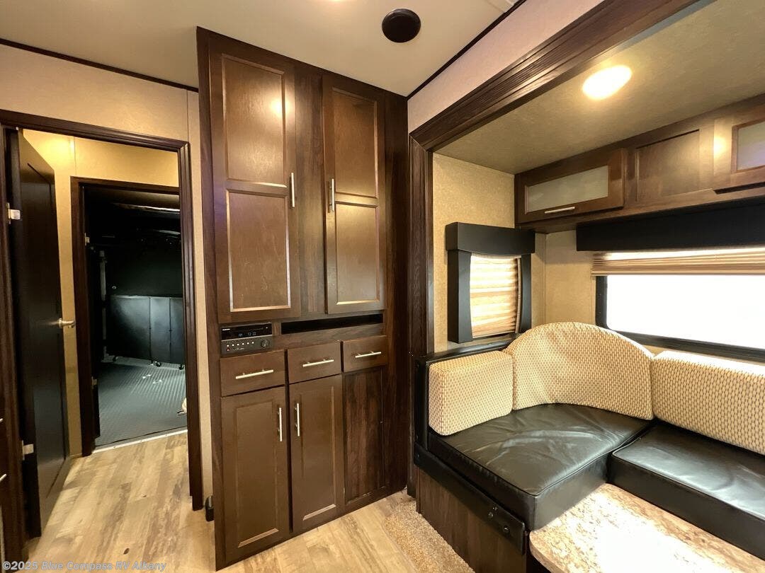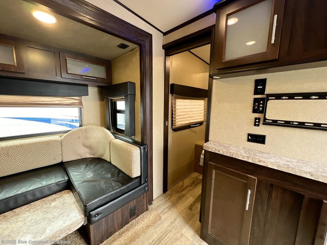 The rear garage offers plenty of room and features a spring assist ramp door to make loading and unloading all of your toys a snap. There is so much space for your toys and gear here. For additional sleeping space you may want to add the optional electric bed and below there is a pass-through dinette.