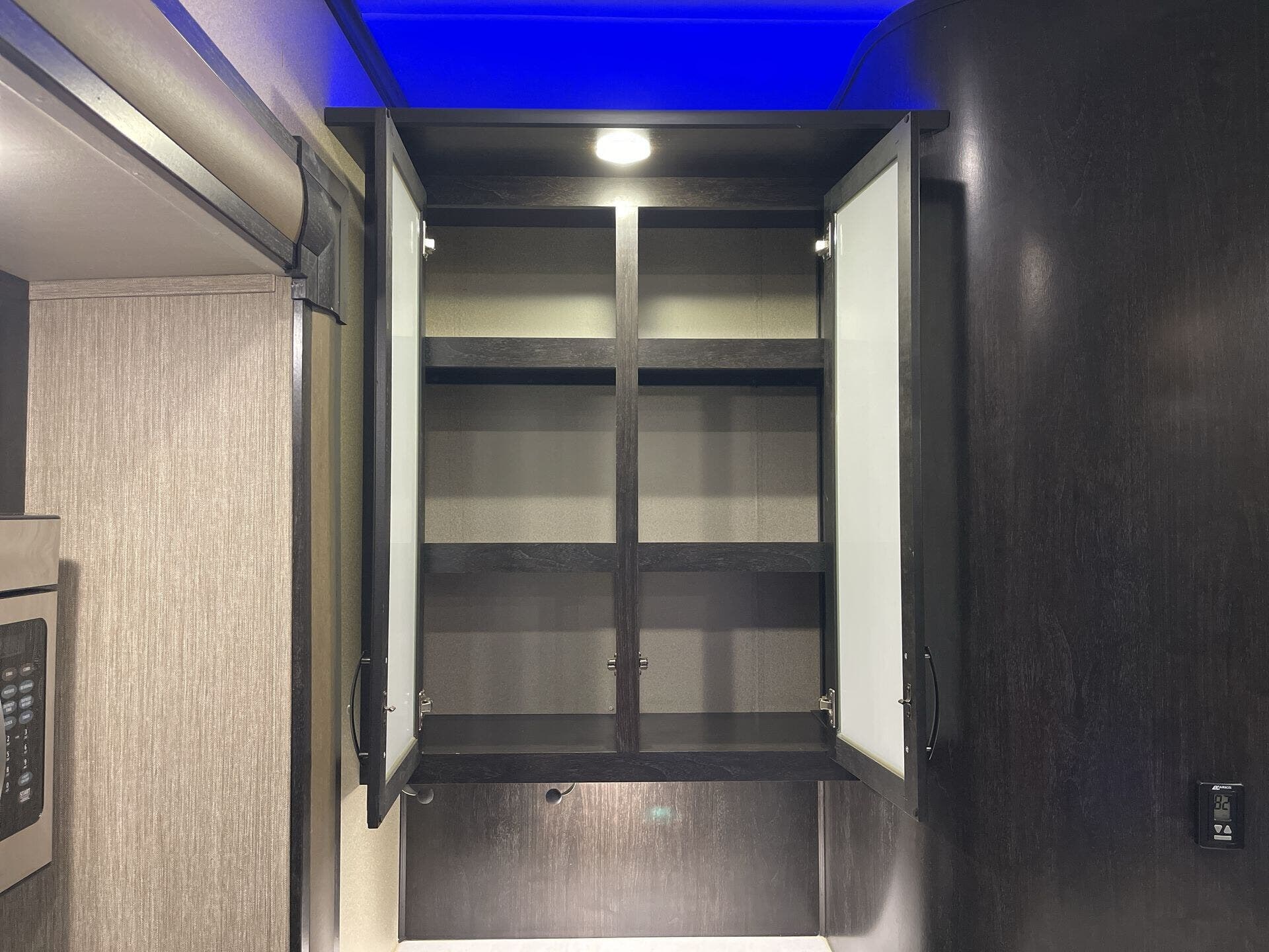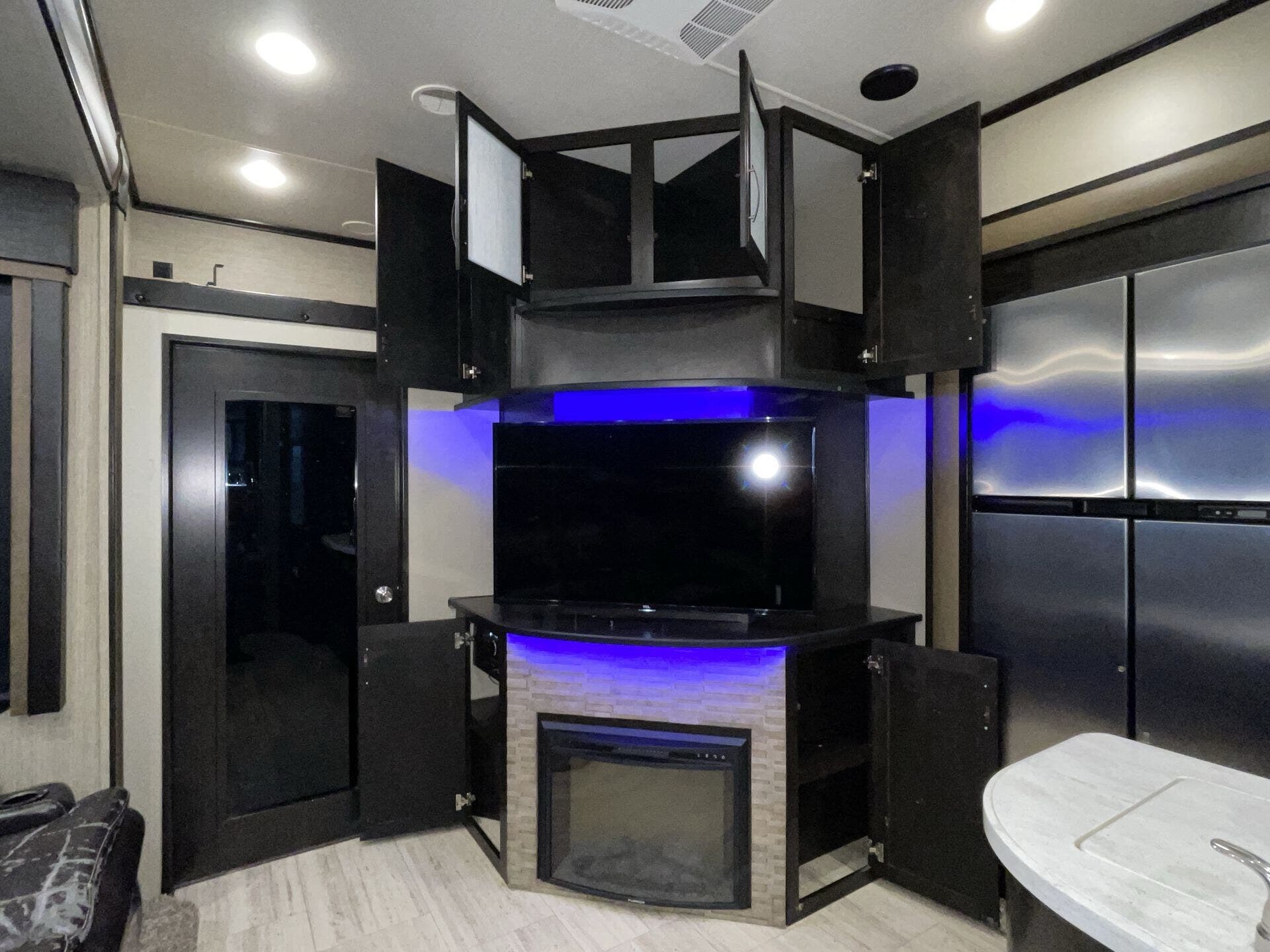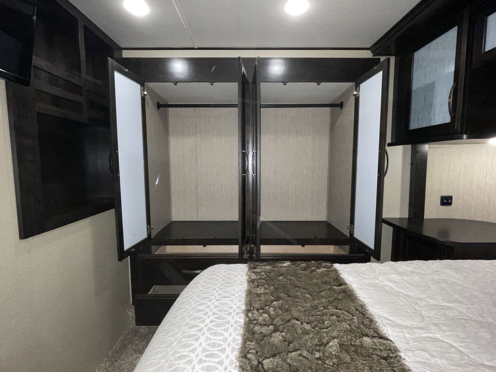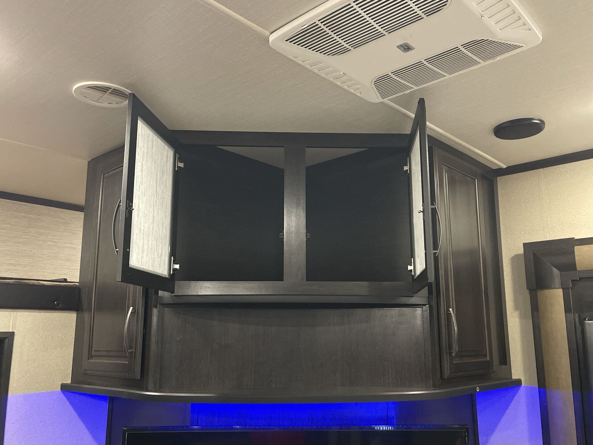 Bath & 1/2, Day/Night Shades, Fireplace, Kitchen Sink, Medicine Cabinet, Overhead Cabinetry, Pantry, Queen Bed, Roof Vents, Shower, Solid Surface Countertops, Theater Seating, Toilet, Wardrobe(s)