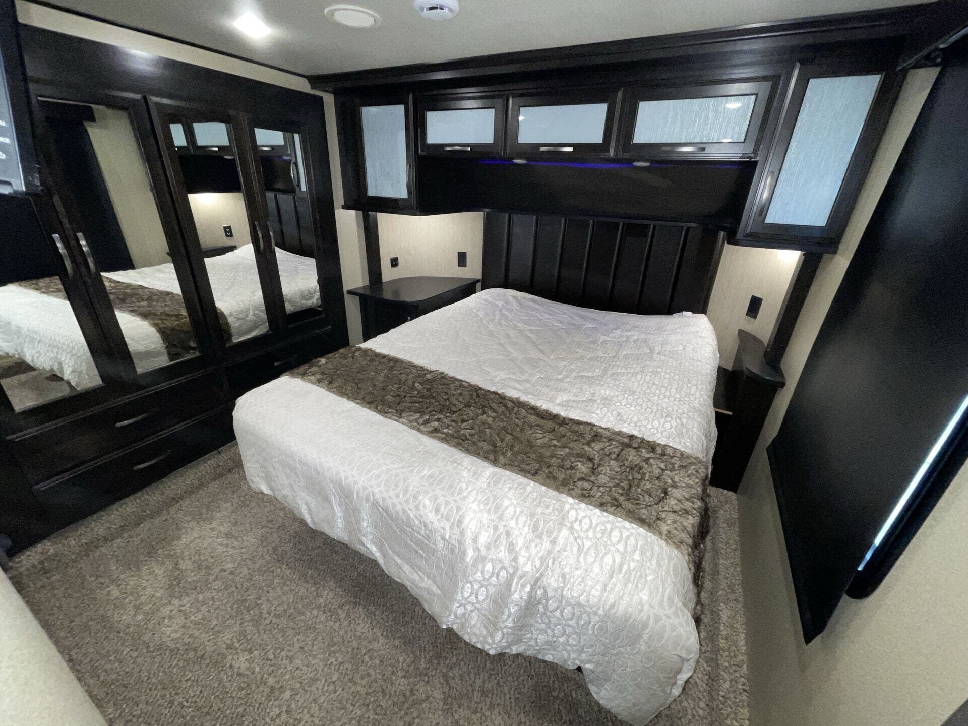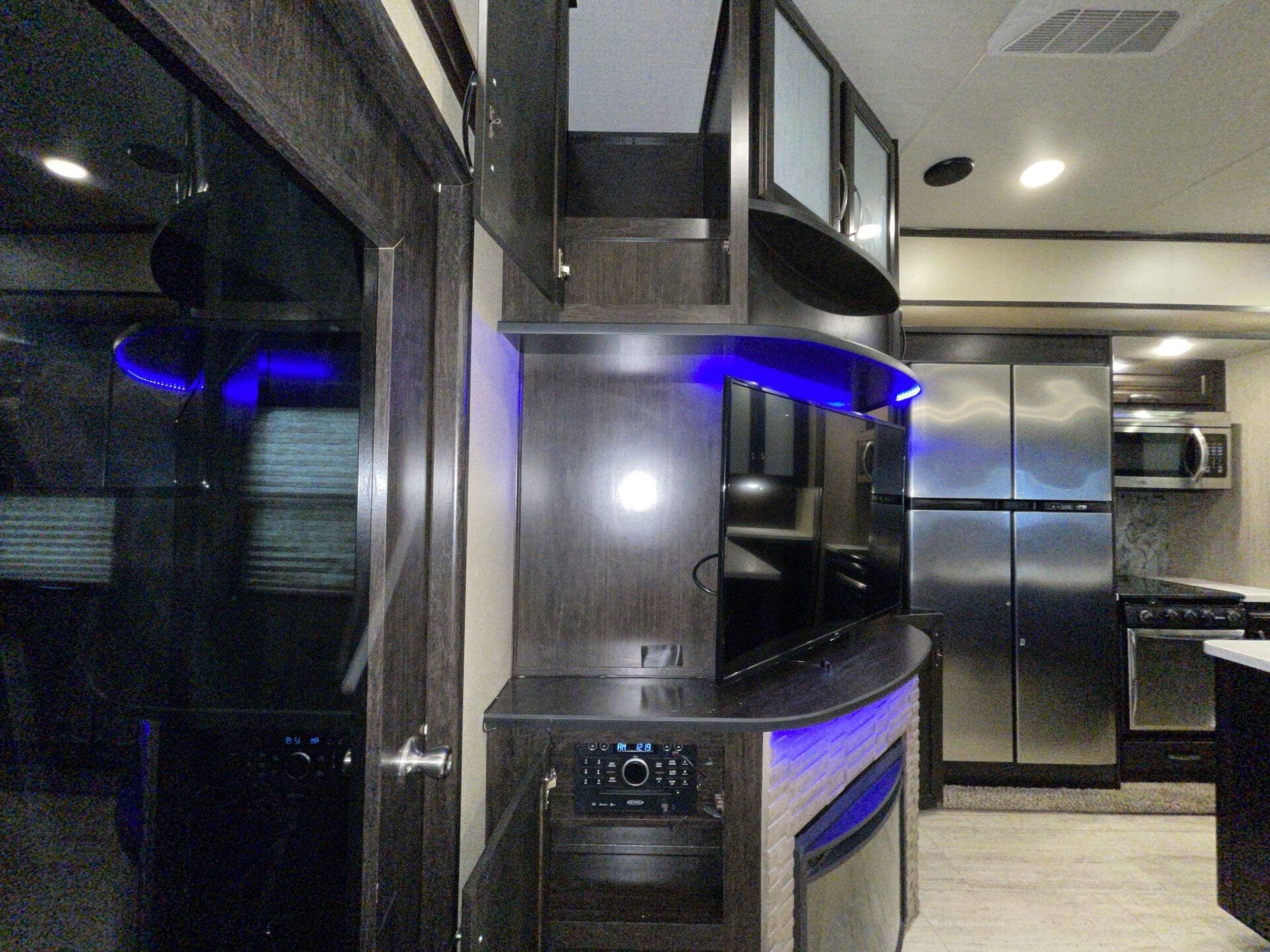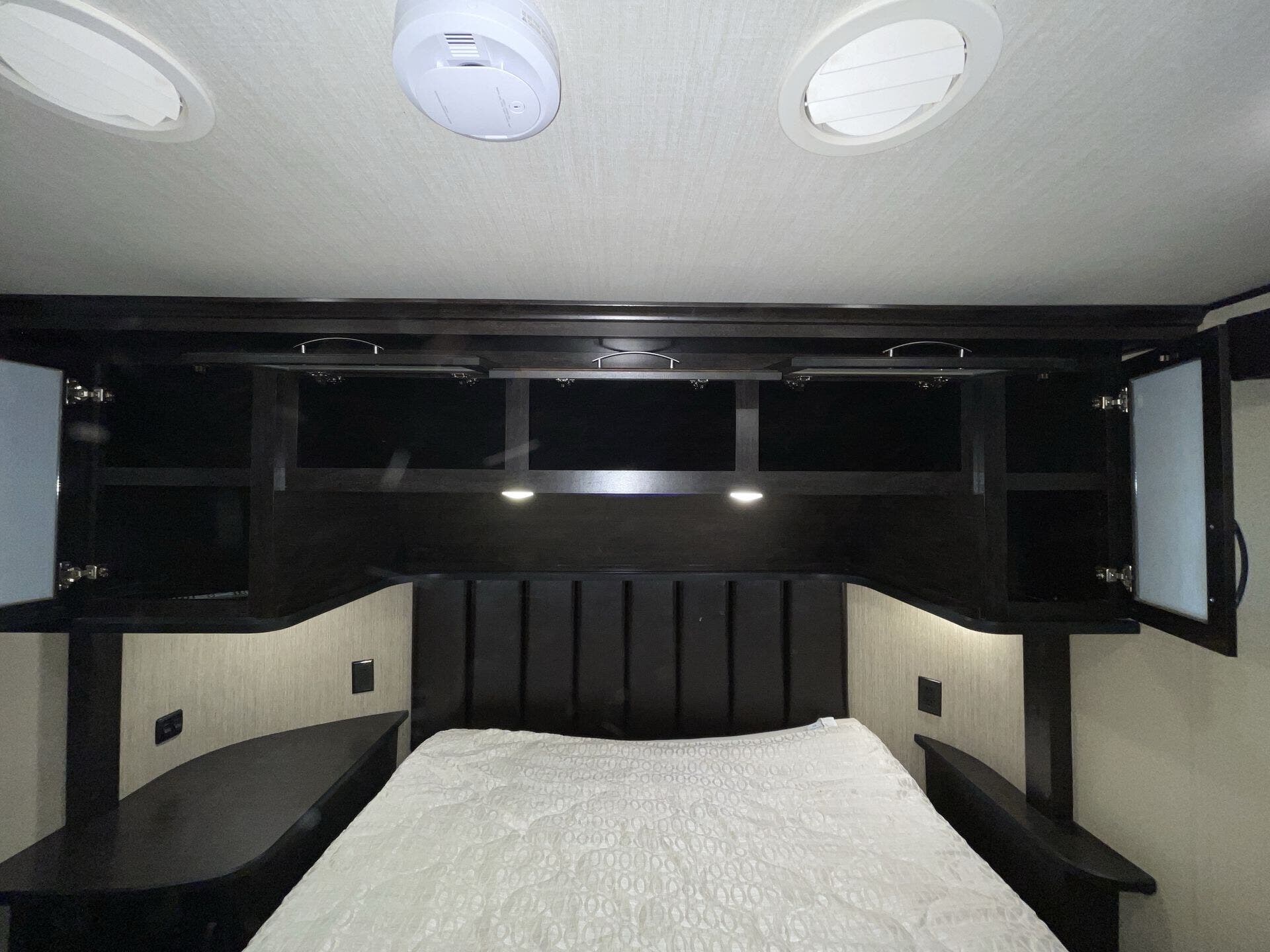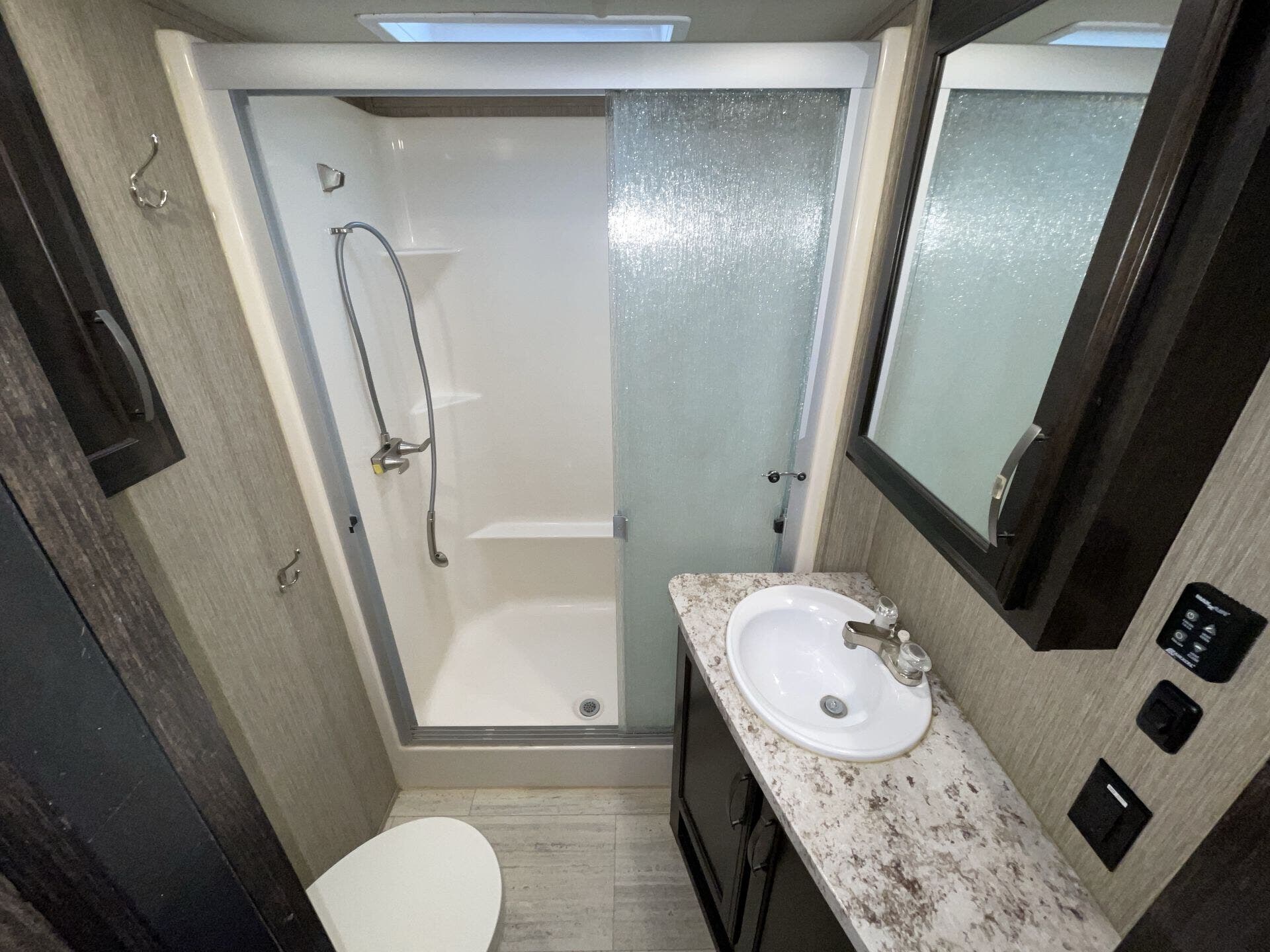 Bath & 1/2, Day/Night Shades, Fireplace, Kitchen Sink, Medicine Cabinet, Overhead Cabinetry, Pantry, Queen Bed, Roof Vents, Shower, Solid Surface Countertops, Theater Seating, Toilet, Wardrobe(s)