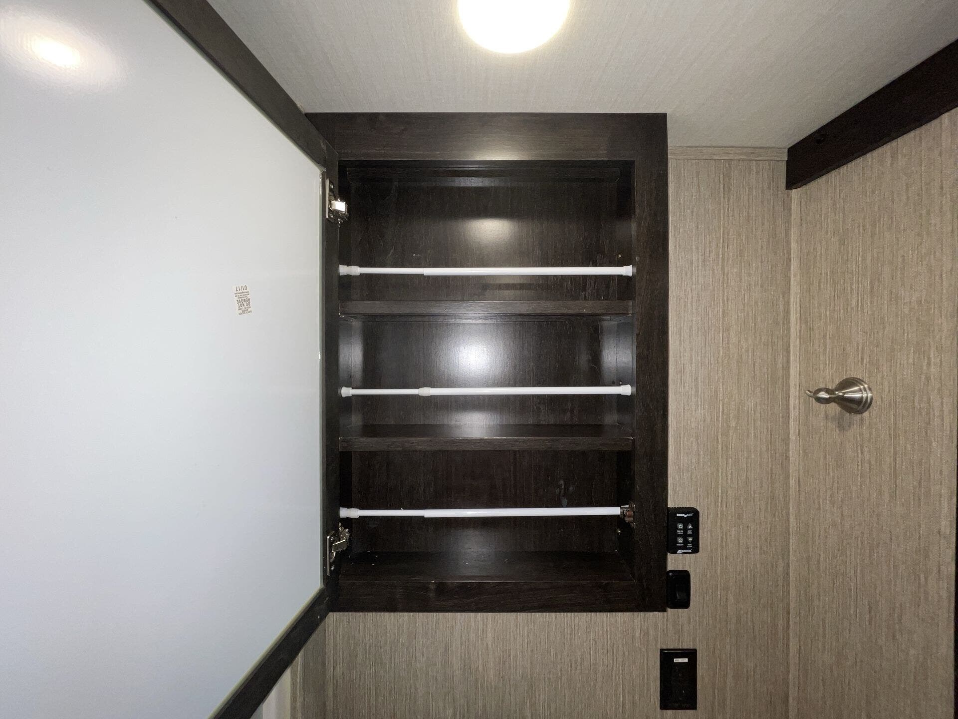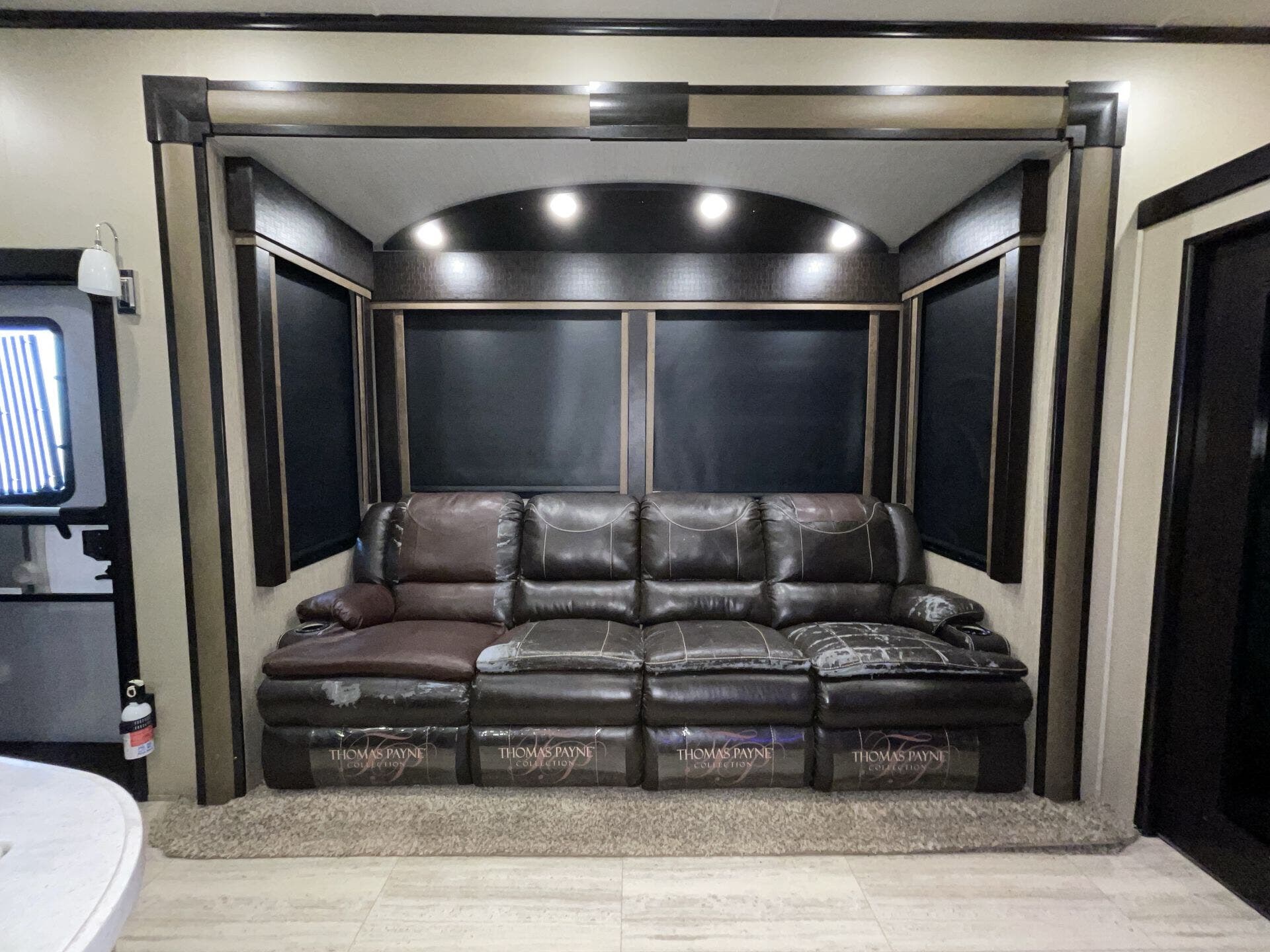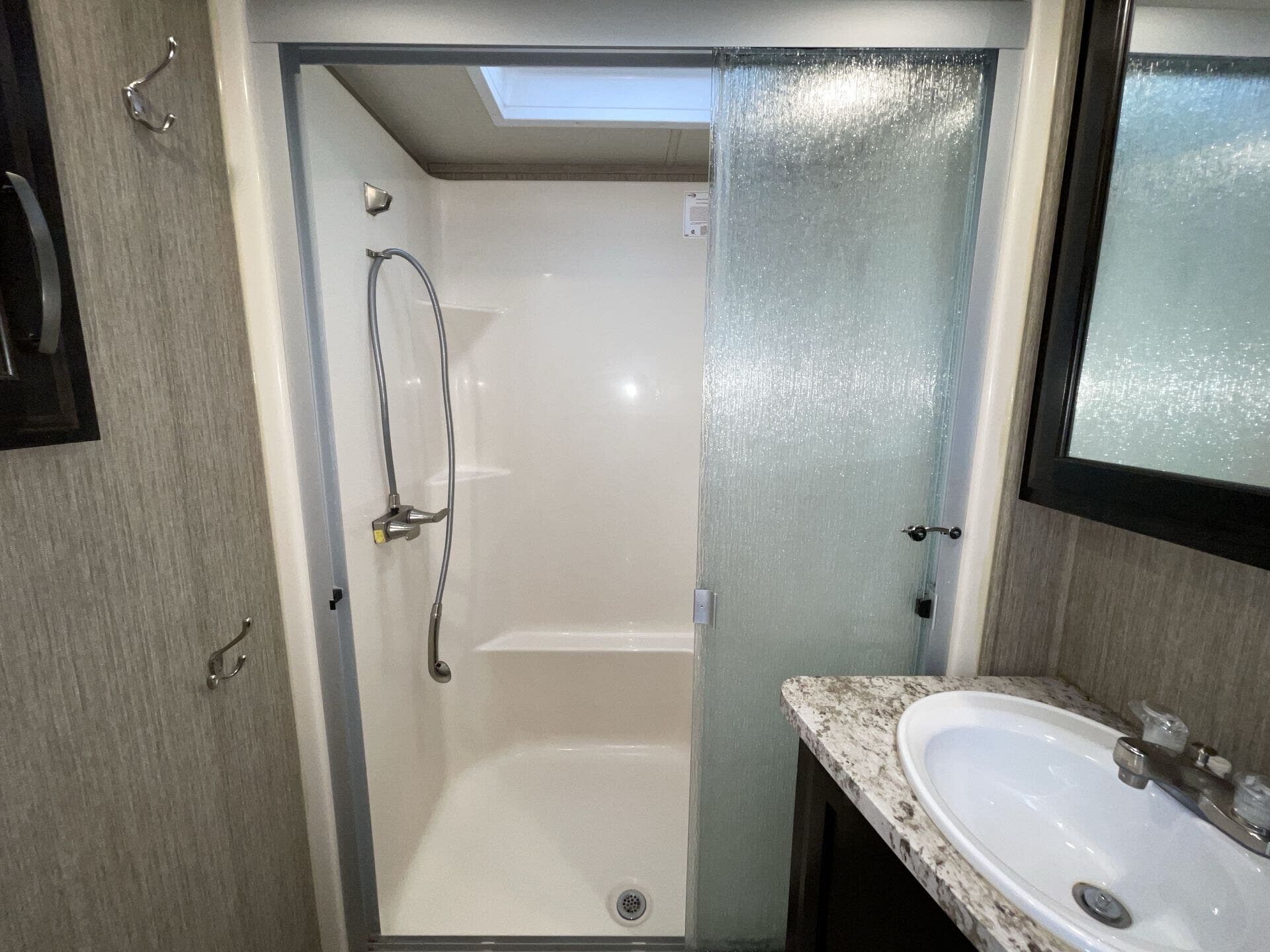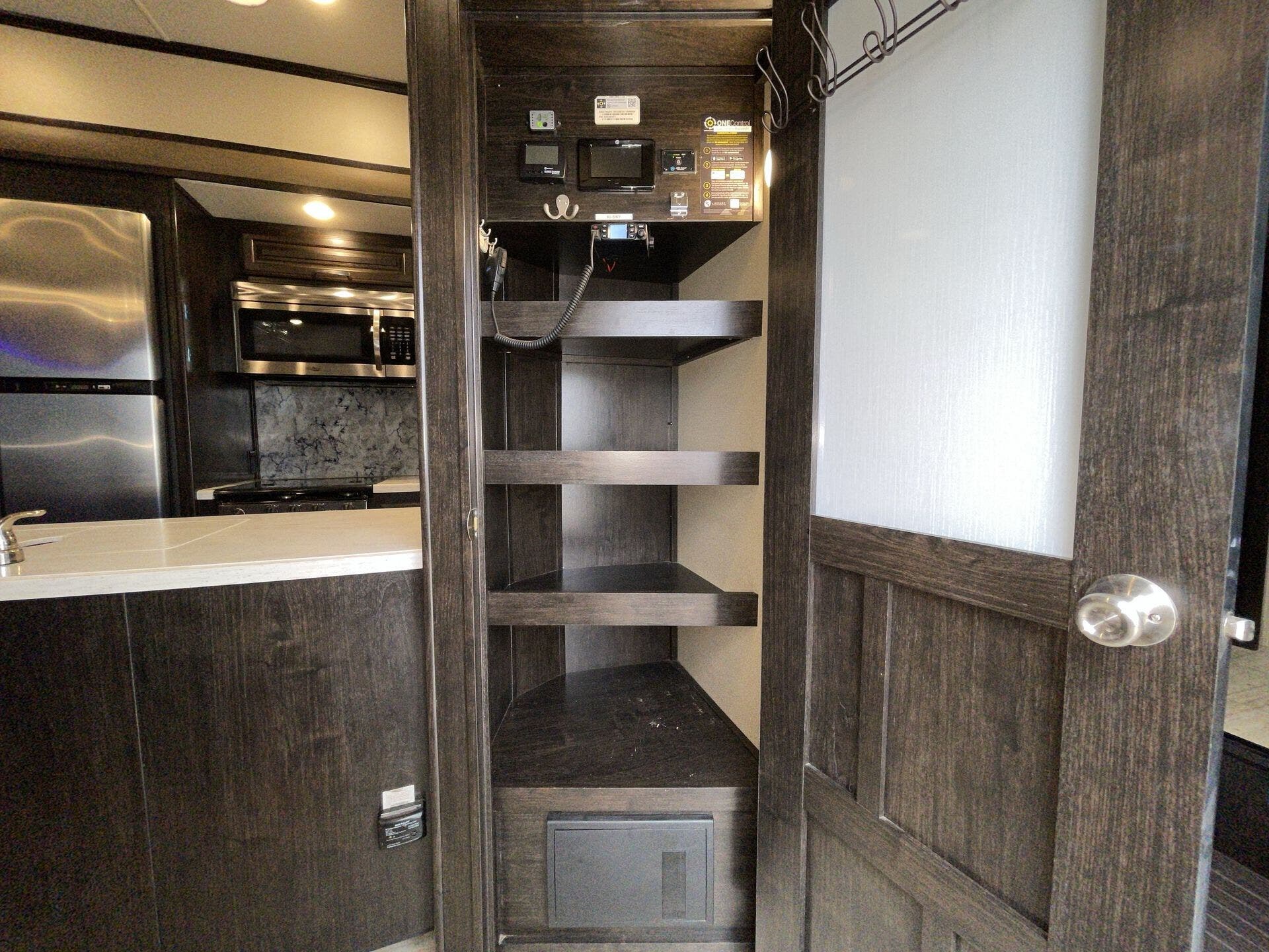 Bath & 1/2, Day/Night Shades, Fireplace, Kitchen Sink, Medicine Cabinet, Overhead Cabinetry, Pantry, Queen Bed, Roof Vents, Shower, Solid Surface Countertops, Theater Seating, Toilet, Wardrobe(s)