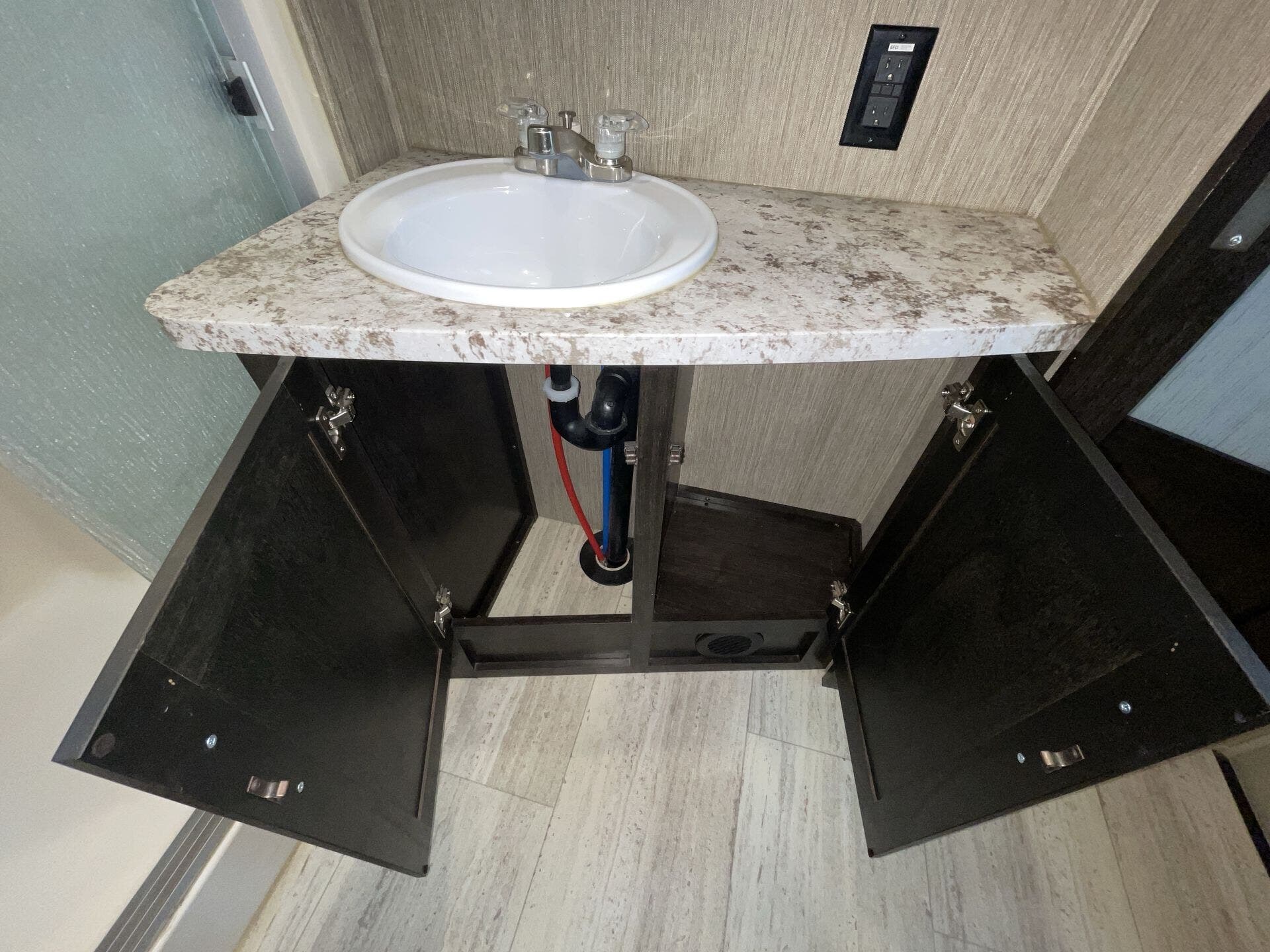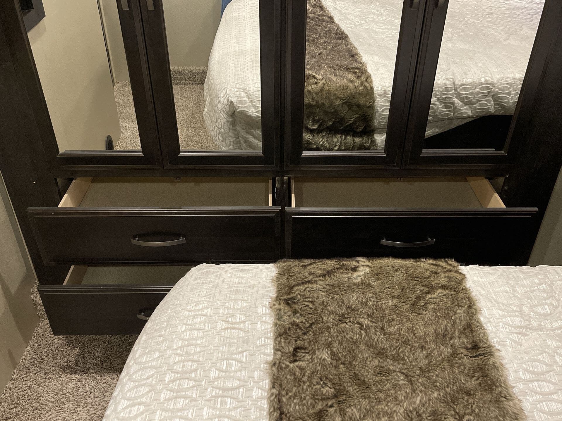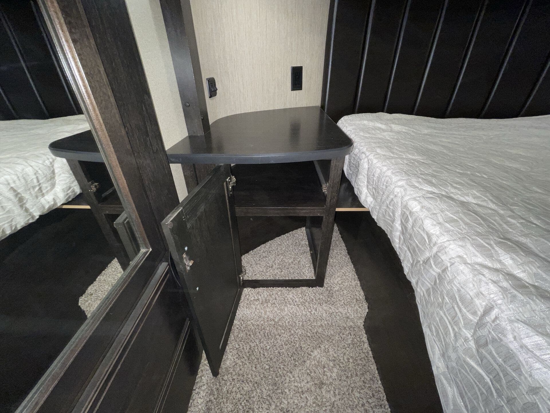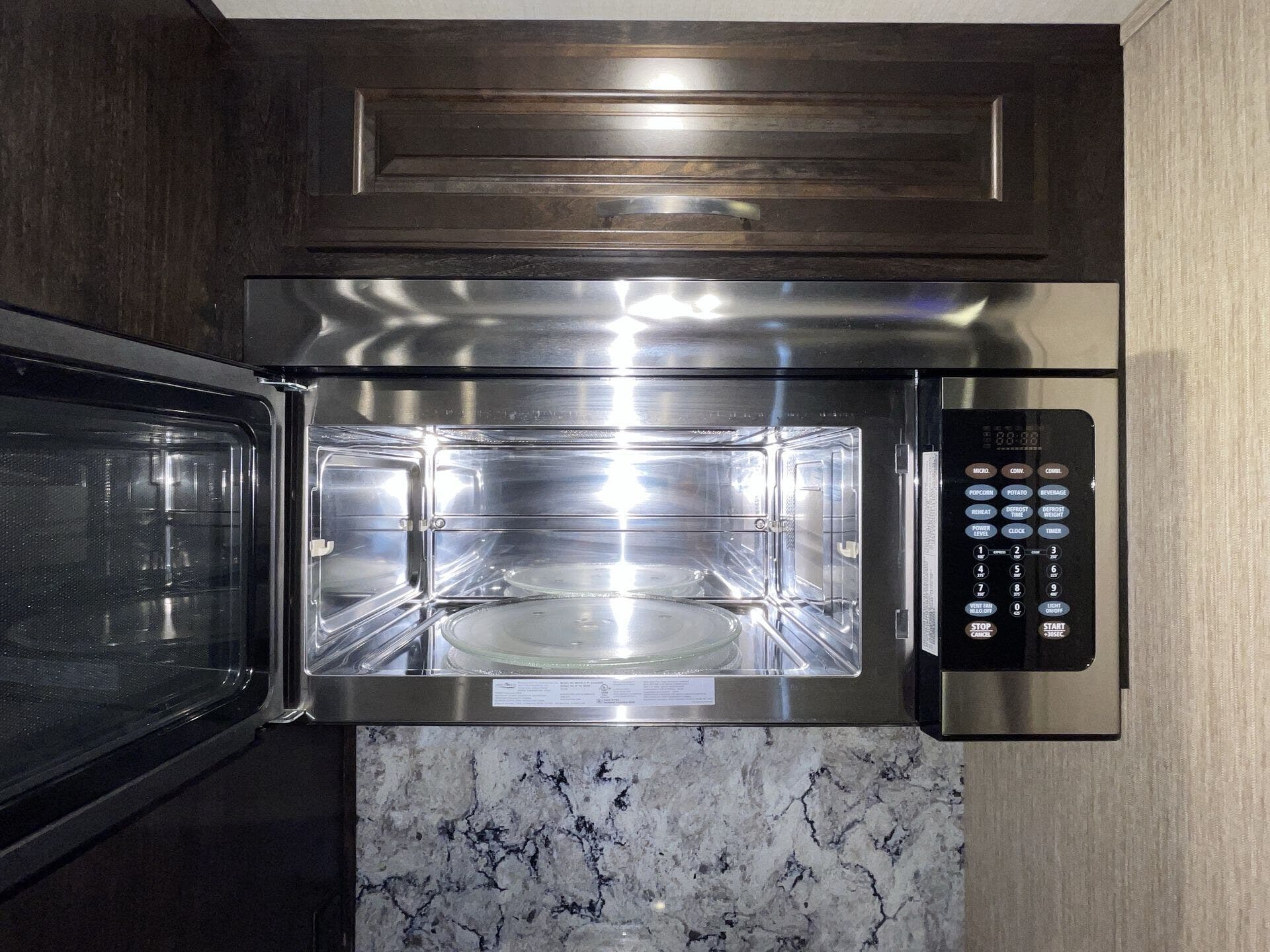 Bath & 1/2, Day/Night Shades, Fireplace, Kitchen Sink, Medicine Cabinet, Overhead Cabinetry, Pantry, Queen Bed, Roof Vents, Shower, Solid Surface Countertops, Theater Seating, Toilet, Wardrobe(s)