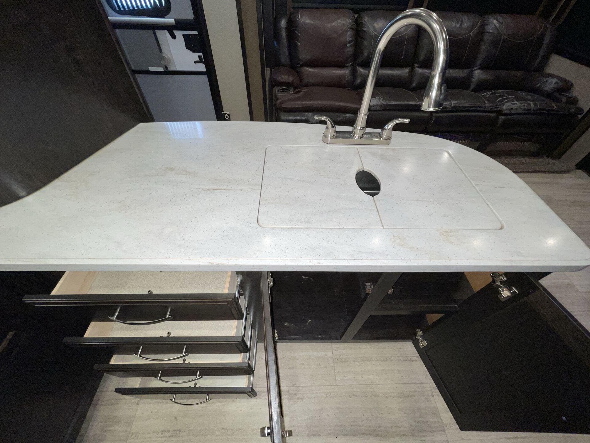 Designed for off-grid capability, the Momentum 350M includes a built-in generator, large holding tanks, fuel station, and optional triple A/C system, making it ready for everything from weekend getaways to full-time living.