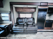 As you enter notice the spaciousness inside with dual opposing slide outs on either side of the unit. The slide to your left of the entry door features a booth dinette, or optional free standing dinette (pictured) along with an entertainment center, 40" TV and fireplace including overhead cabinets.