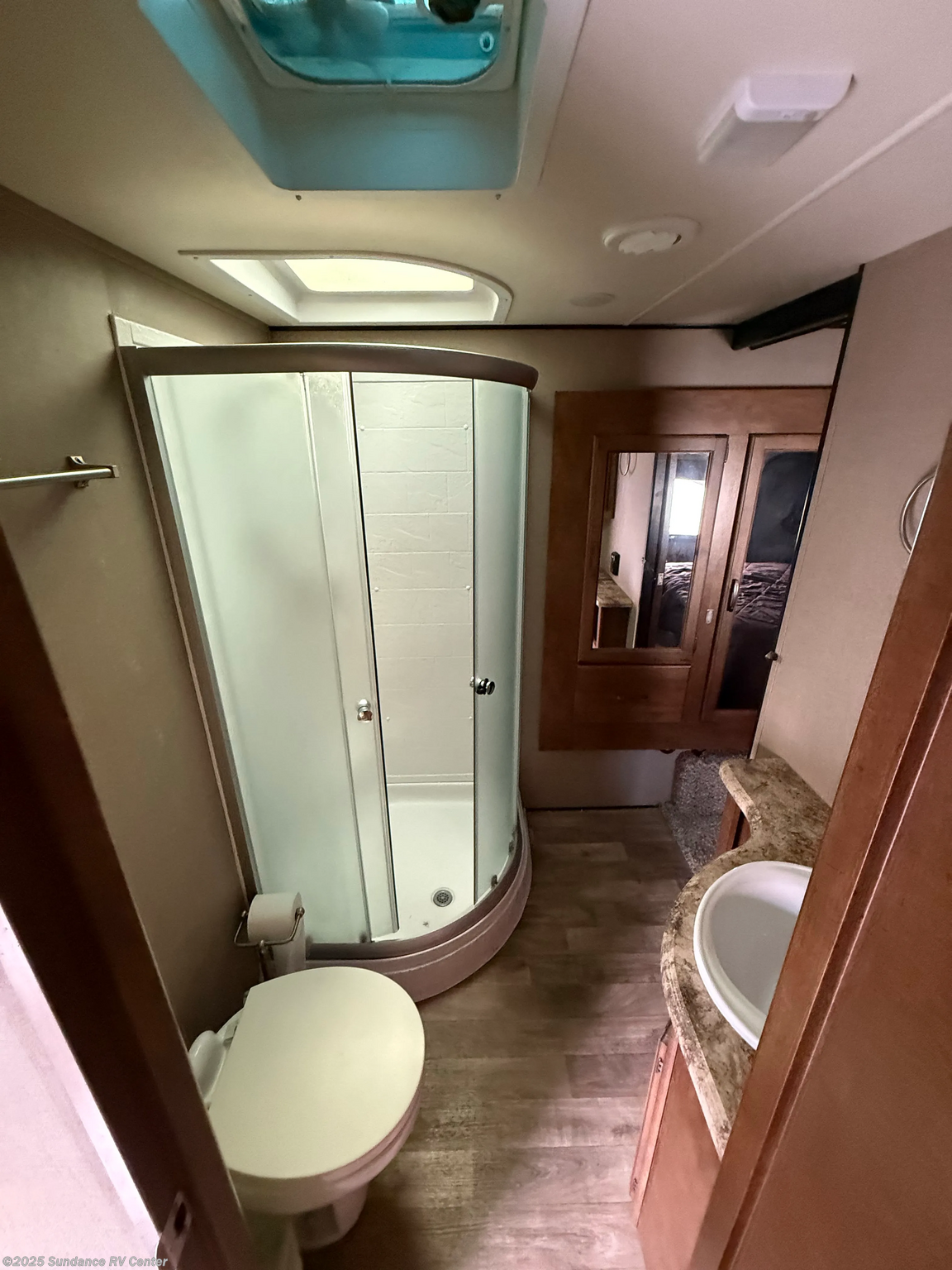 Booth Dinette, Fireplace, Medicine Cabinet, Queen Bed, Rocker Recliner(s), Roof Vents, Shower, Toilet -