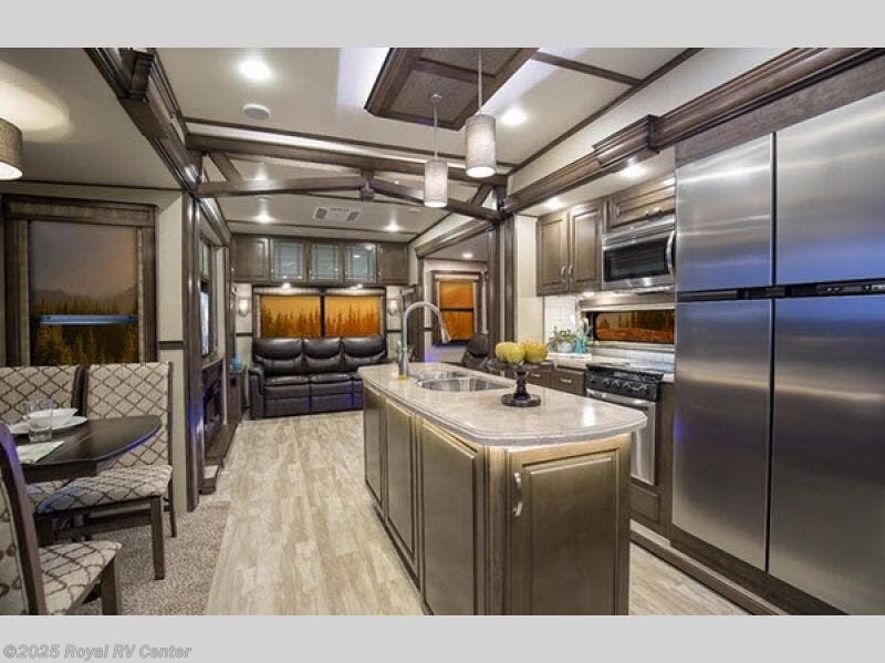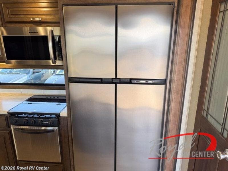 You will find it easy to extend your stay awhile in this Grand Design Solitude fifth wheel model 360RL. This unit features all of the amenities of home including a spacious kitchen with an 18 cu. ft. refrigerator, a kitchen island, an entertainment center with fireplace, and private front master bedroom, plus more!